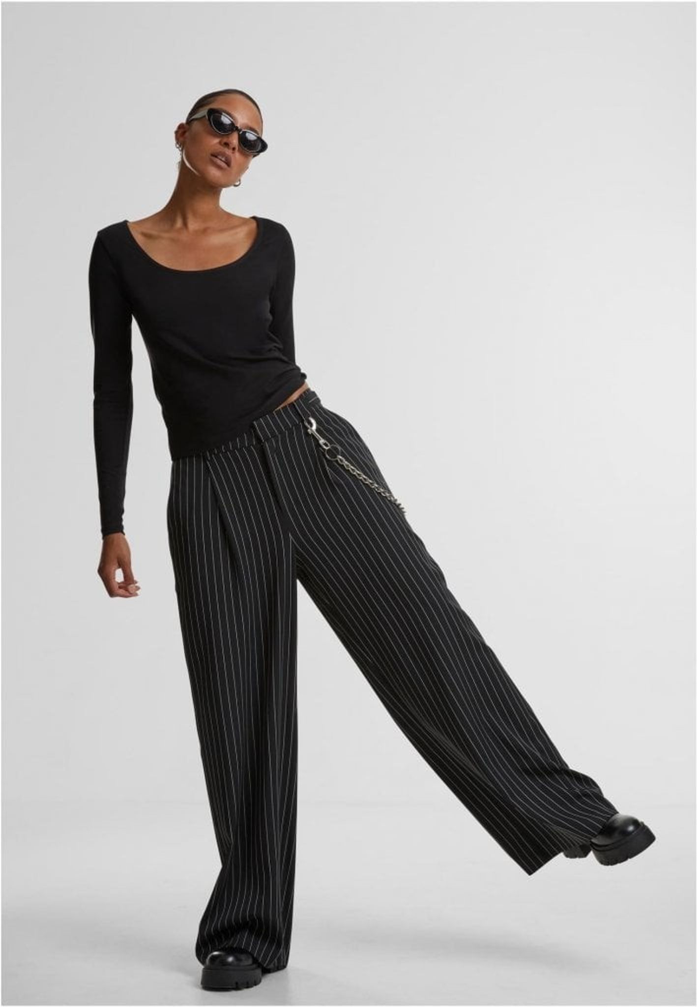 Uppgradera din garderob med våra Ladies Pinstripe Wide Leg Trousers, som kombinerar stil och komfort på ett elegant sätt.