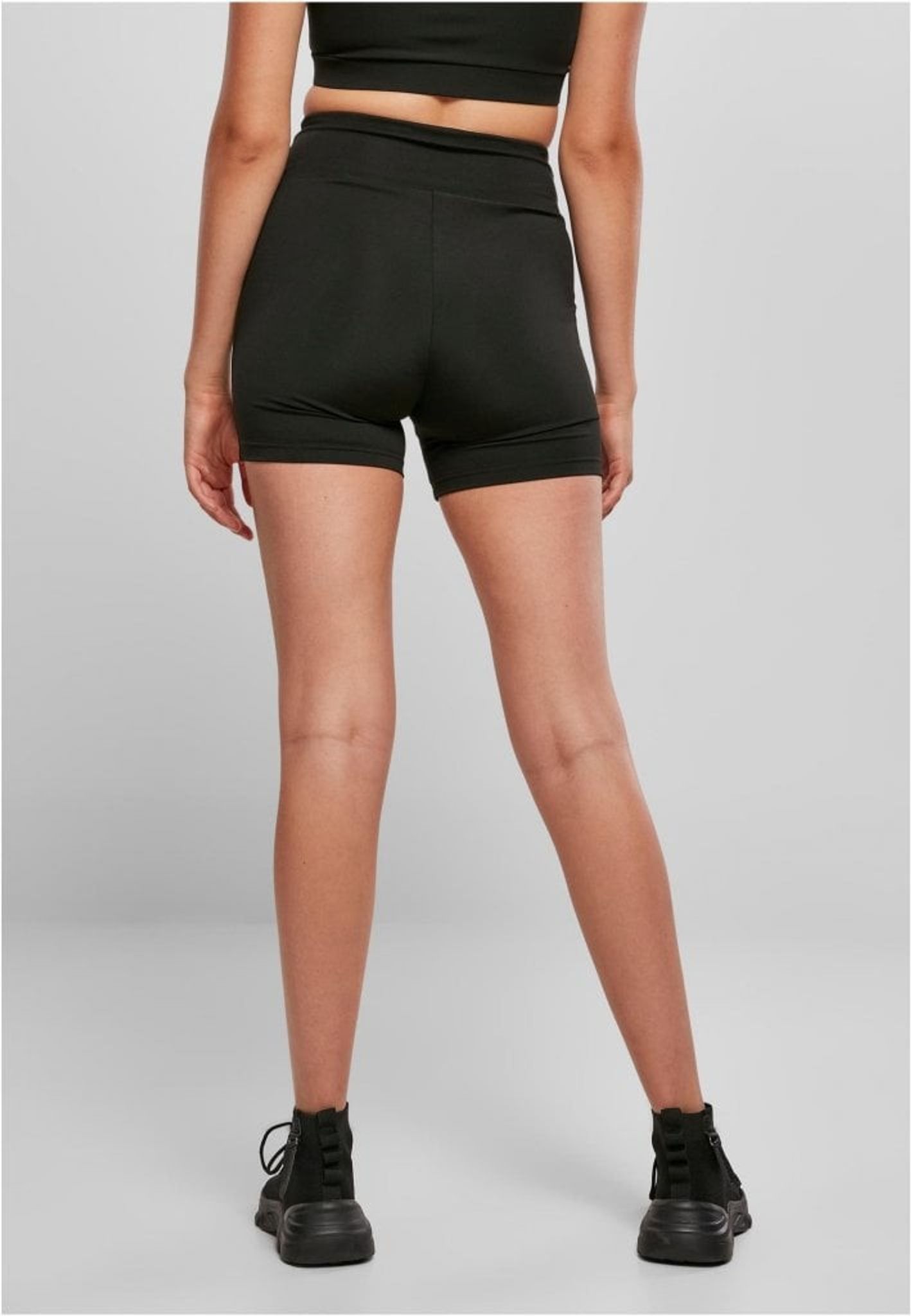 Dessa enfärgade sportbyxor är en hybrid mellan hotpants och cykelbyxor. Tack vare ett brett midjeband så sitter de högt på midjan och slutar kort på låren.