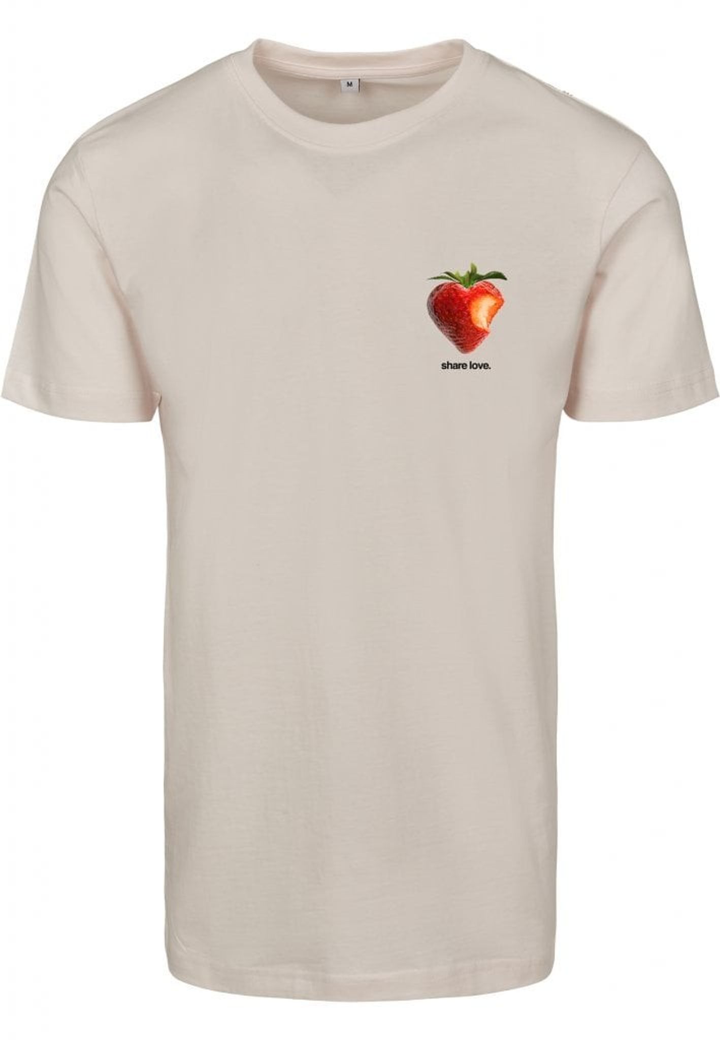 T-shirt i svagt ljusrosa nyans med kärleksfullt brösttryck. En hjärtformad jordgubbe och uppmaningen "share love."