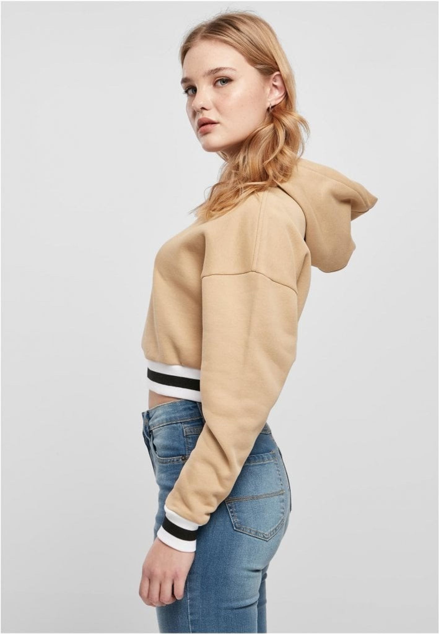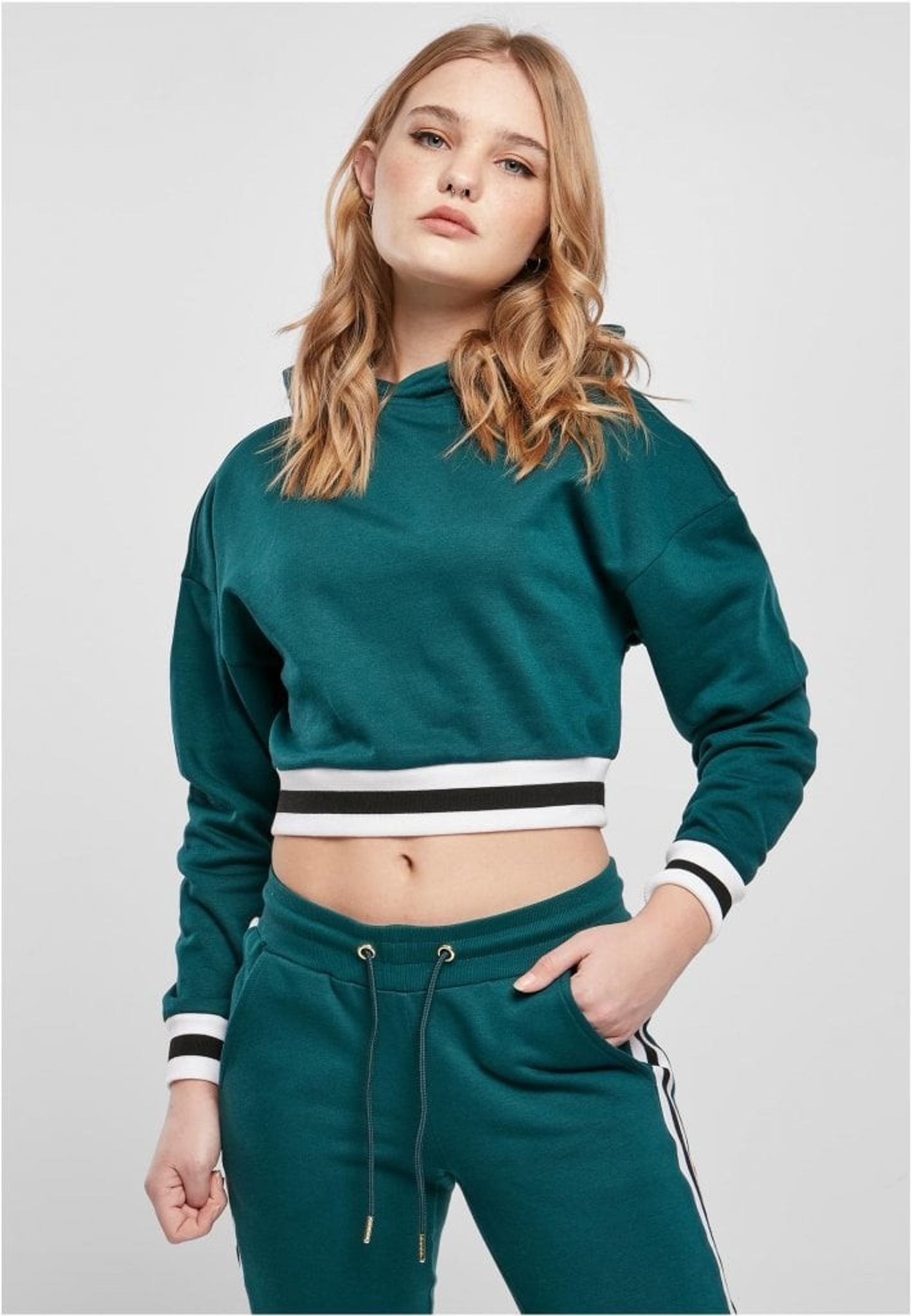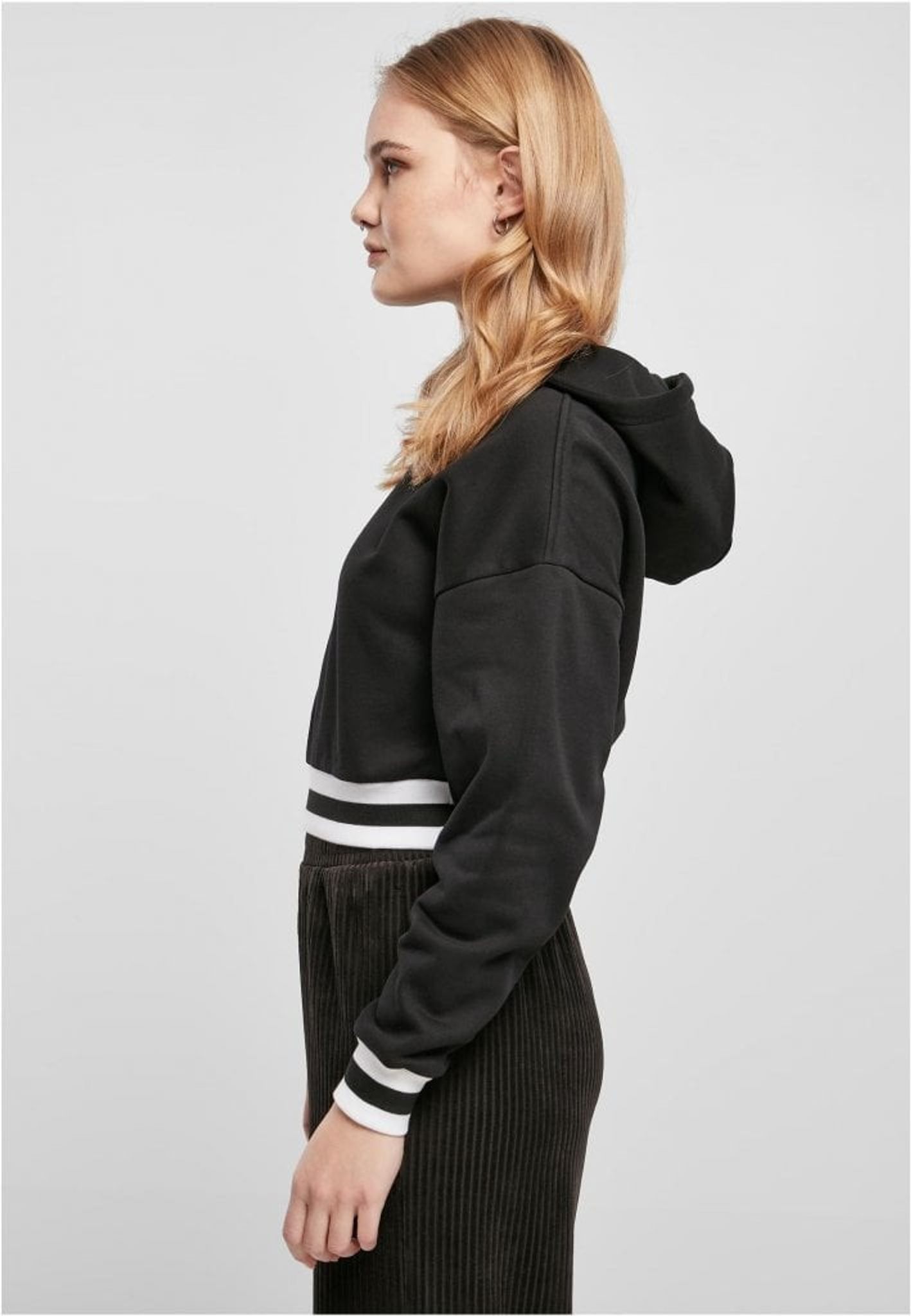 När en hoodie möter collegedesign – resultatet är ett absolut måste! Den beskurna huvtröjan presenterar stiltypiska randiga college-manschetter vid ärmar och fåll samt en mysig huva. Passformen är oversized, med lämpligt nedfällda axlar. Huvtröjan är gjord av bomull och polyester.
