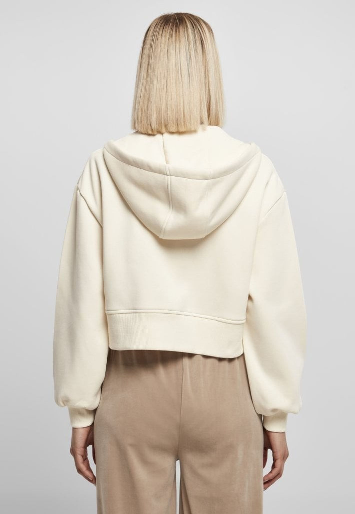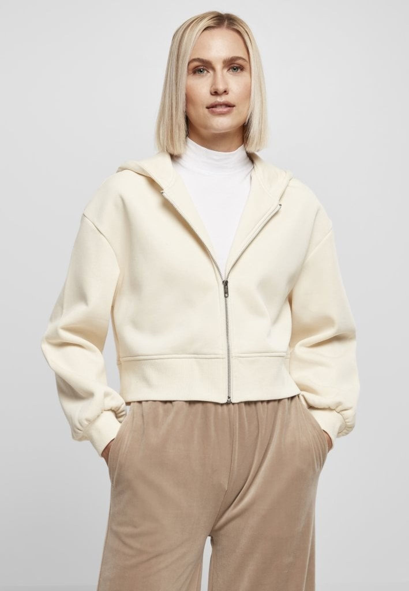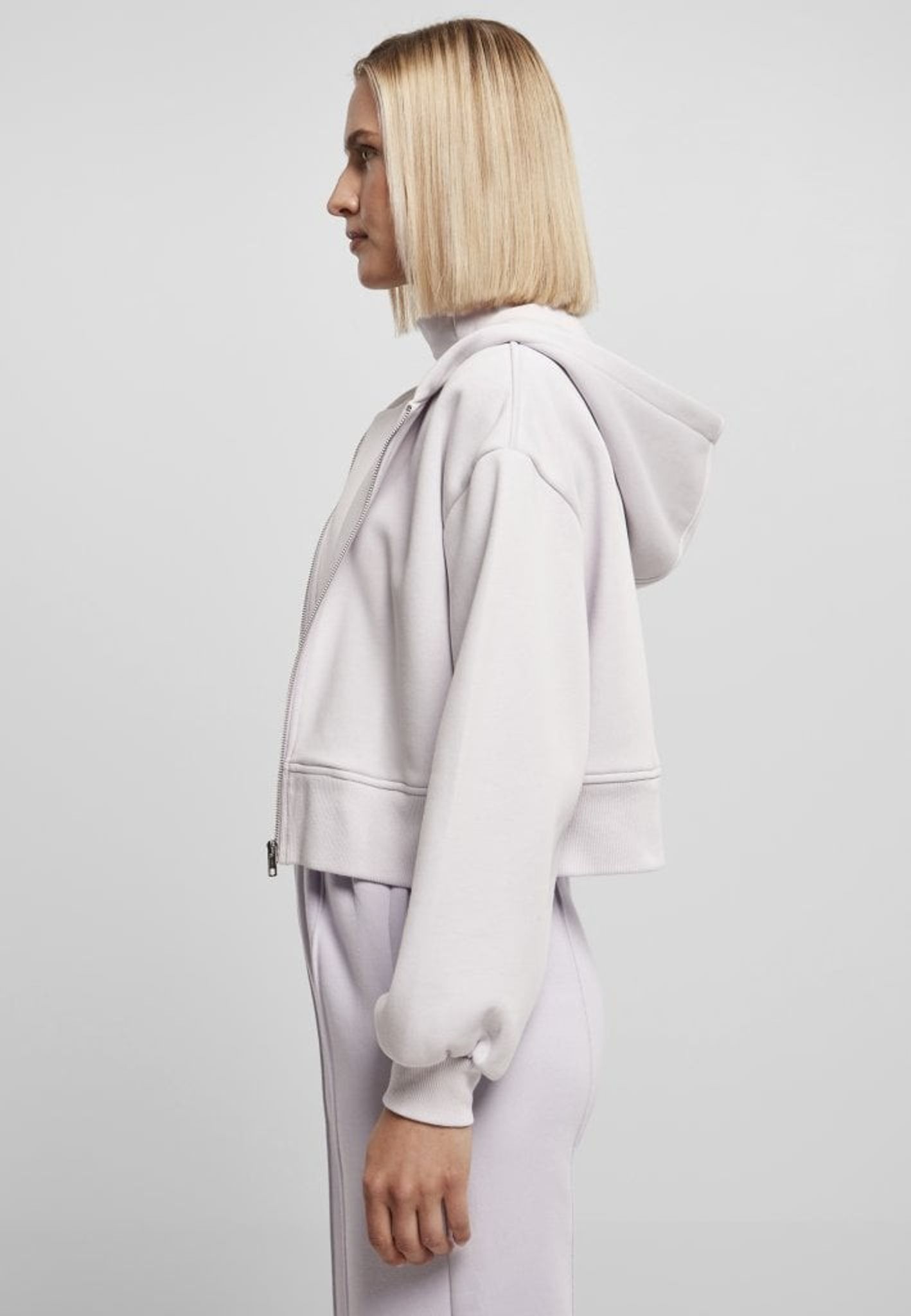 Denna mysiga damjacka kombinerar fördelarna med en hoodie med en västs. Den har en generös huva, en metallisk dragkedja och två sidfickor med dragkedja. Passformen på damjackan är oversized men ändå kort. De tappade ärmarna, utrustade med ribbkanter, ger extra bärkomfort. Den avslappnade zip-jackan är gjord av slät borstad fleece.