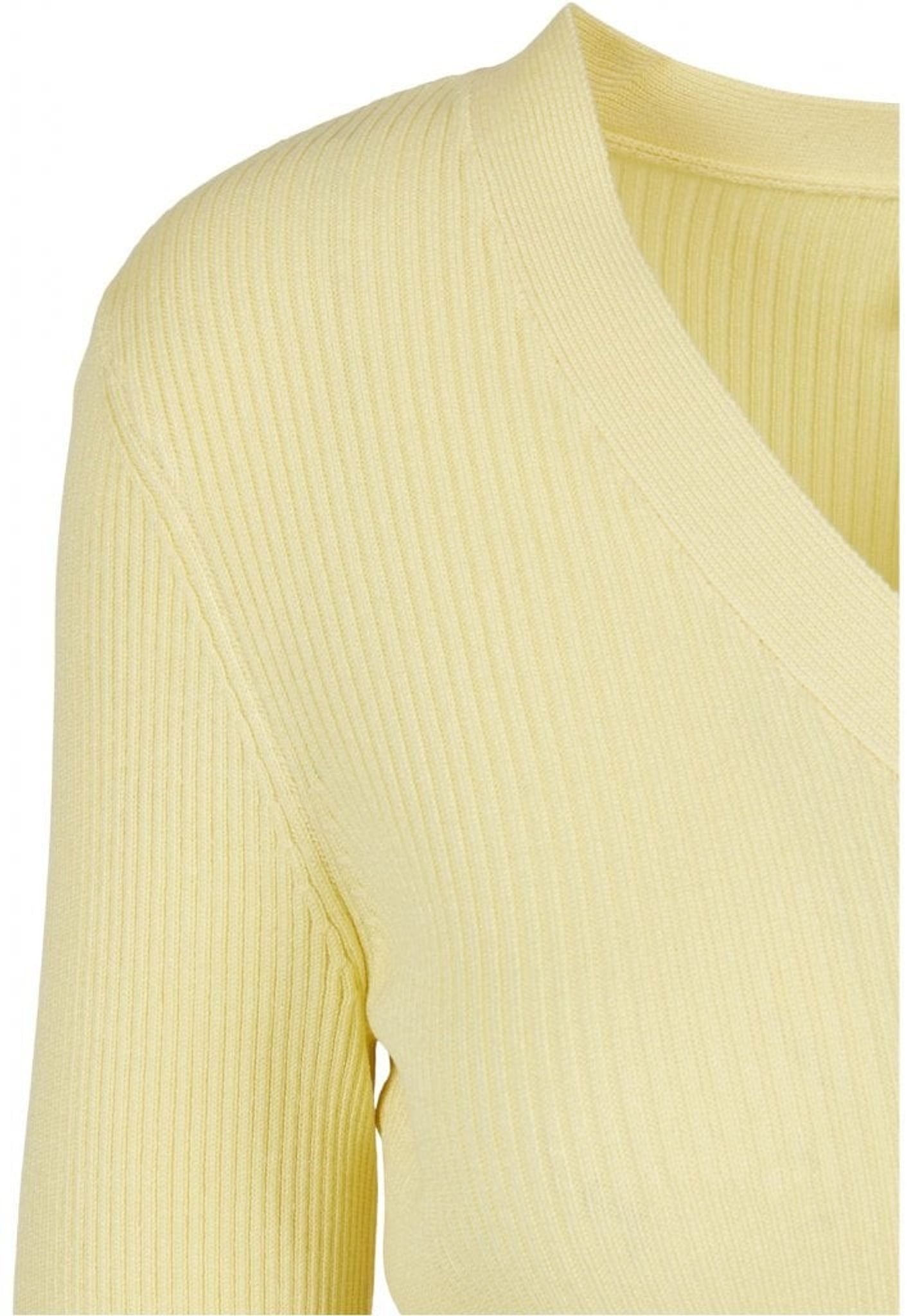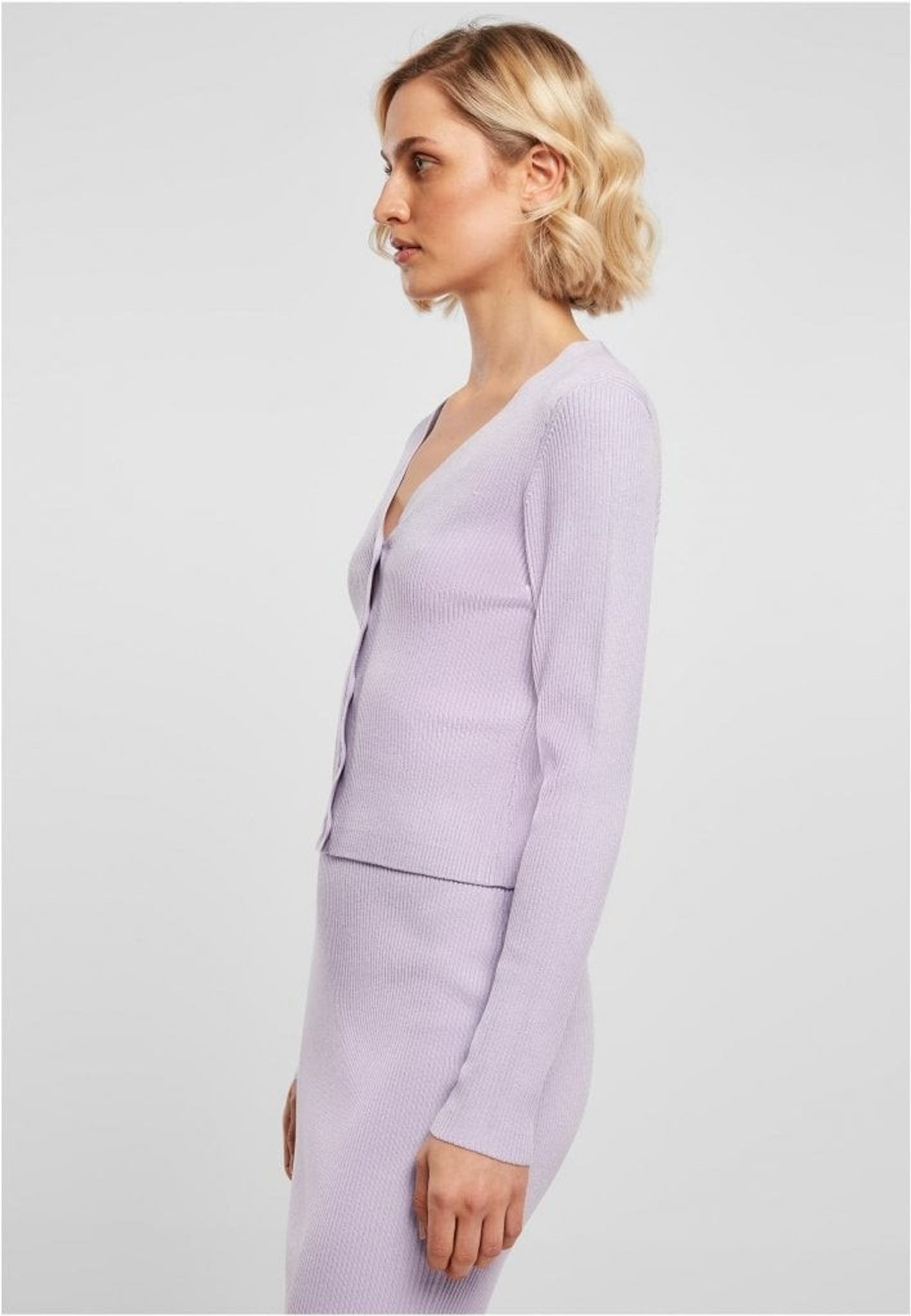 En tunn stickad kofta med v-ringning i en kort modell. Koftan är smal och kroppsnära i passformen.