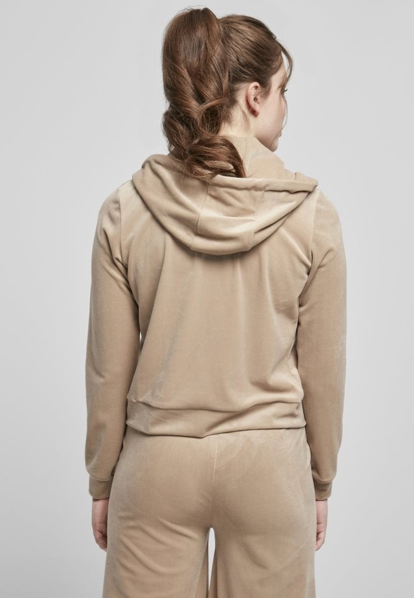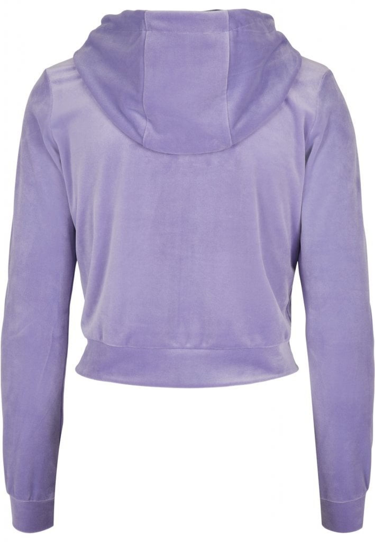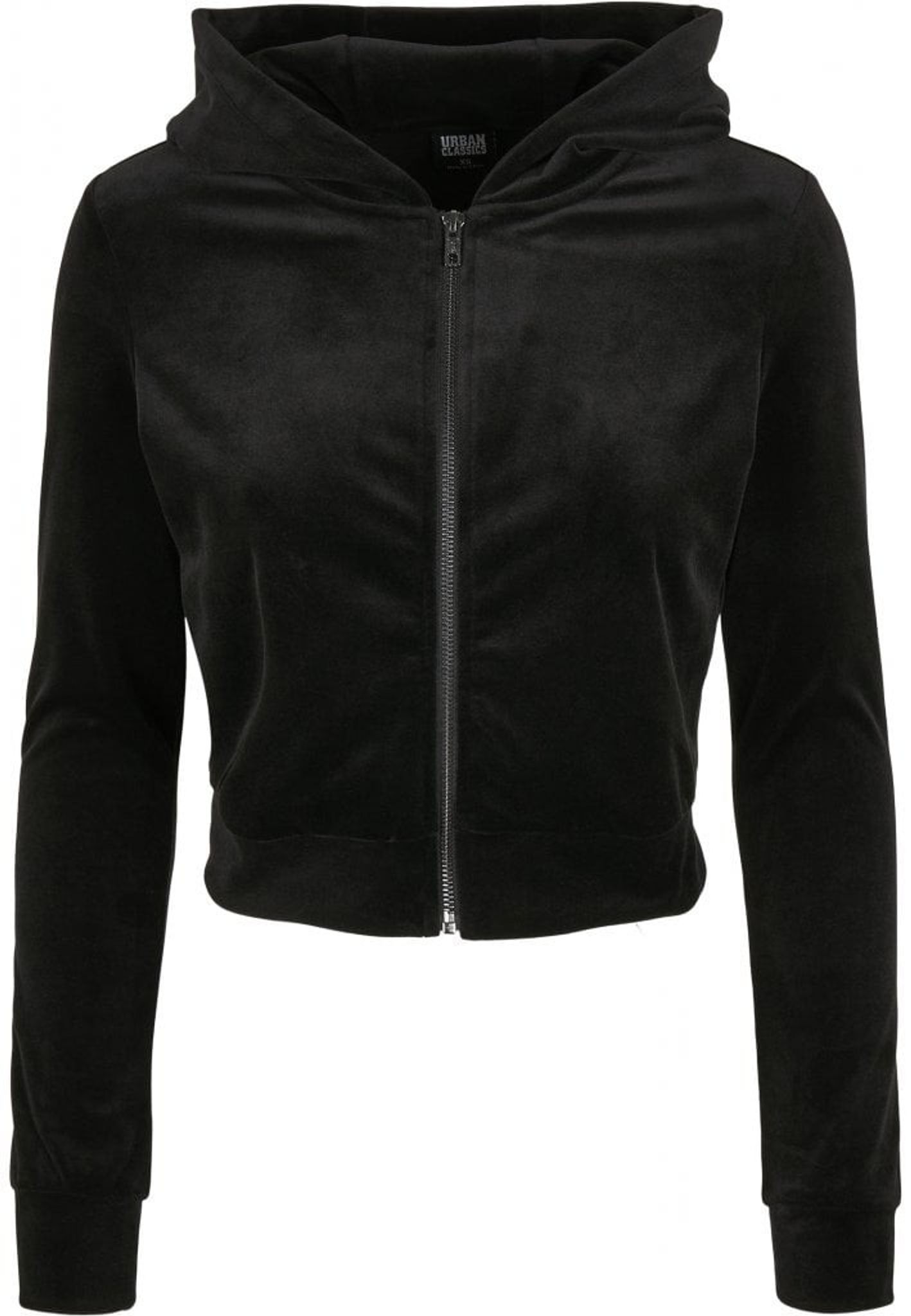 En härlig ziphoodie i gjord i smidig strechsammet som ger den en mysig känsla. Huvtröjan har elastiska muddar och är kort i modellen.