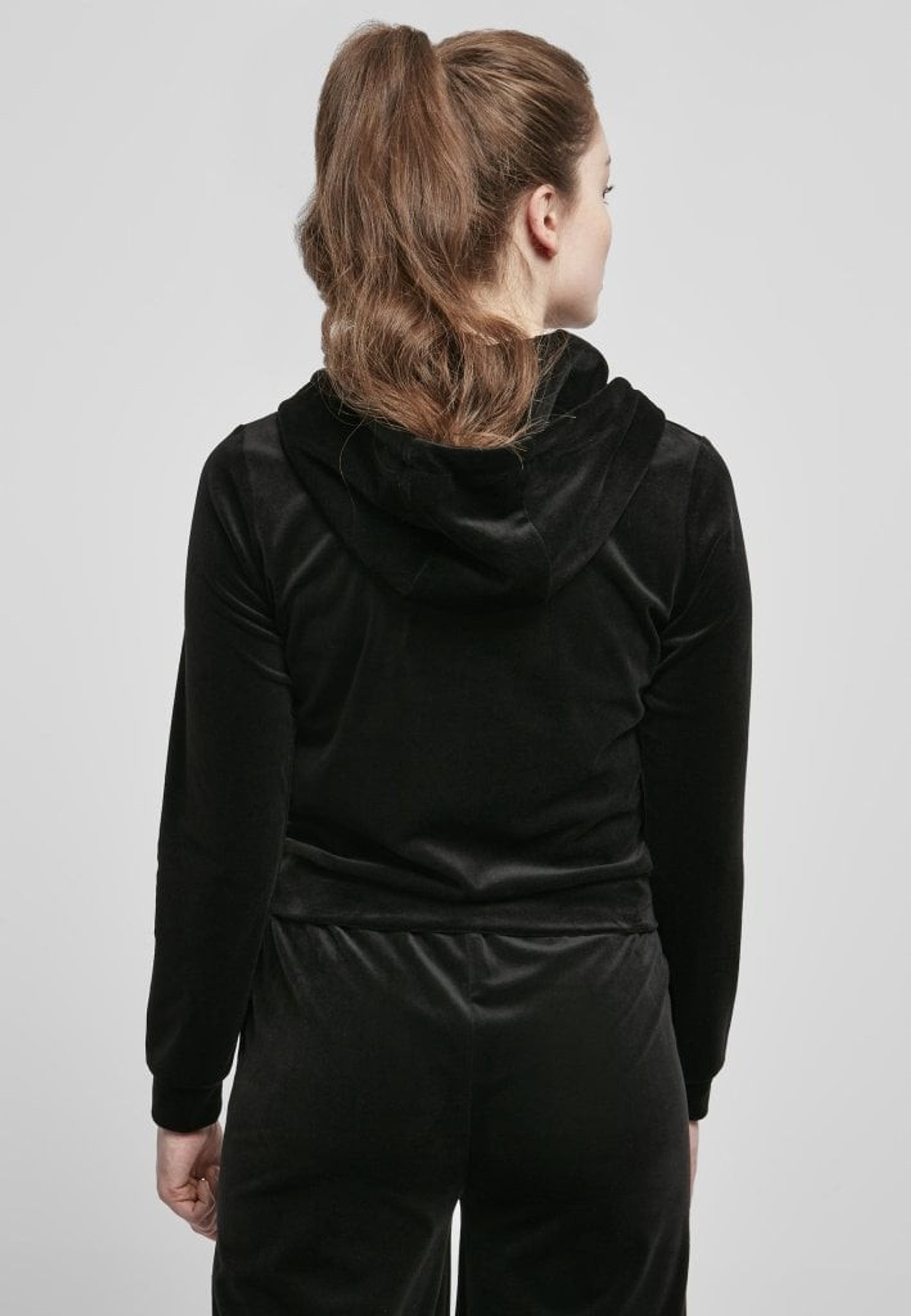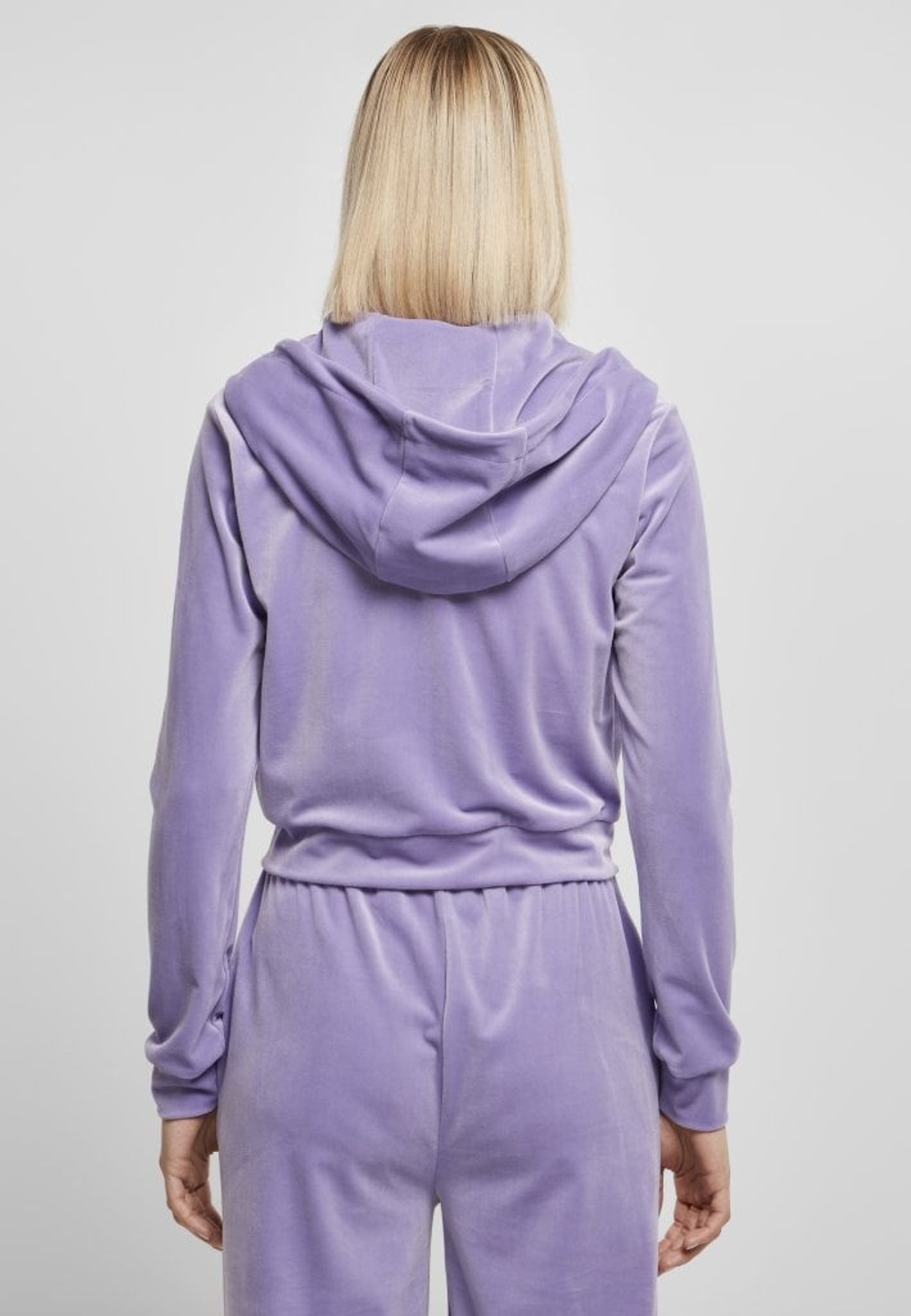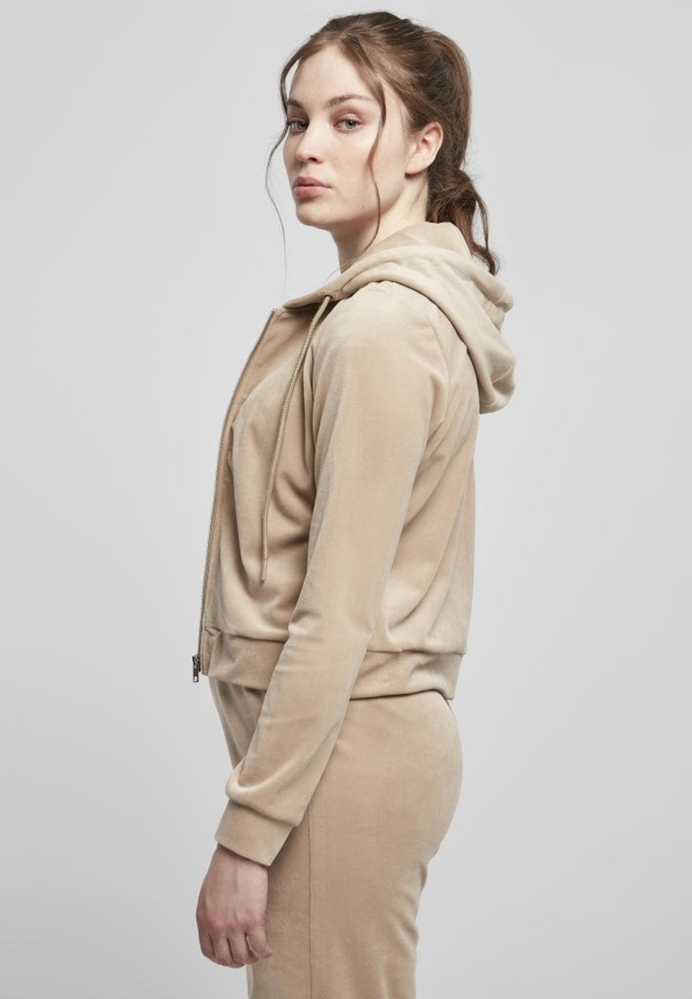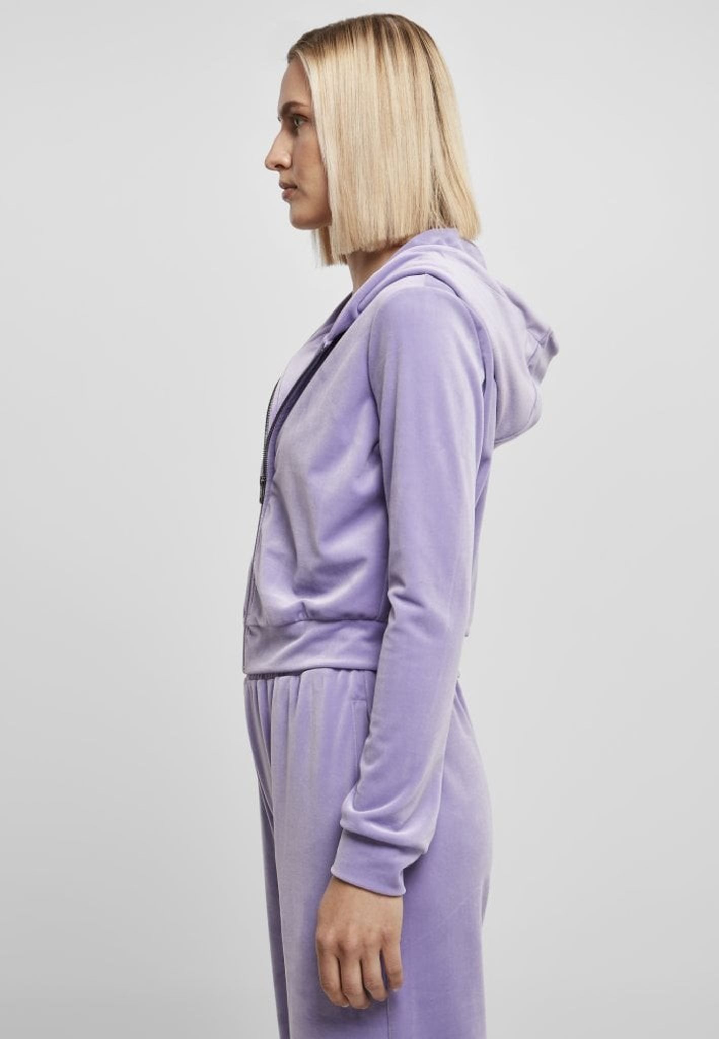 En härlig ziphoodie i gjord i smidig strechsammet som ger den en mysig känsla. Huvtröjan har elastiska muddar och är kort i modellen.