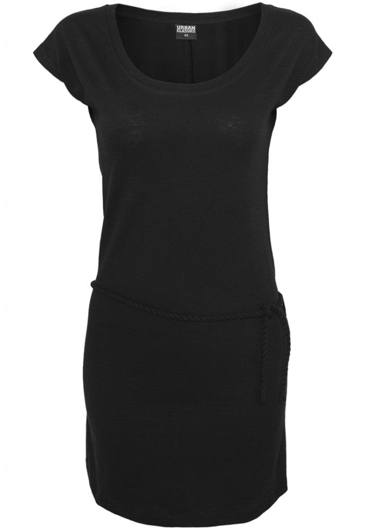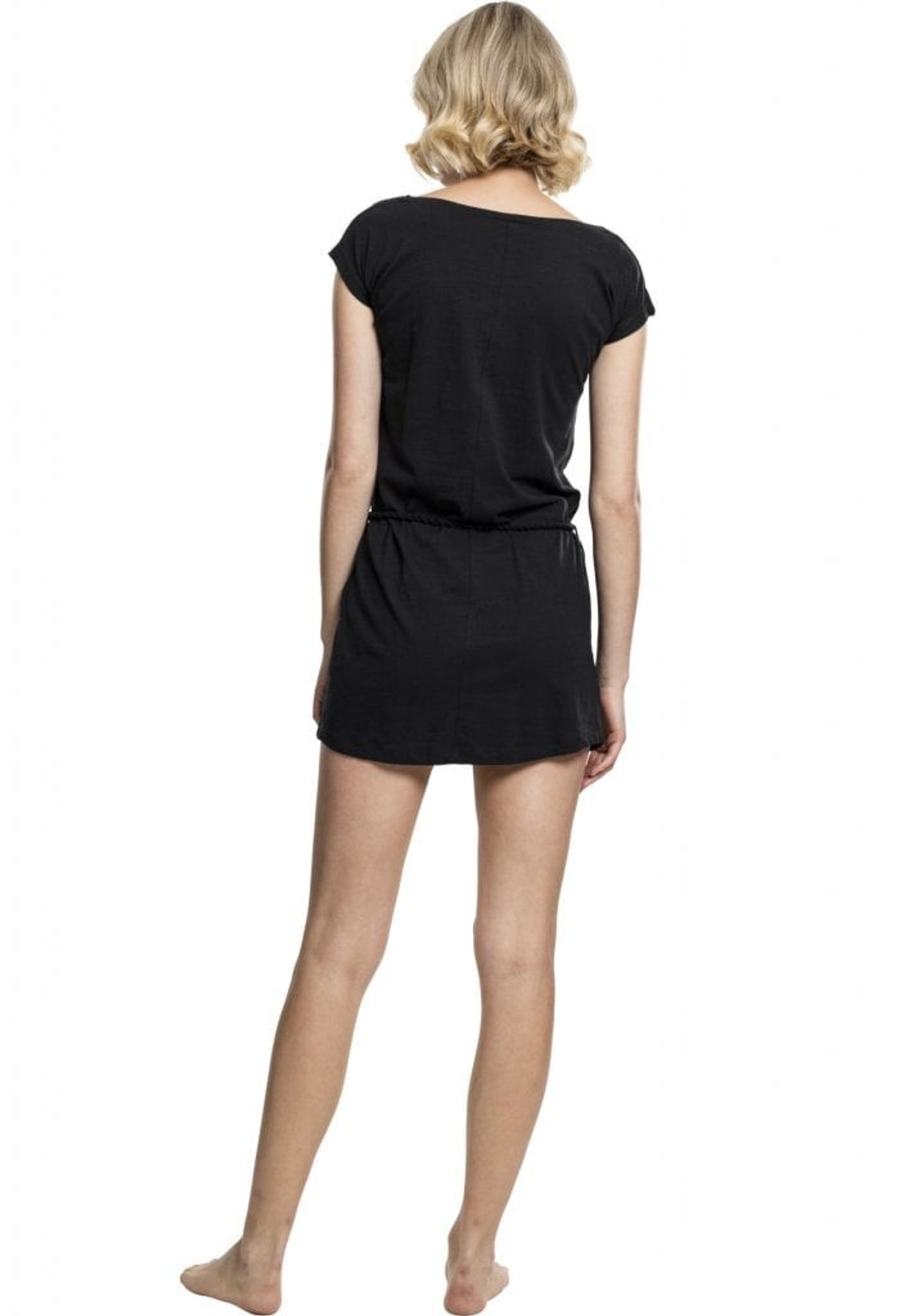 Uppgradera din garderob med Ladies Slub Jersey Dress från URBAN CLASSICS. Denna figurnära klänning med korta ärmar och ett stiligt snöre runt höfterna ger en unik touch till din look.