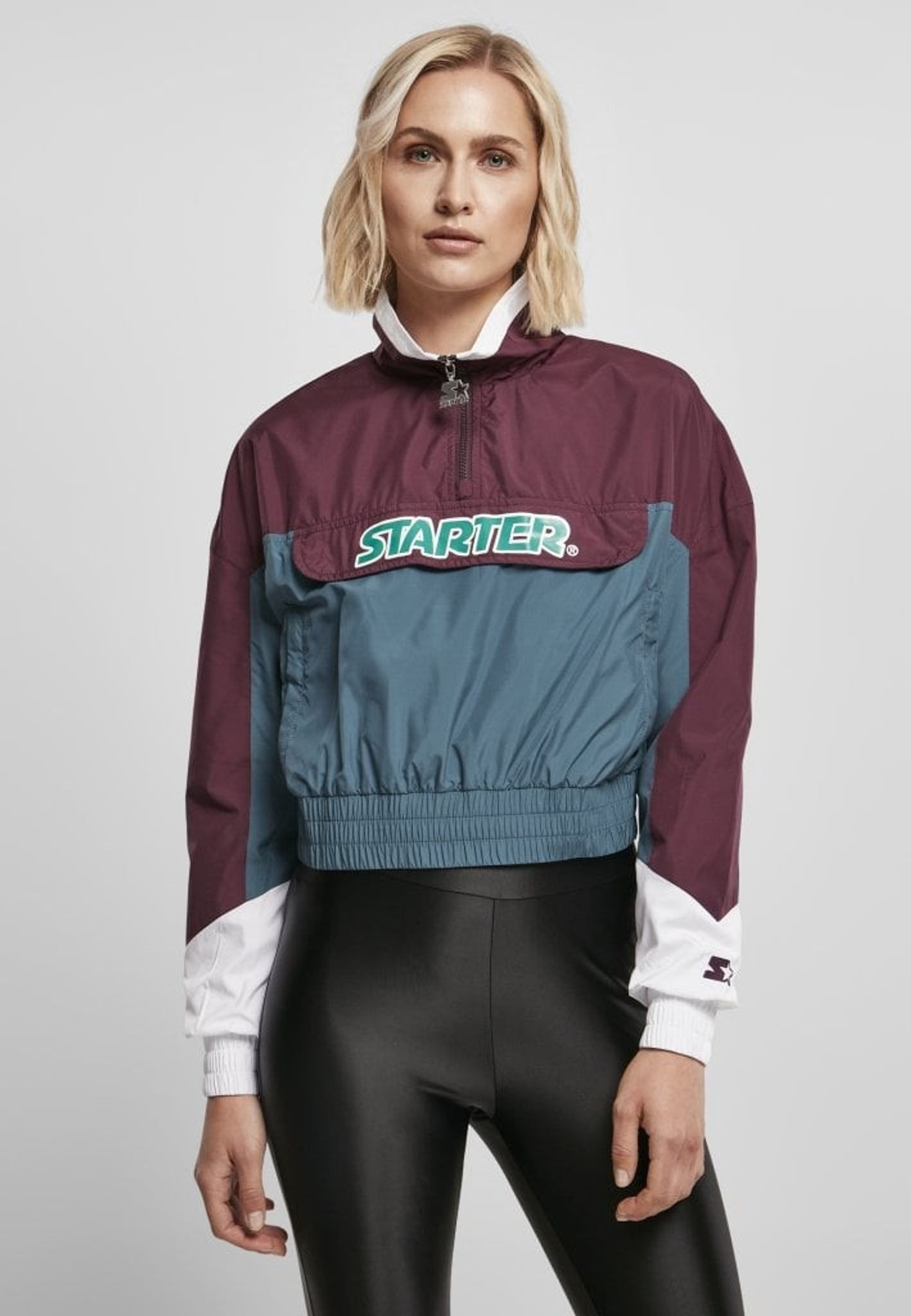 En tuff kort jacka med sportig look. Jackan kommer från märket Starter och byggs av tvåfärgade block.