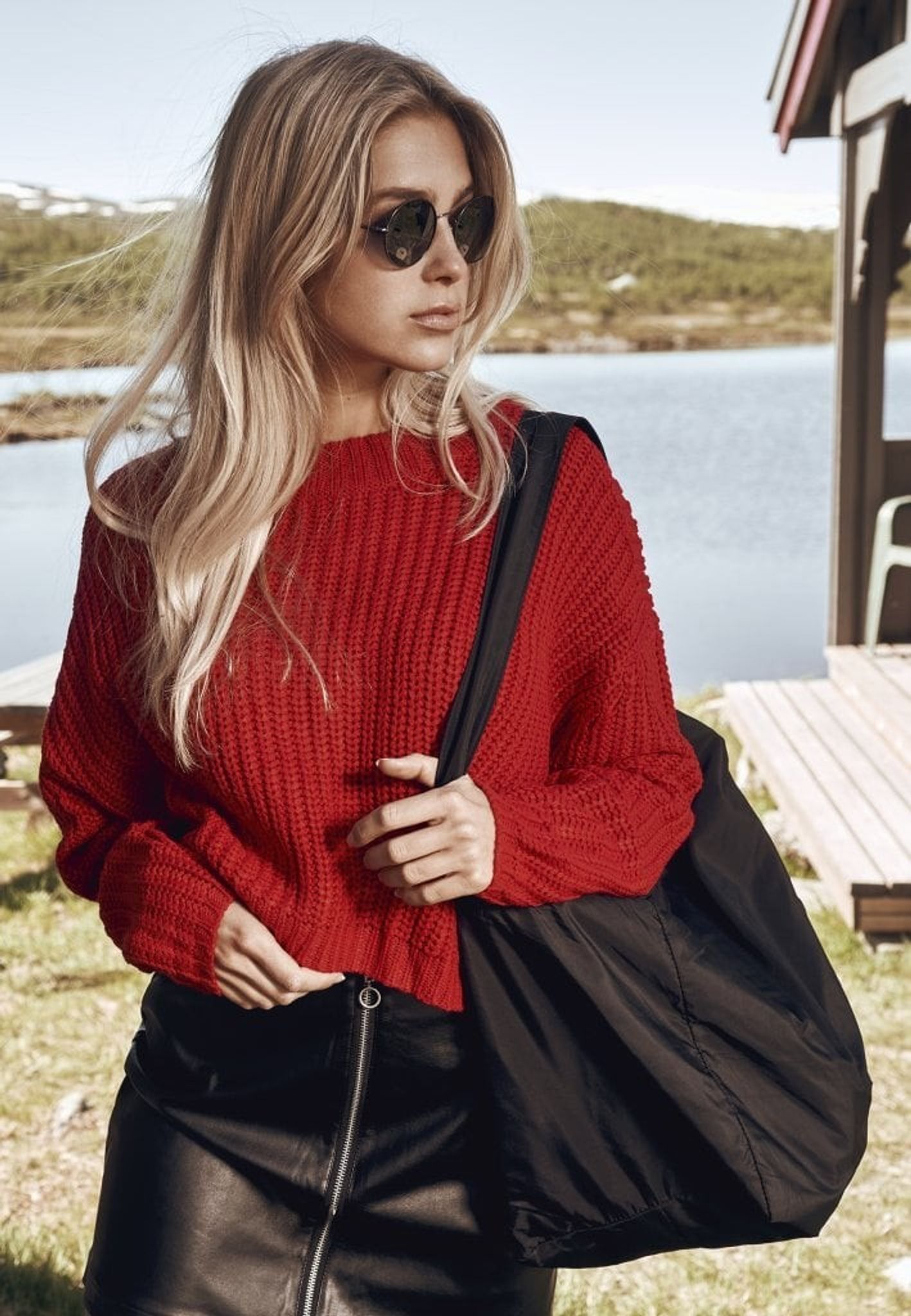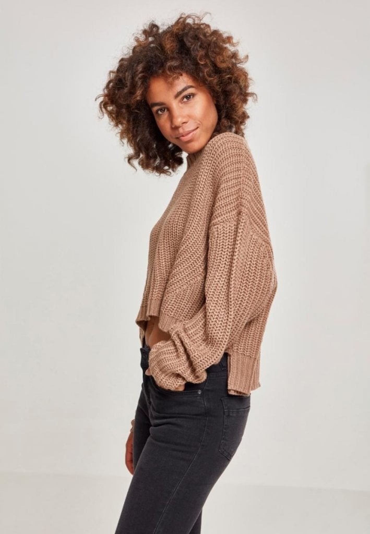 Damtröja i en vid oversize modell. Modellen är lite längre bak och har nedhasade axlar. Ribbad kant nedertill och i halsen.