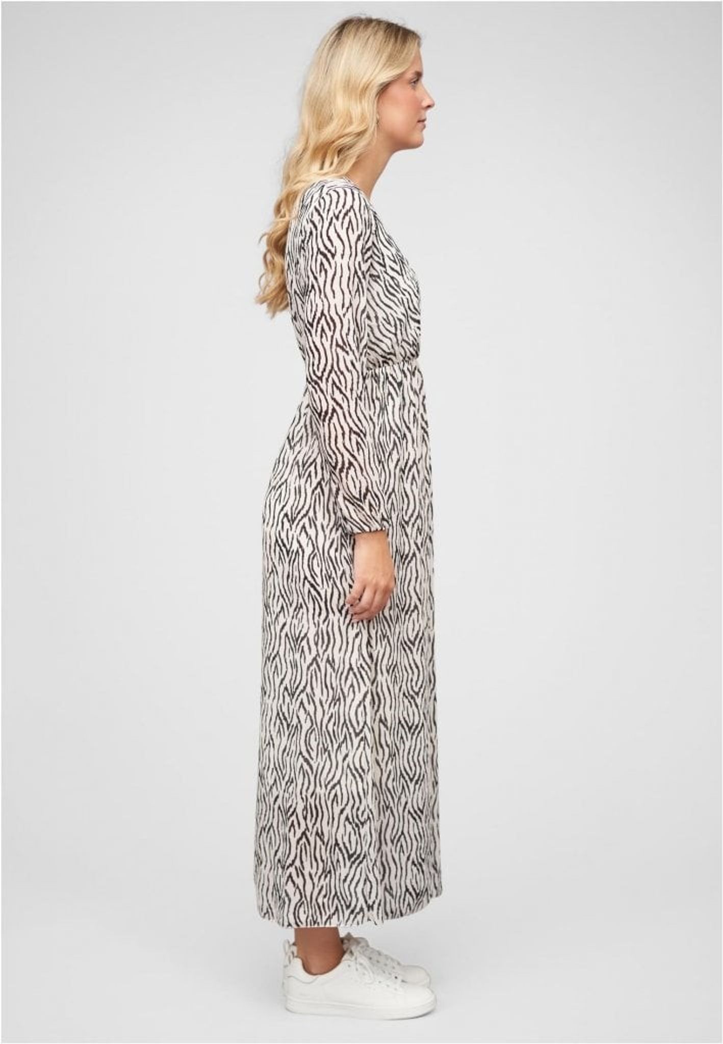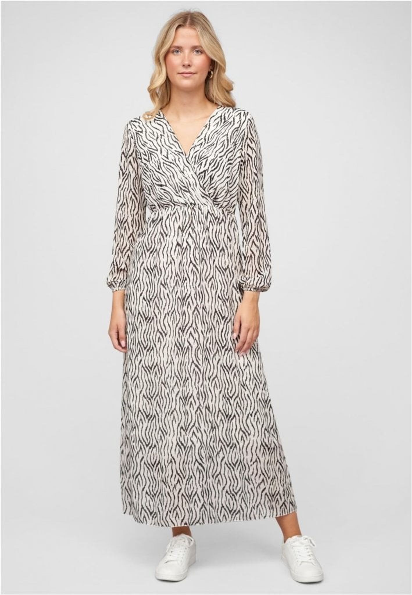 Upptäck vår Lång Chiffon Klänning med V-Utskärning, designad för att ge en elegant och tidlös look. Klänningen är tillverkad av 100% polyester, vilket ger en lätt och luftigt känsla. Viskosinsatsen ger en extra touch av komfort och stil, perfekt för både vardag och fest. Med sin vackra vita och svarta färgkombination passar den utmärkt till olika tillfällen. Välj denna klänning för att känna dig både chic och bekväm hela dagen.