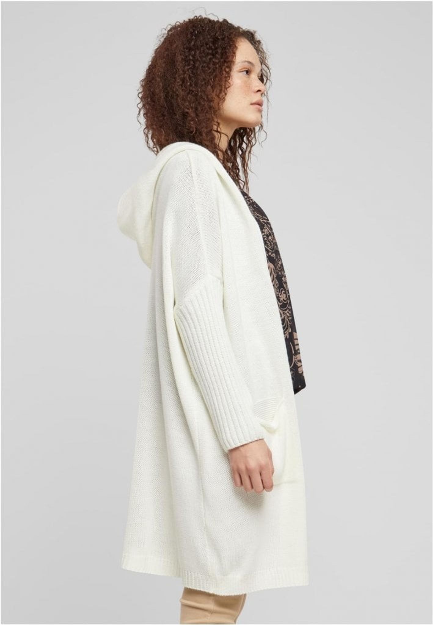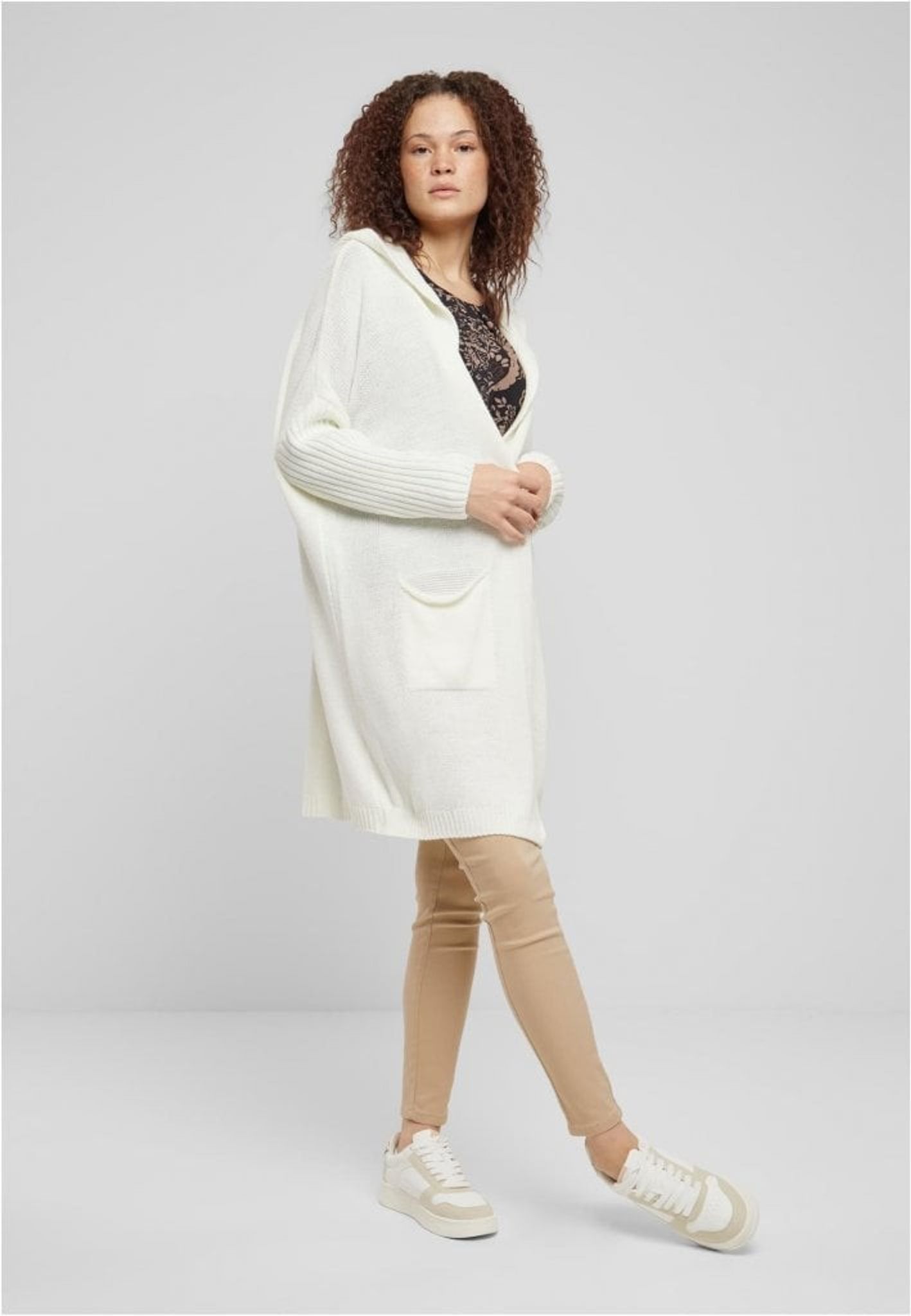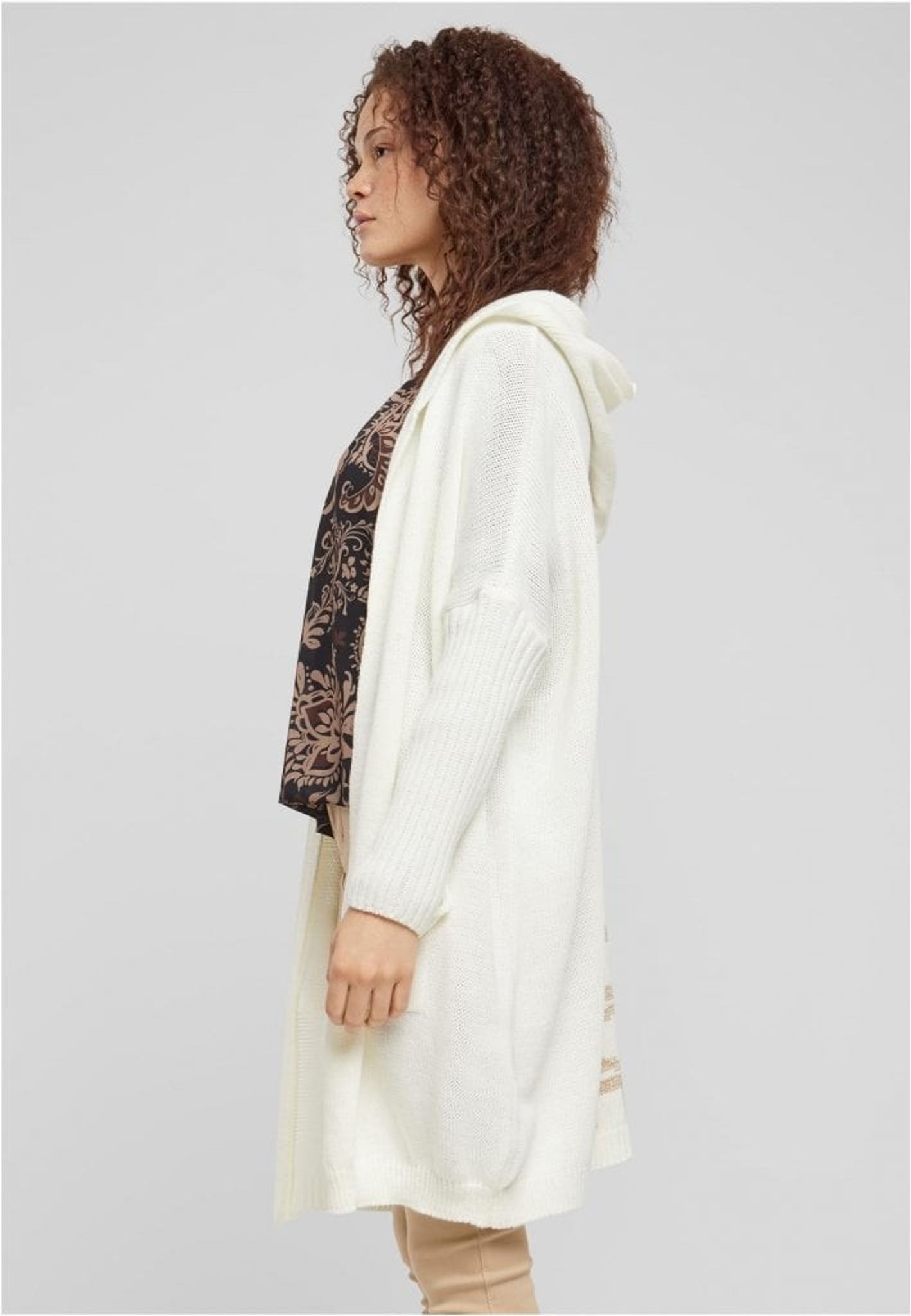 Denna eleganta och bekväma långa kofta, "Simply Live". Den är designad med en avslappnad passform som ger en ledig men samtidigt sofistikerad silhuett. Koftan kommer i en lugnande elfenbensvit färg med stilfulla detaljer i beige som framhäver ordet "LIVE" och ett hjärta, vilket tillför en subtil men meningsfull touch till designen.