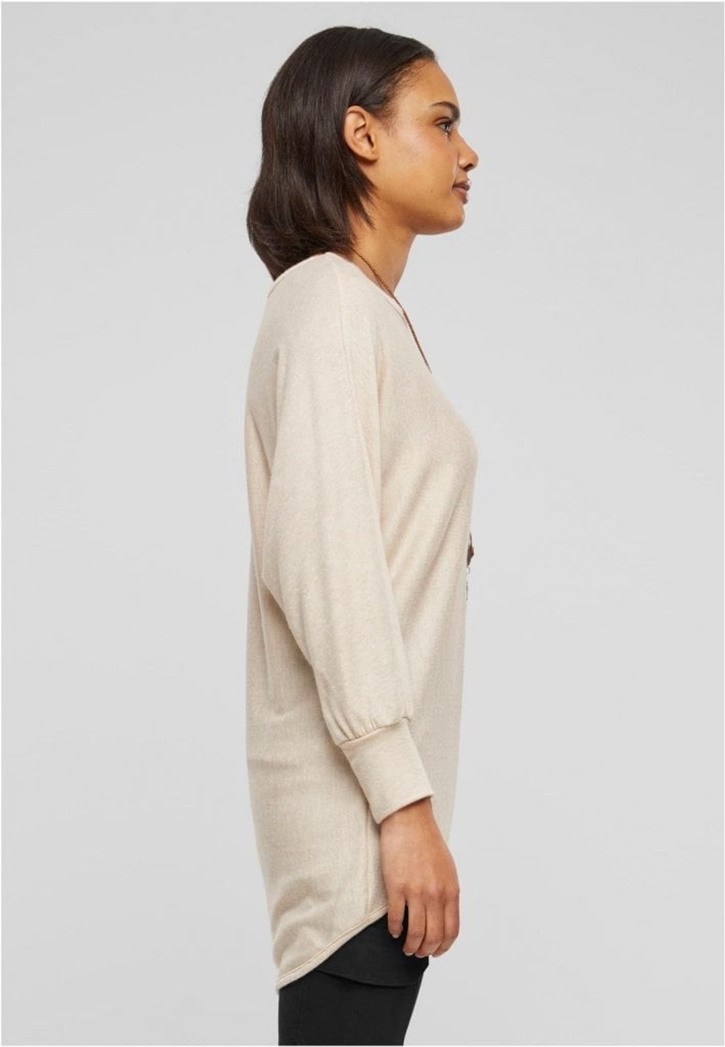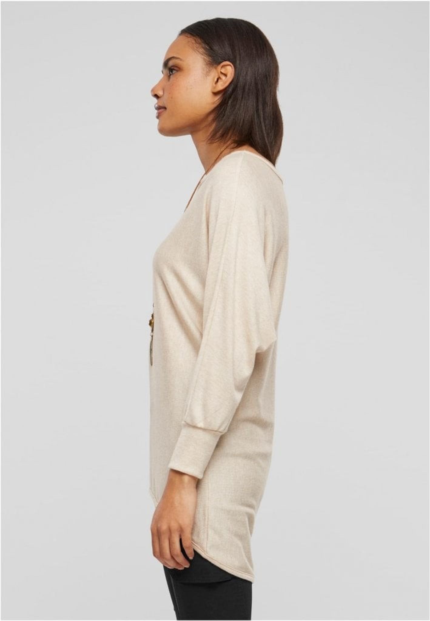 Denna långärmade, stickade tröja för damer är en mångsidig och elegant. Tröjan är designad med en avslappnad passform som sträcker sig längre ner på kroppen för en modern silhuett som kompletterar både byxor och kjolar.