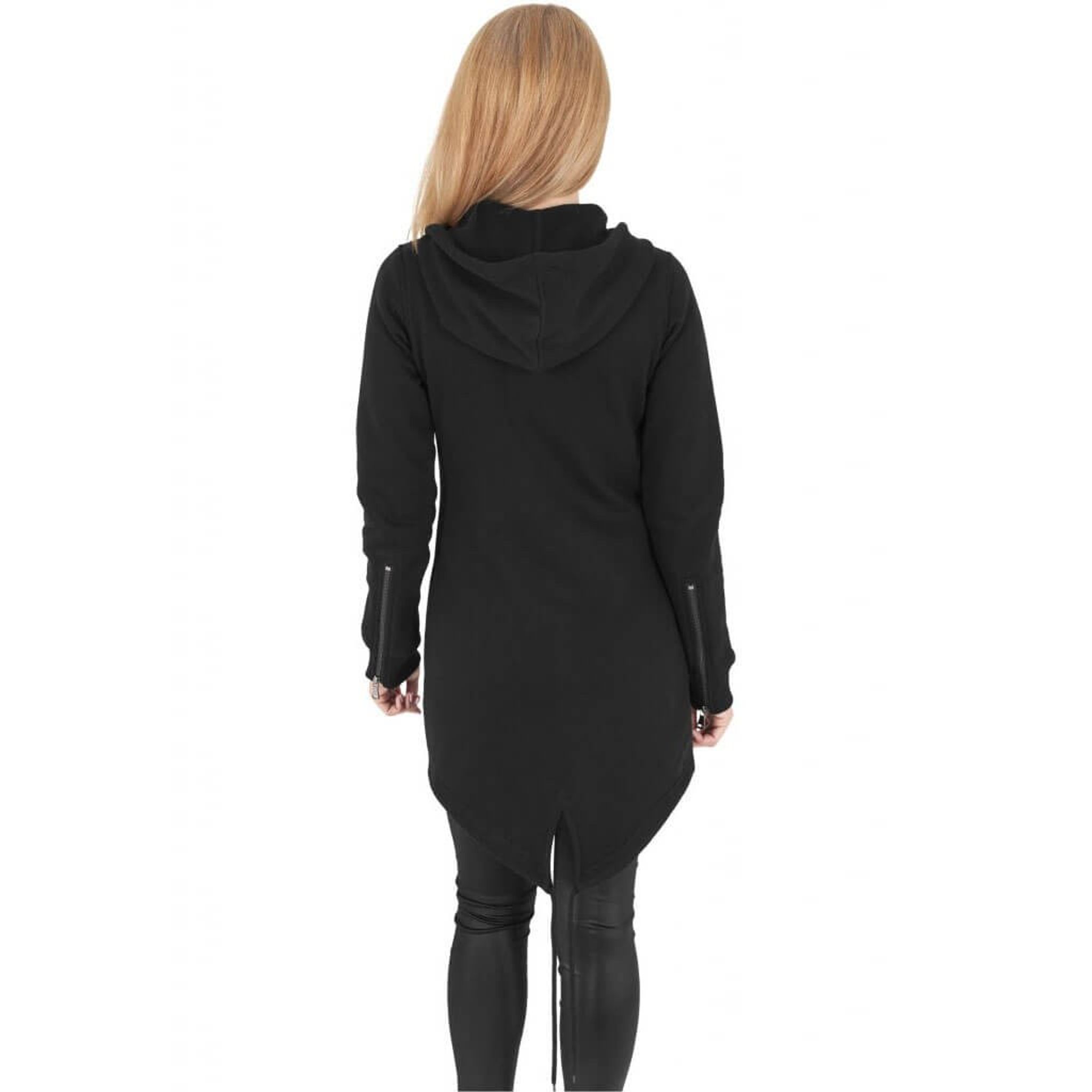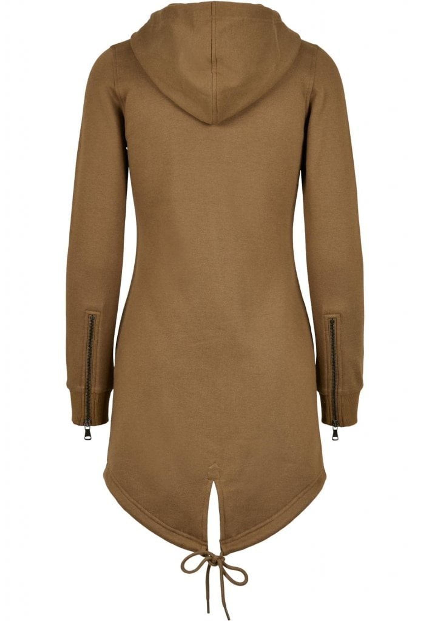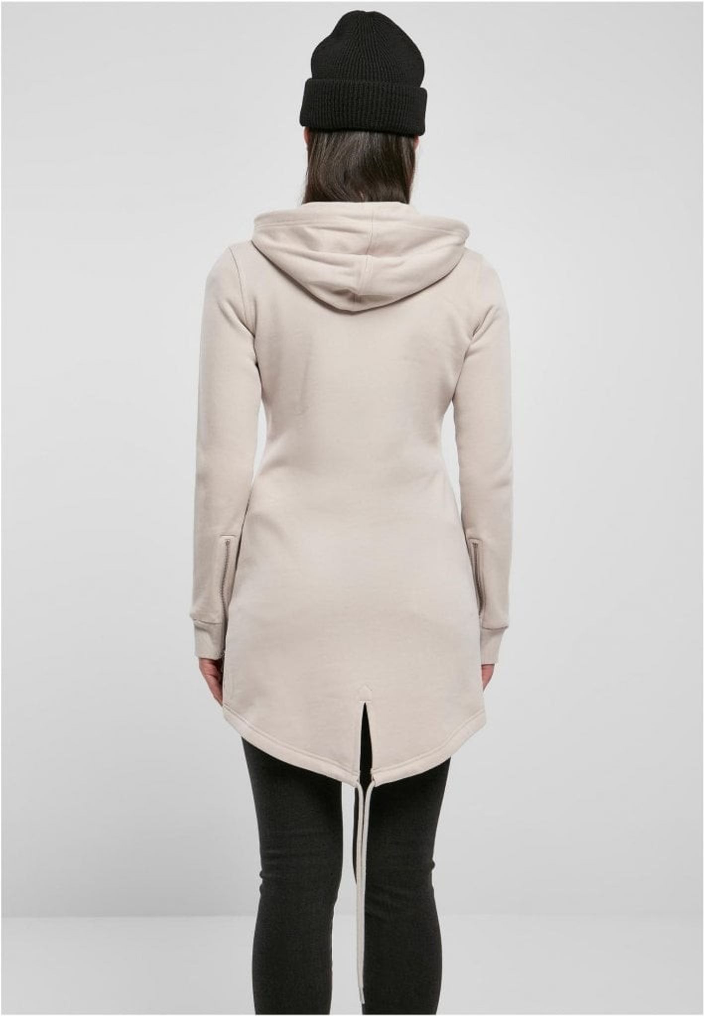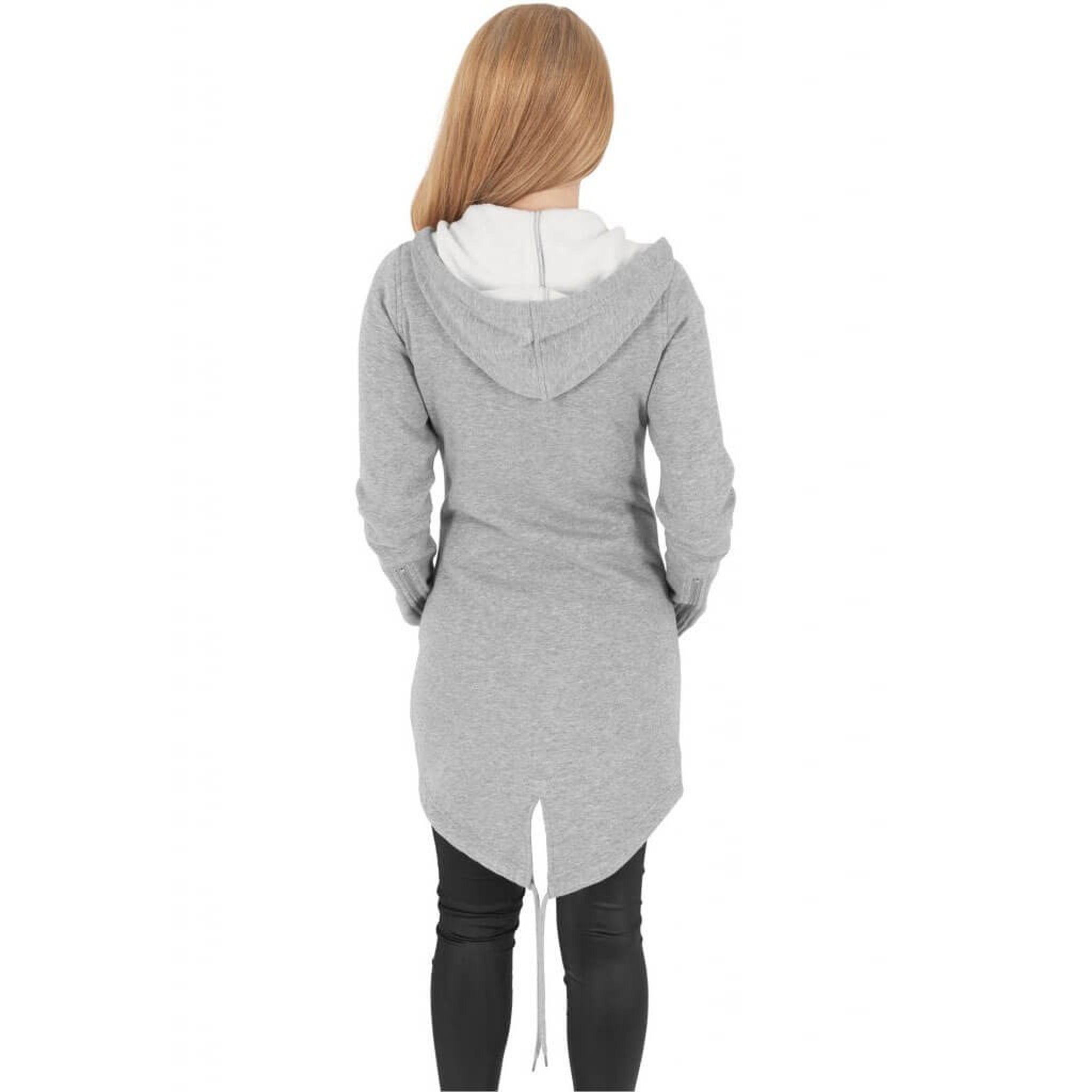 Som en sista touch till denna långa damhoodie, erbjuder de elastiska dragkedjeknapparna vid ärmsluten en snygg detalj och ytterligare komfort.