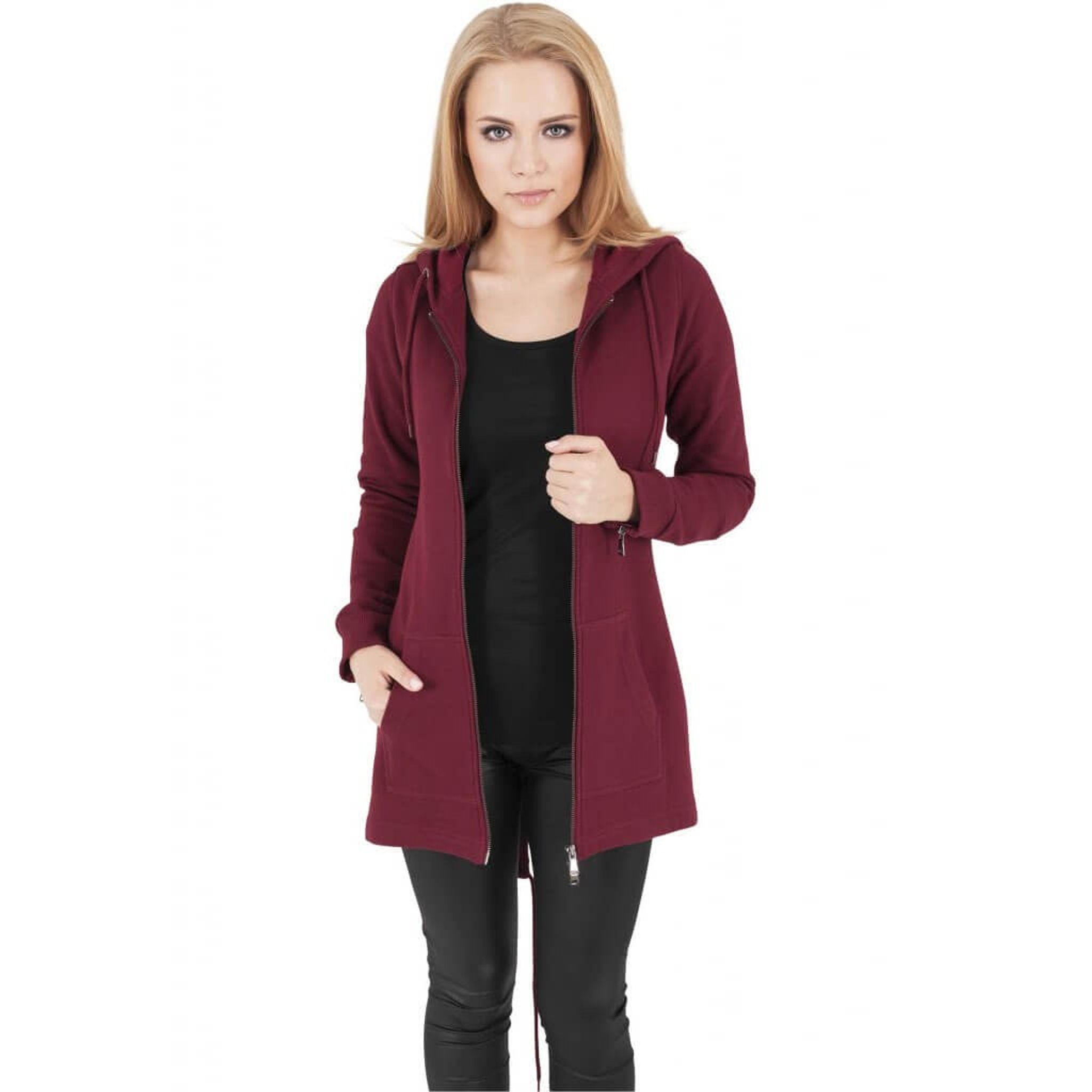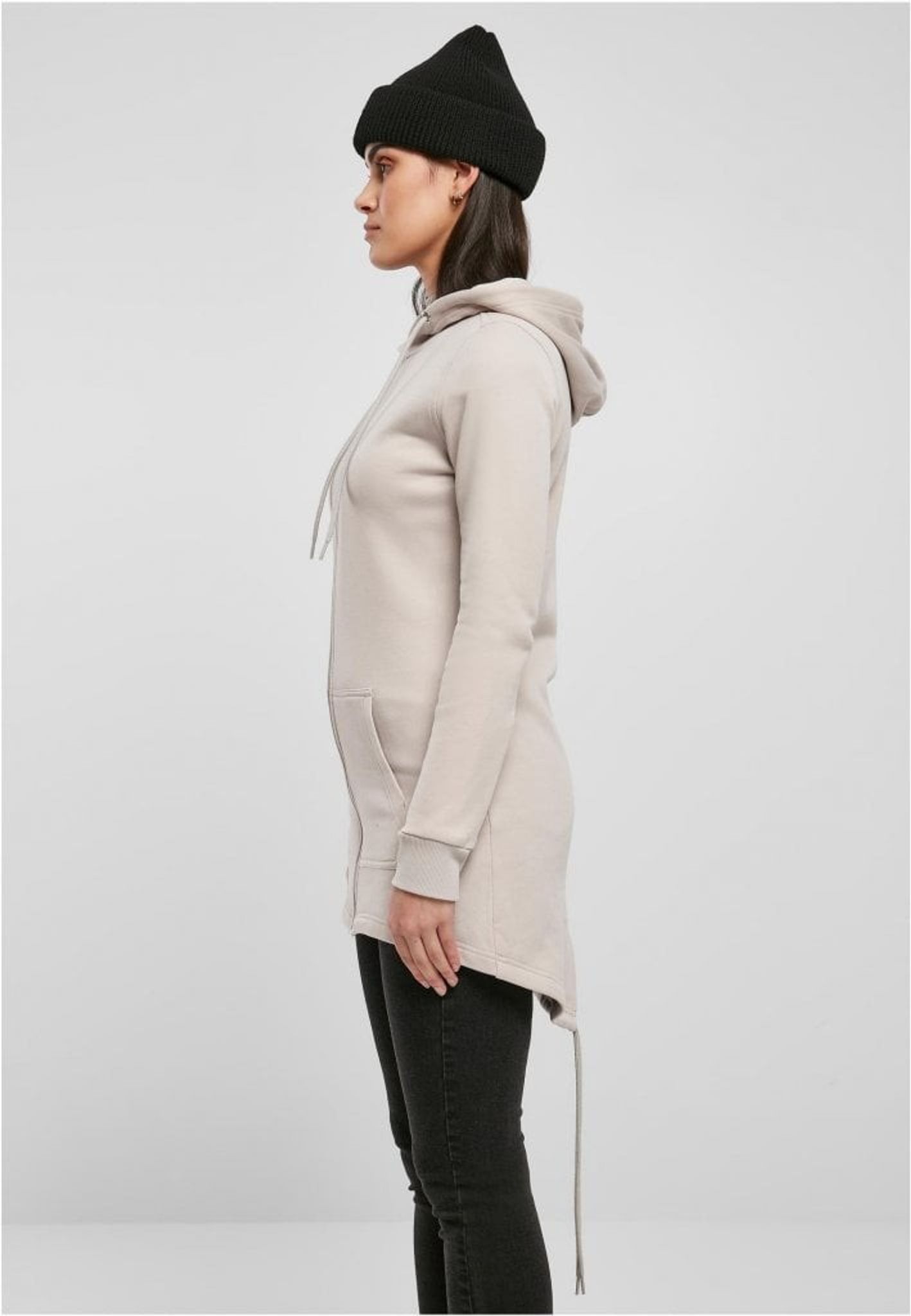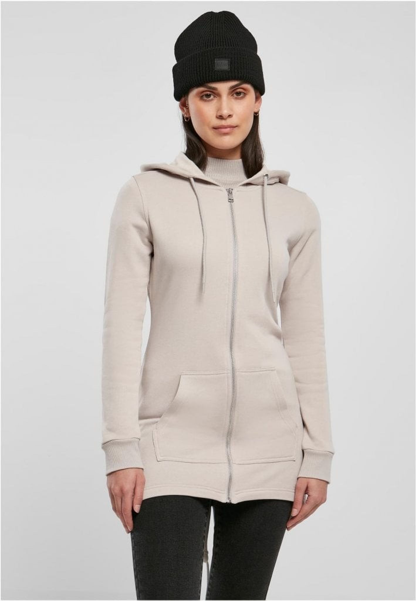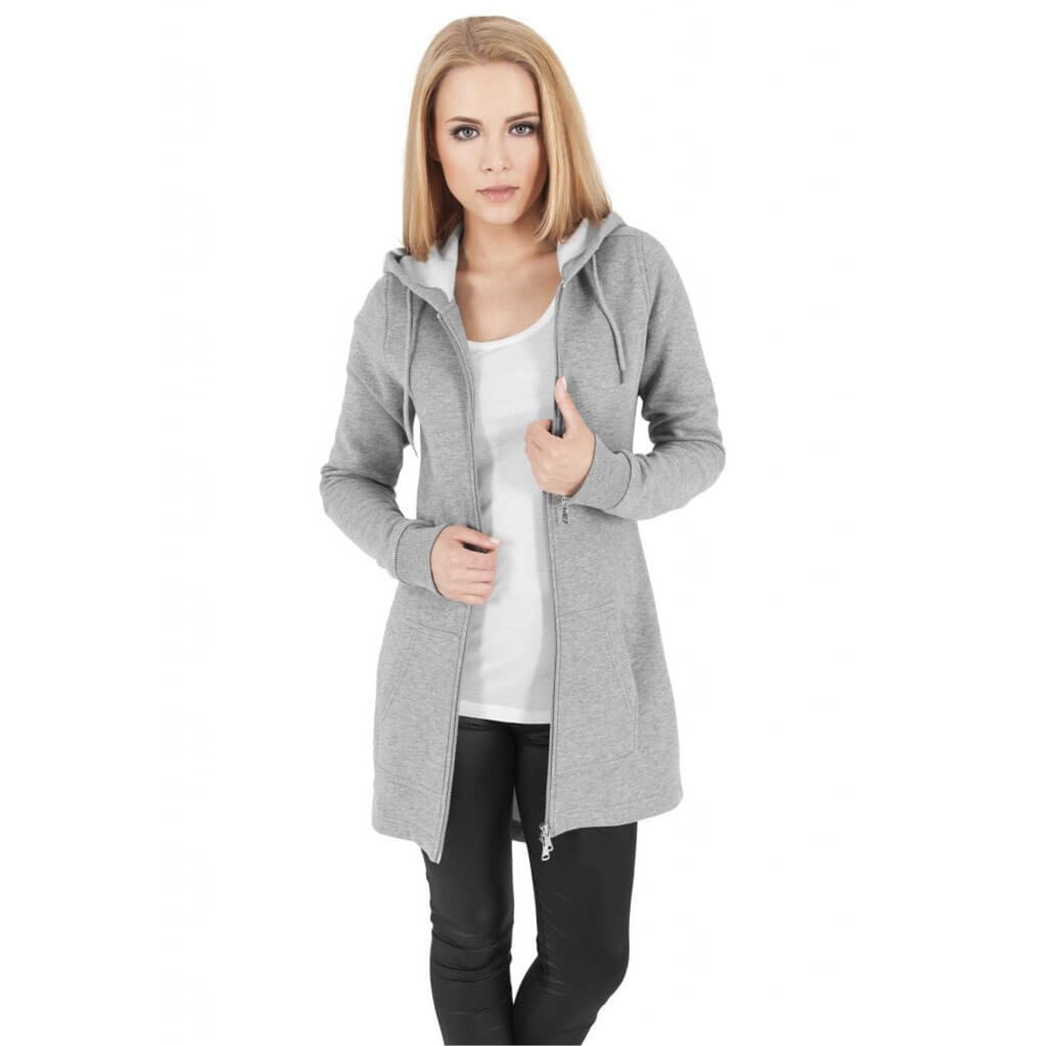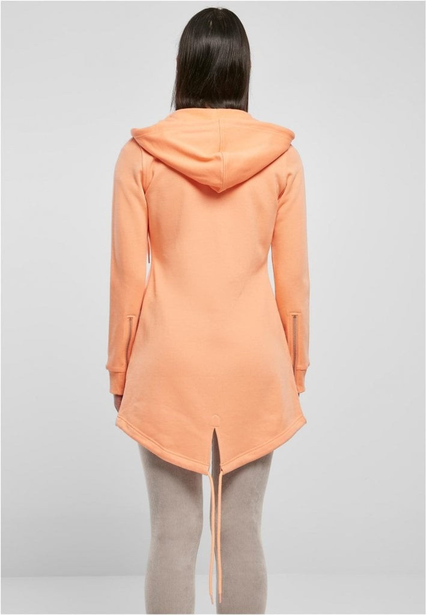 Som en sista touch till denna långa damhoodie, erbjuder de elastiska dragkedjeknapparna vid ärmsluten en snygg detalj och ytterligare komfort.