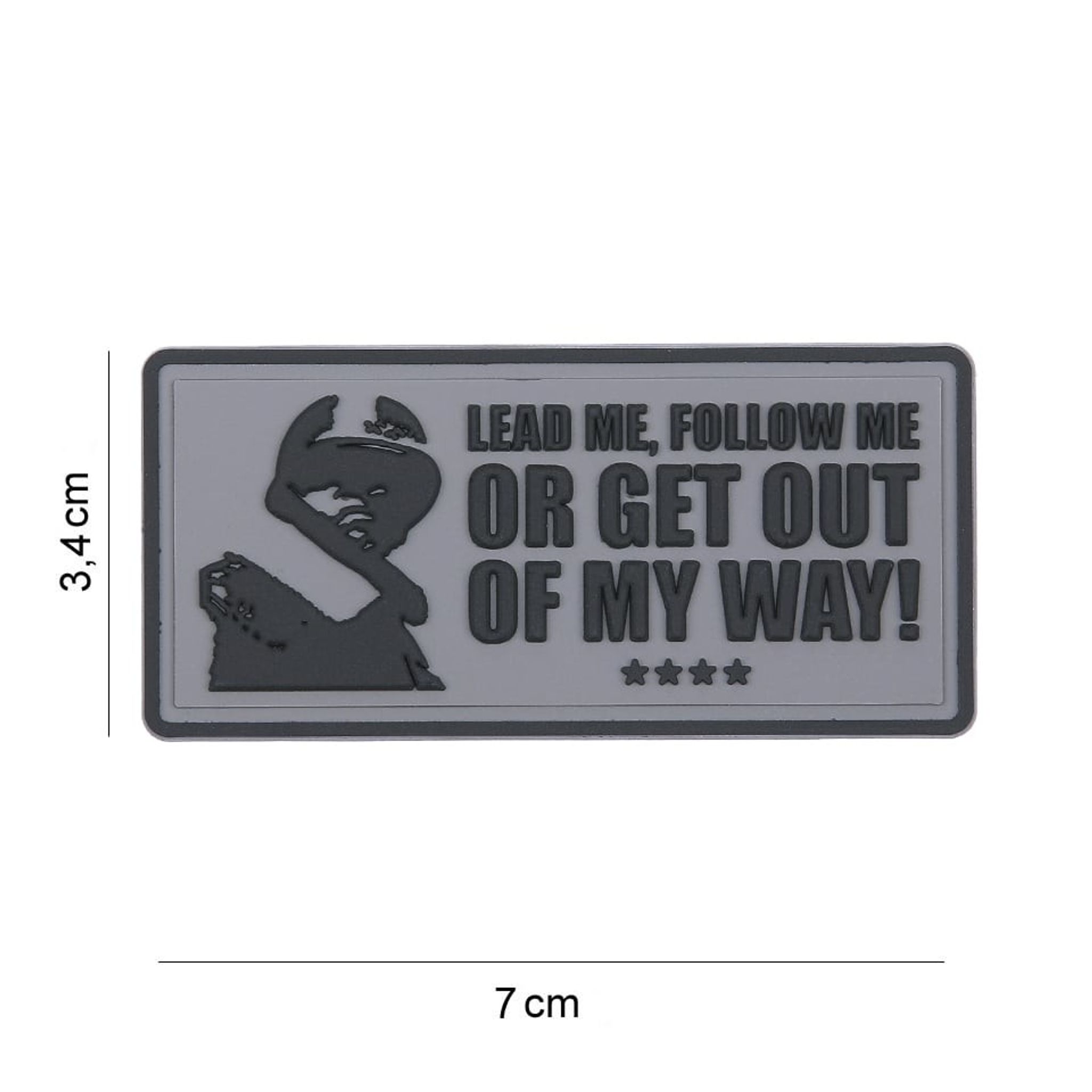 PVC-patch med grå bakgrund och 3D bokstäver med texten "Lead me, follow me or get out of my way".