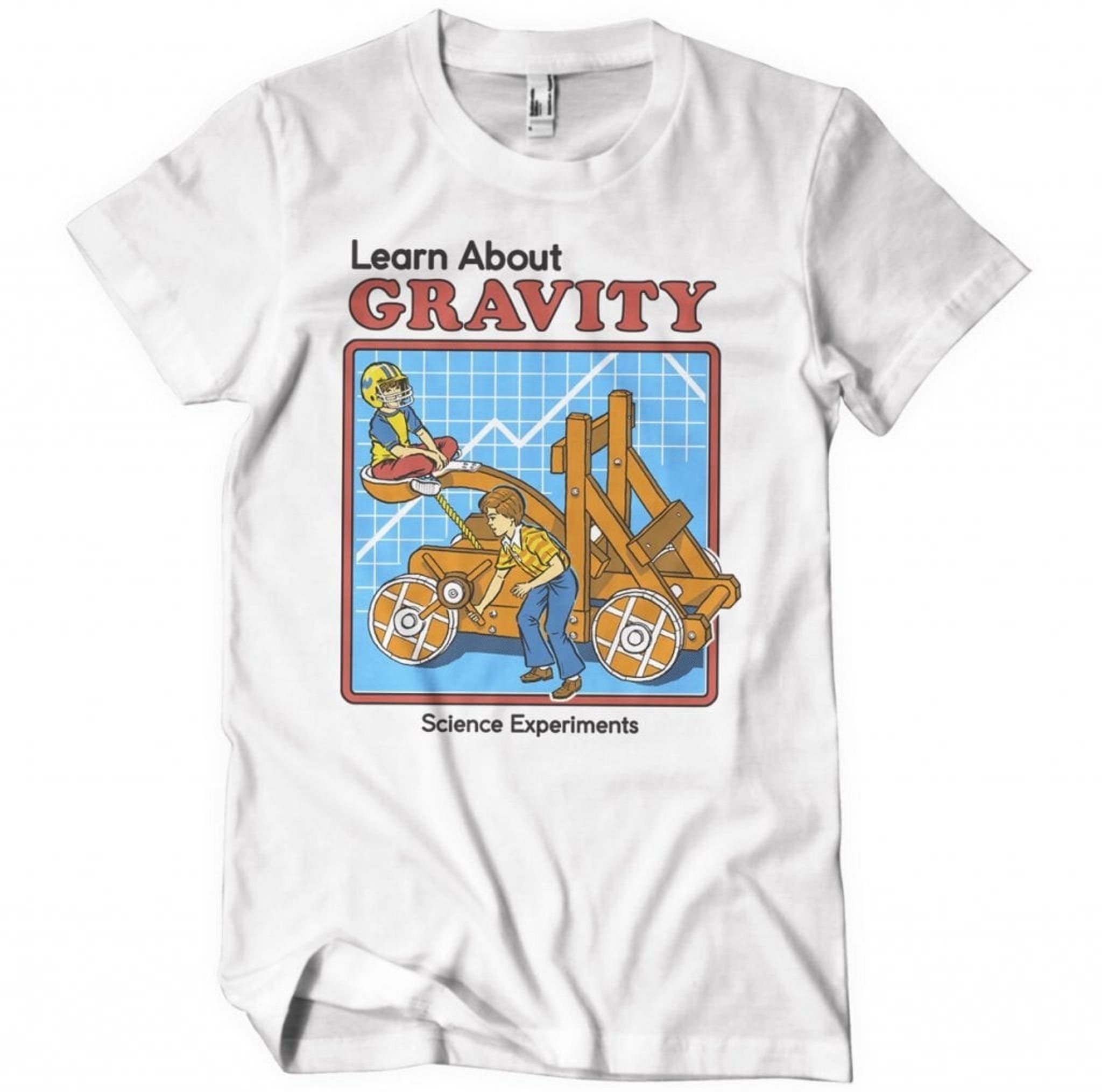 Steven Rhodes är tillbaka med en lekfull påminnelse om fysikens lagar i form av "Learn About GRAVITY" t-shirten. Med en humoristisk touch och en ögonblicklig spänning i vetenskaplig upptäckt, fångar denna bild känslan av att utforska tyngdlagen på ett 'gravitationskraftigt' underhållande sätt.