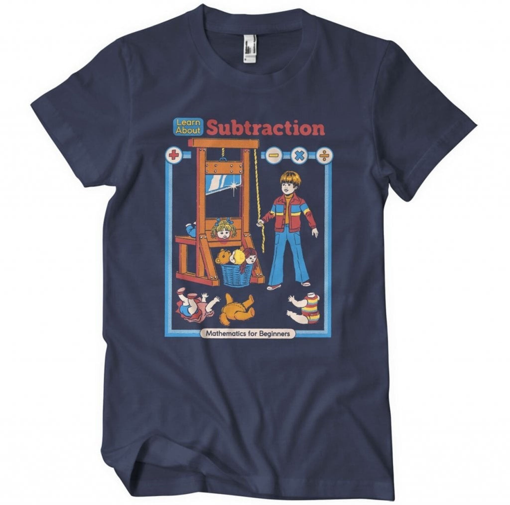 Så låt Steven Rhodes "Learn About Subtraction" t-shirt vara en påminnelse om att matteundervisning faktiskt kan vara både spännande och ganska bokstavlig. Eller som karaktären i bilden skulle säga: "Det är bara ett avhugget finger, vad är det att vara så dramatisk över?"