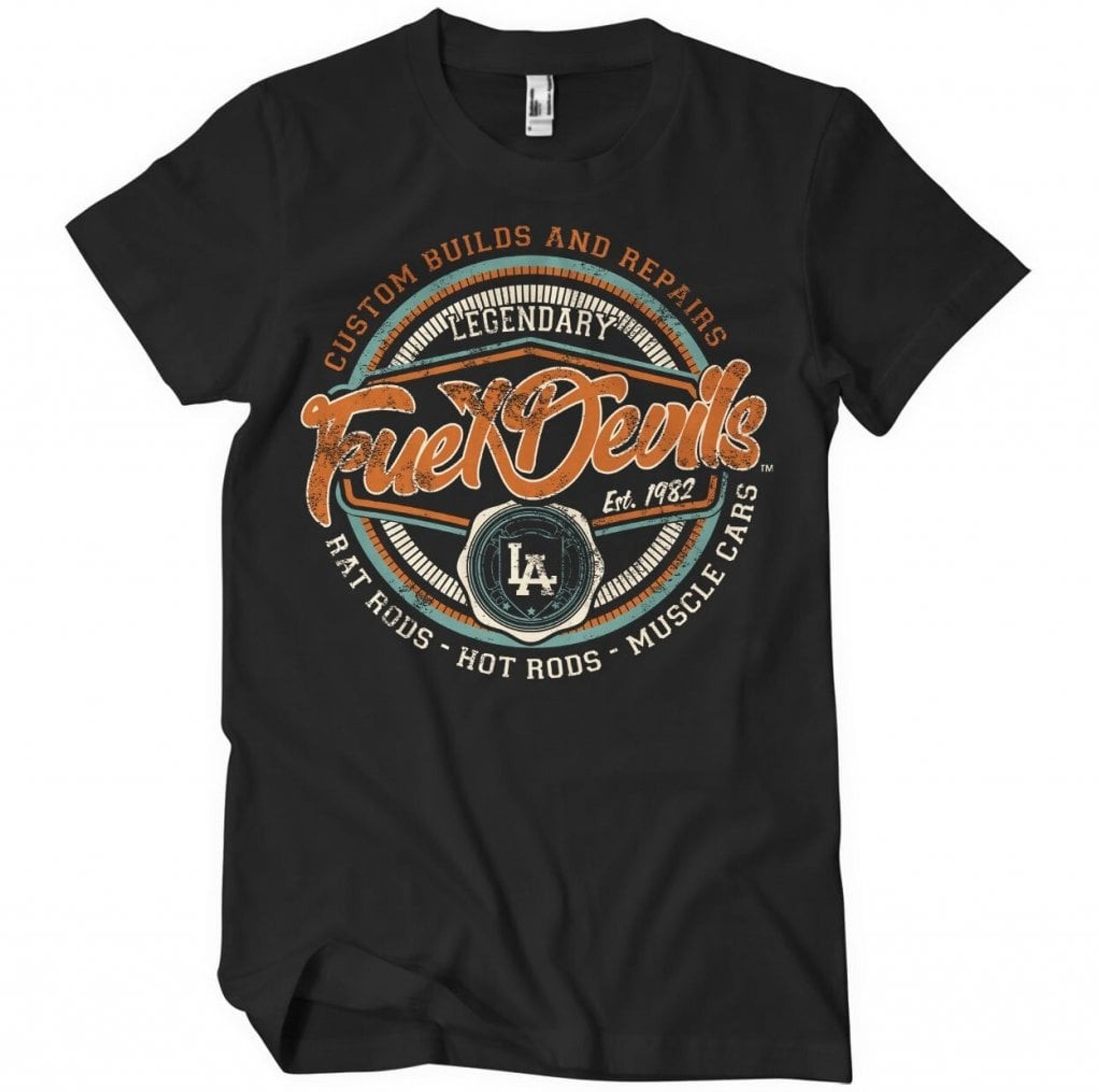 En T-shirt från Fuel Devils med stilrent retro motiv som är som hämtat ur skyltfönstret på en Hot Rod-verkstad.