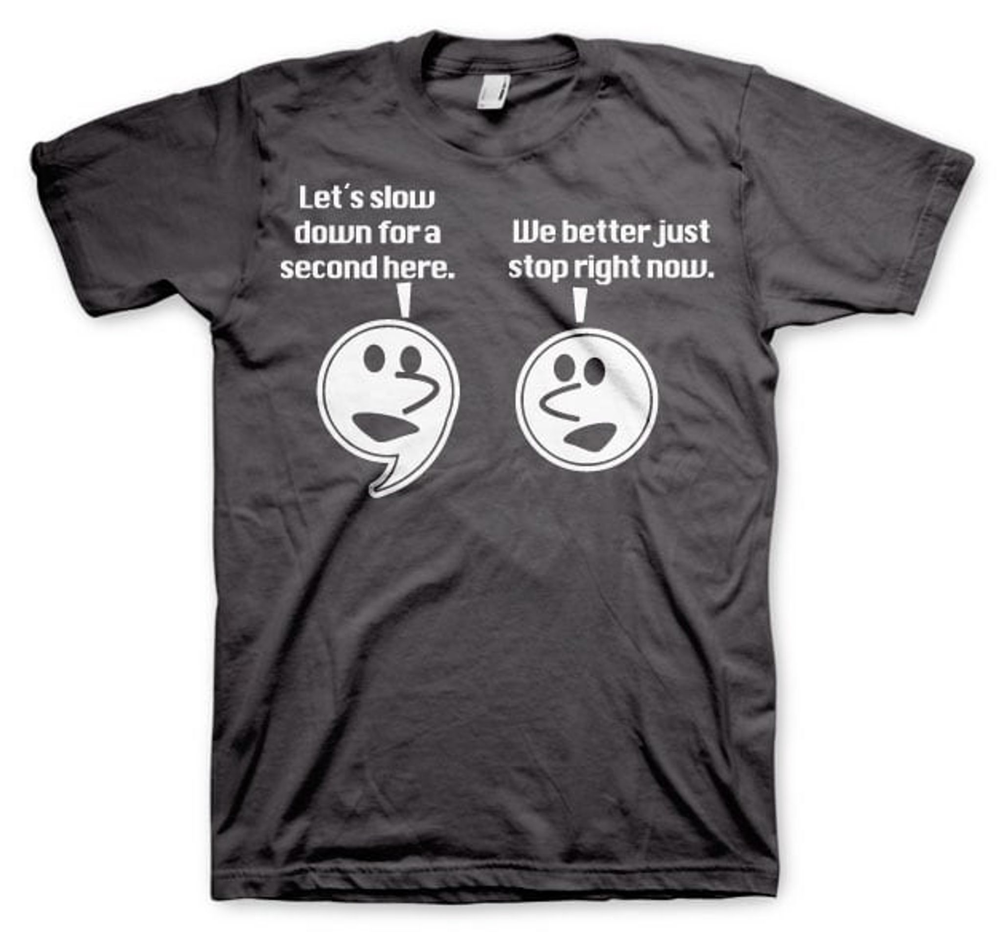 Vad säger man när livet går för fort och man behöver en påminnelse om att andas? Jo, man tar på sig en "Let's Slow Down For A Second" t-shirt, såklart! Denna sköna t-shirt är gjord av 100% bomull, så den känns skön mot huden oavsett om du springer runt som en yr höna eller tar det lugnt i hängmattan.