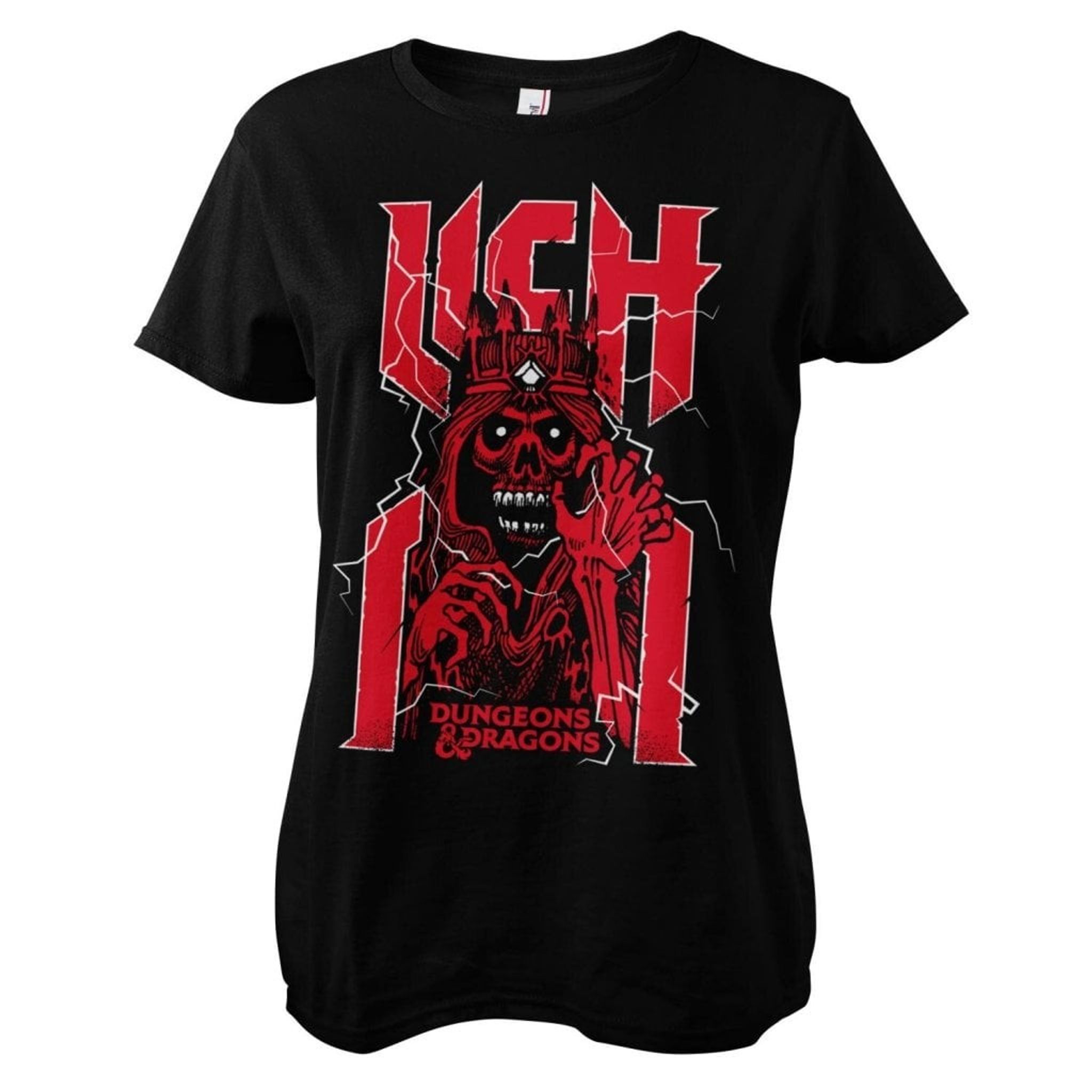 Stig in i skuggornas rike och låt mörkrets makt omfamna dig med vår imponerande "Lich King" T-shirt för damer. Denna tröja är mycket mer än en enkel T-shirt; den är en visuell portal till en värld av mystik och dominans, med den mäktiga och fruktade Lich King från Dungeons & Dragons som det centrala motivet.