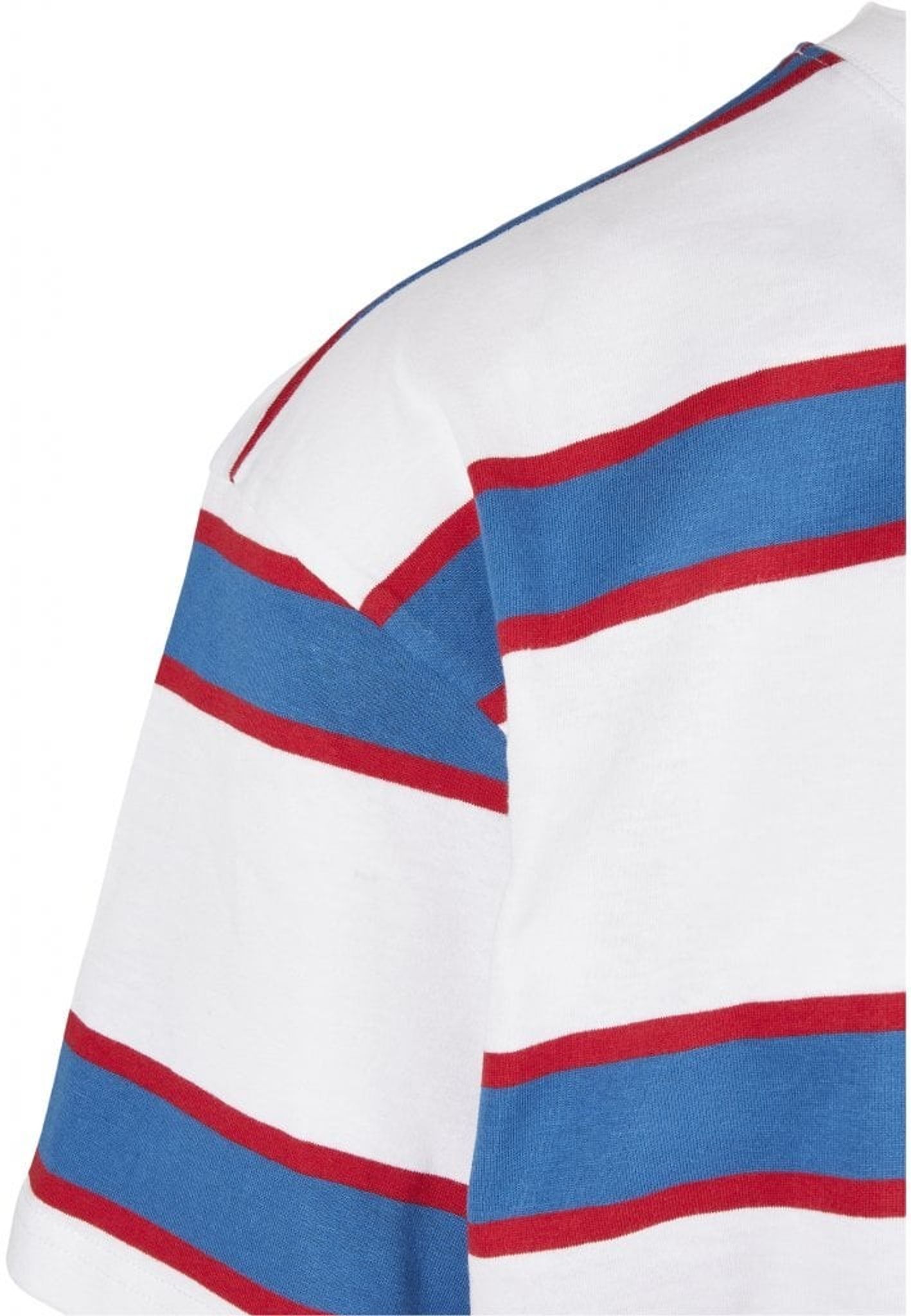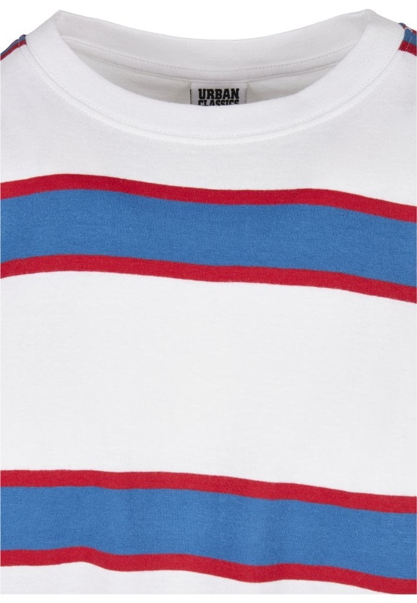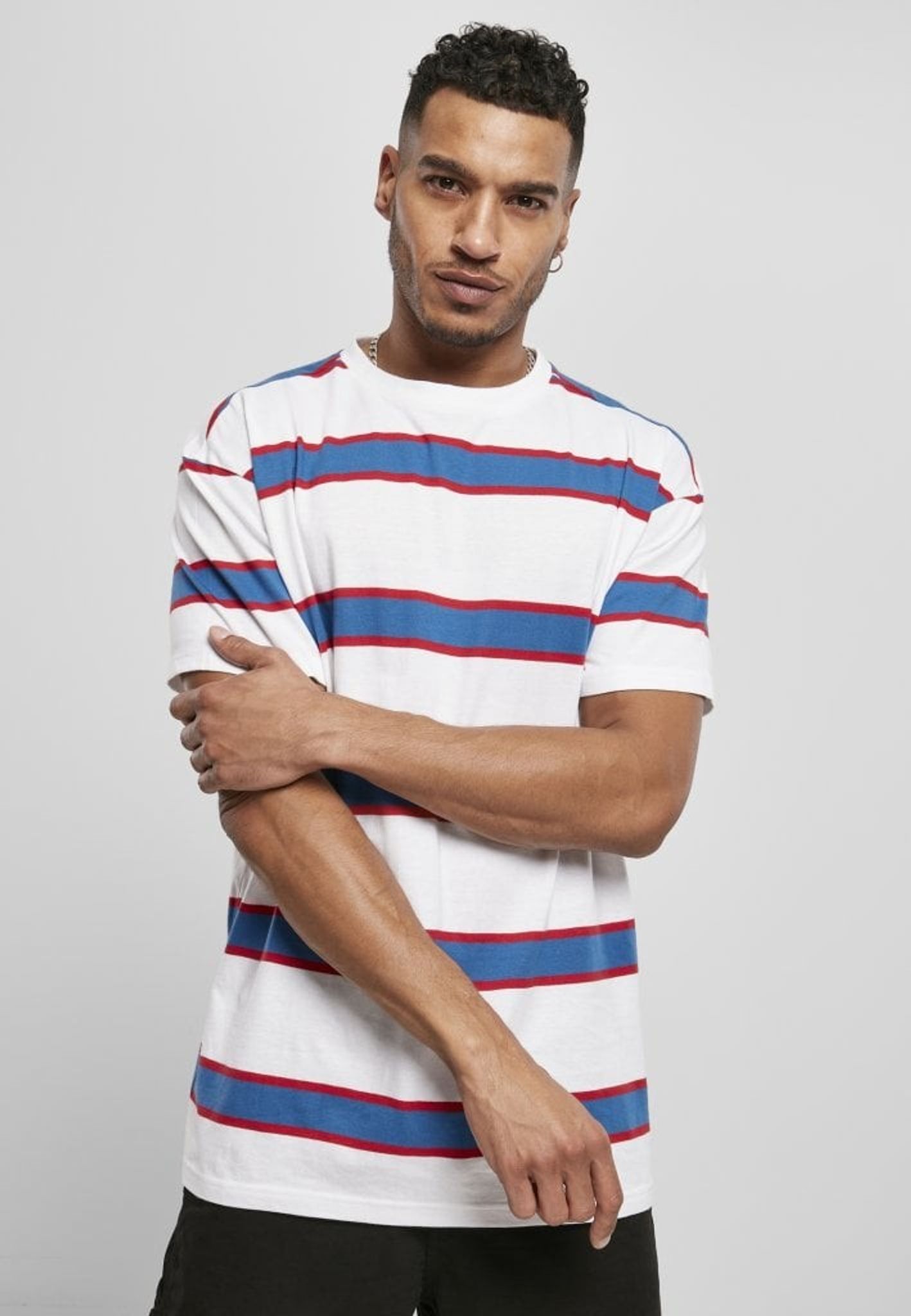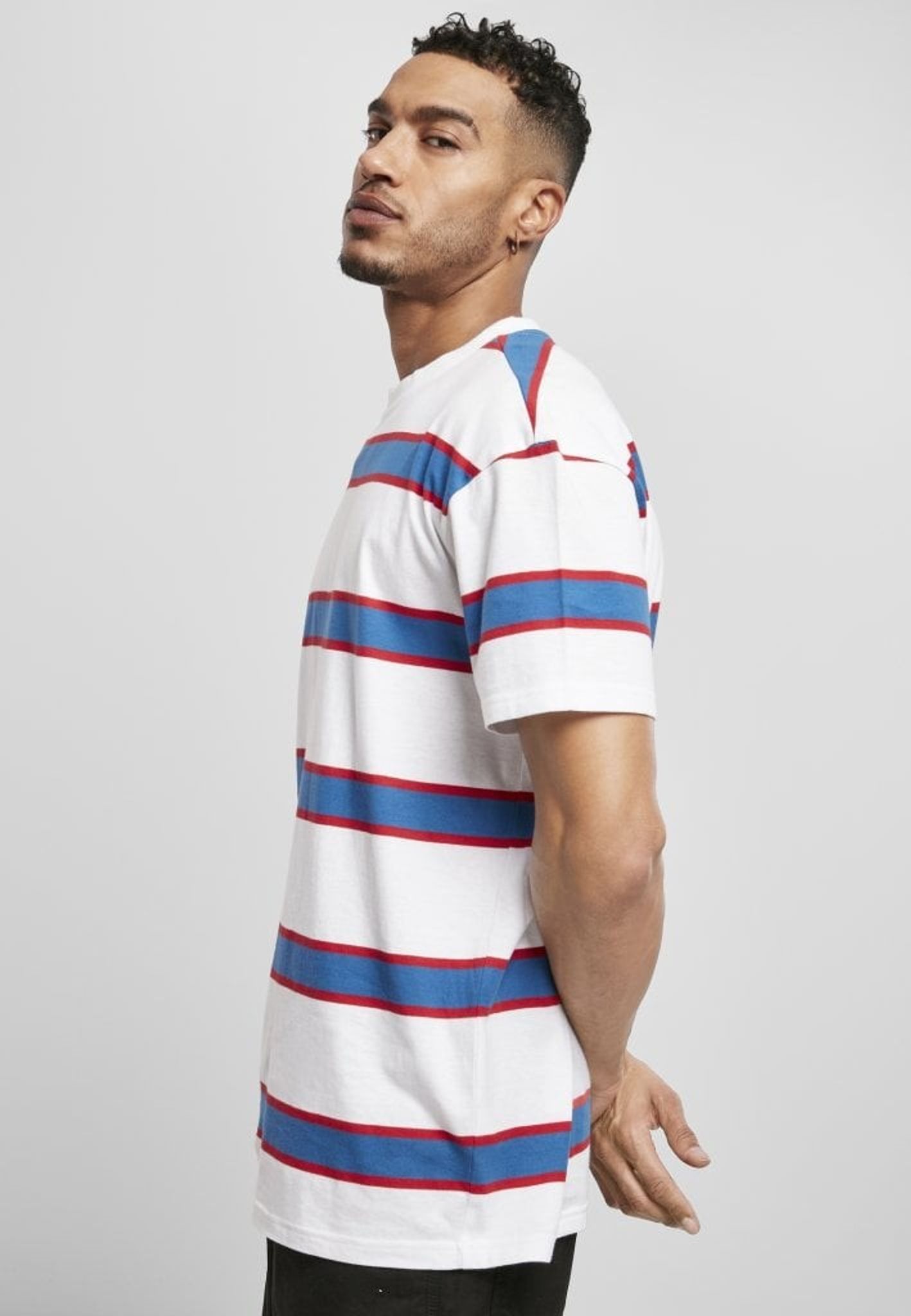 En T-shirt med stora ränder i tre färger. Ränderna ger kontrast mot varandra på T-shirten.