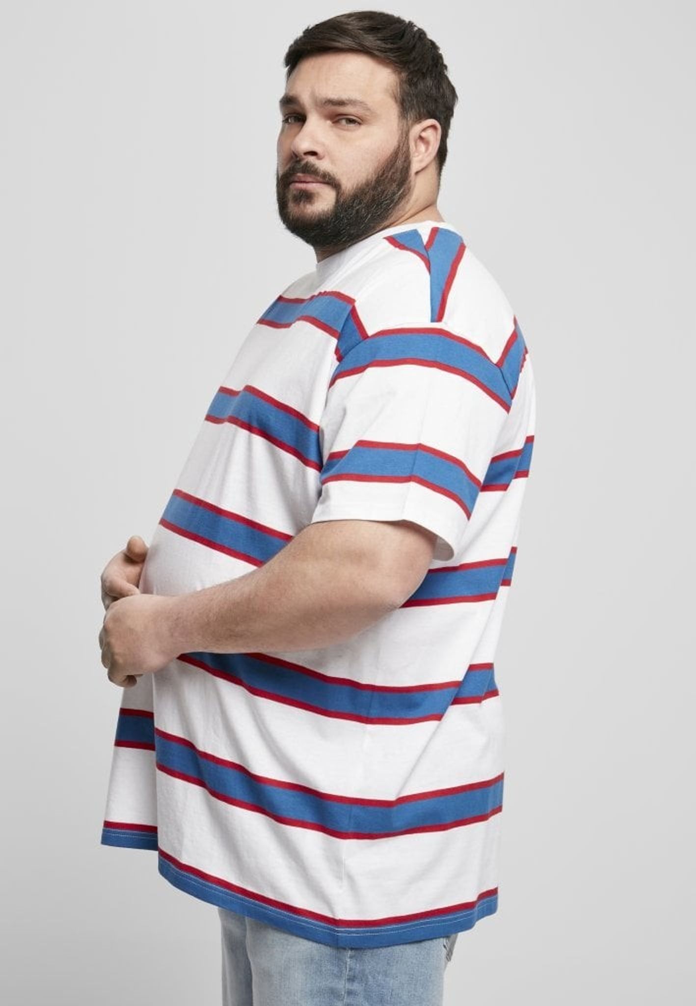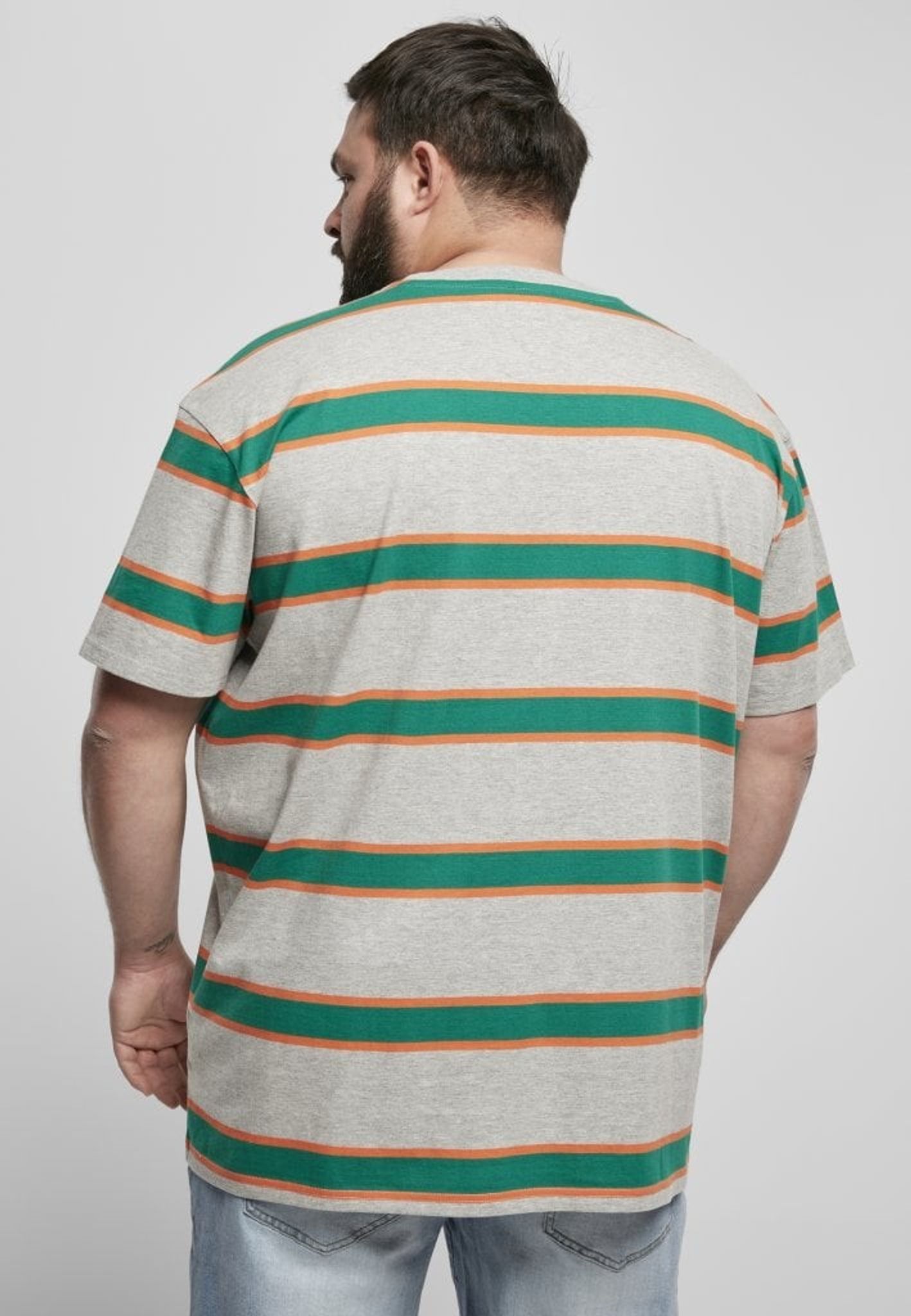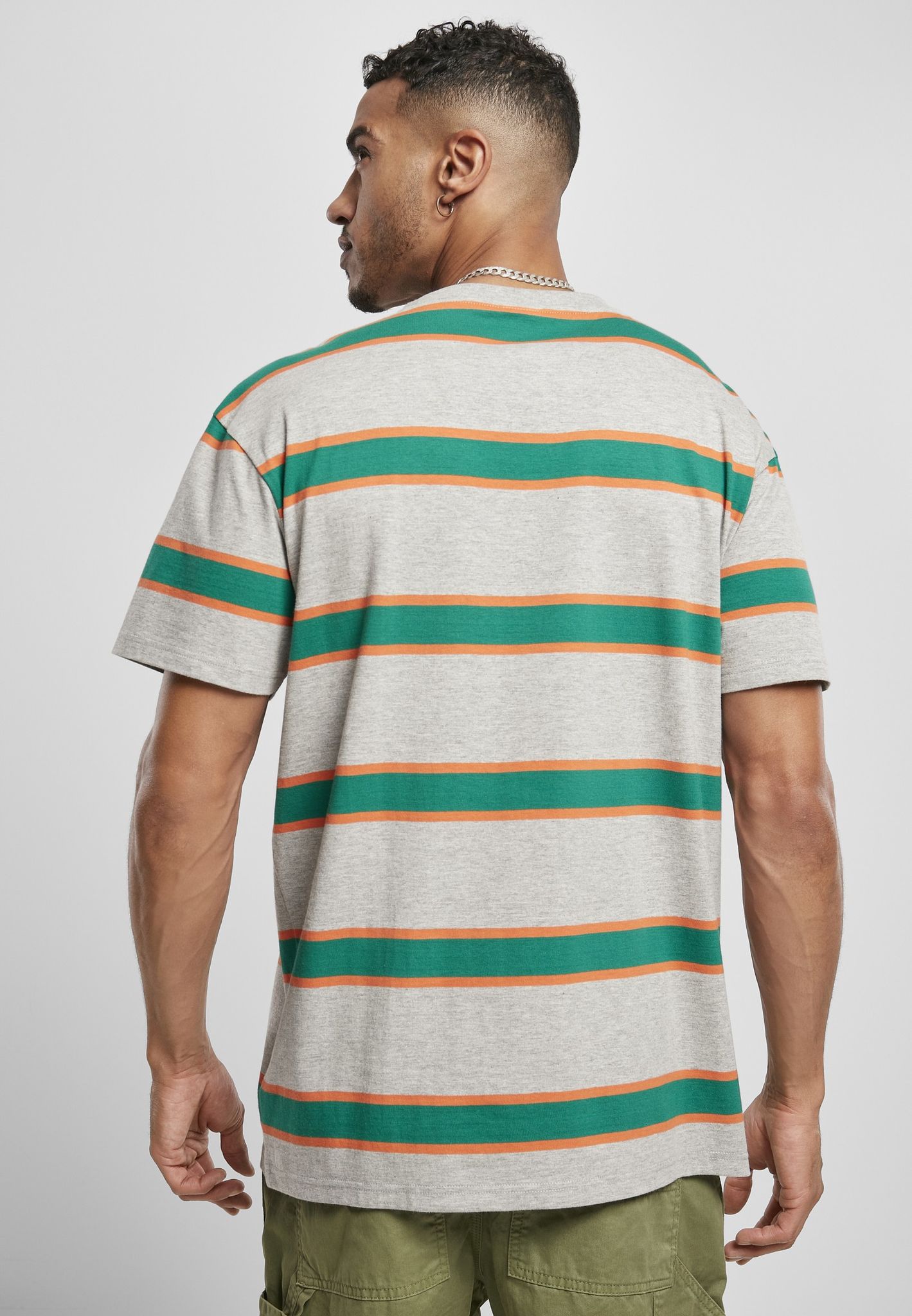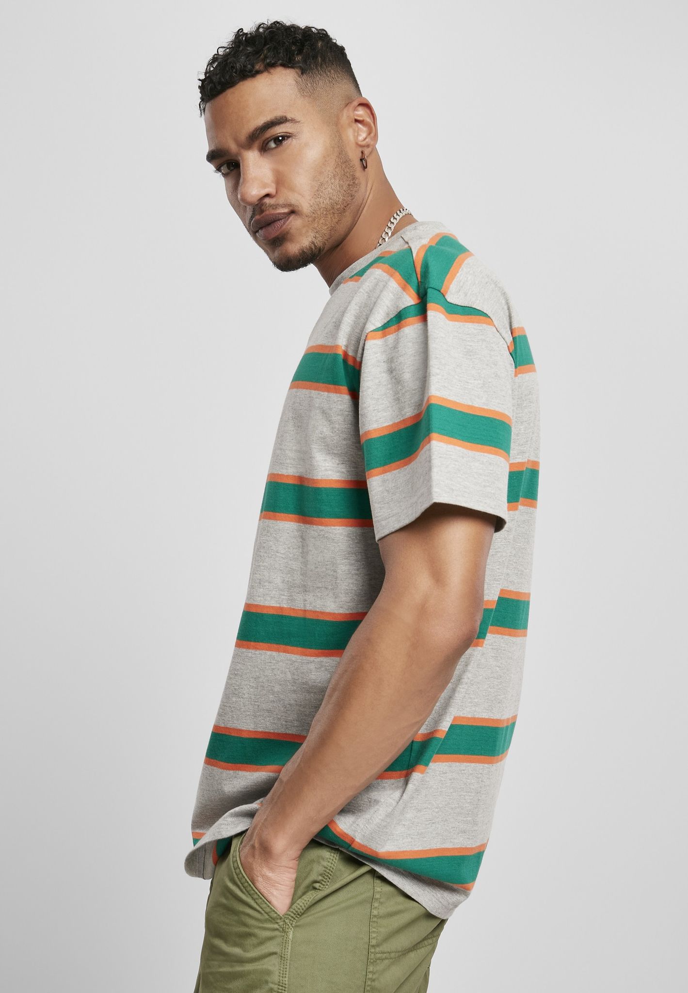 En T-shirt med stora ränder i tre färger. Ränderna ger kontrast mot varandra på T-shirten.
