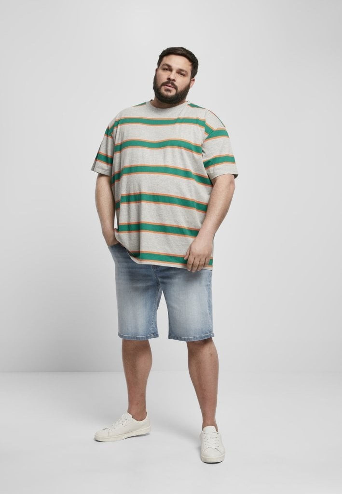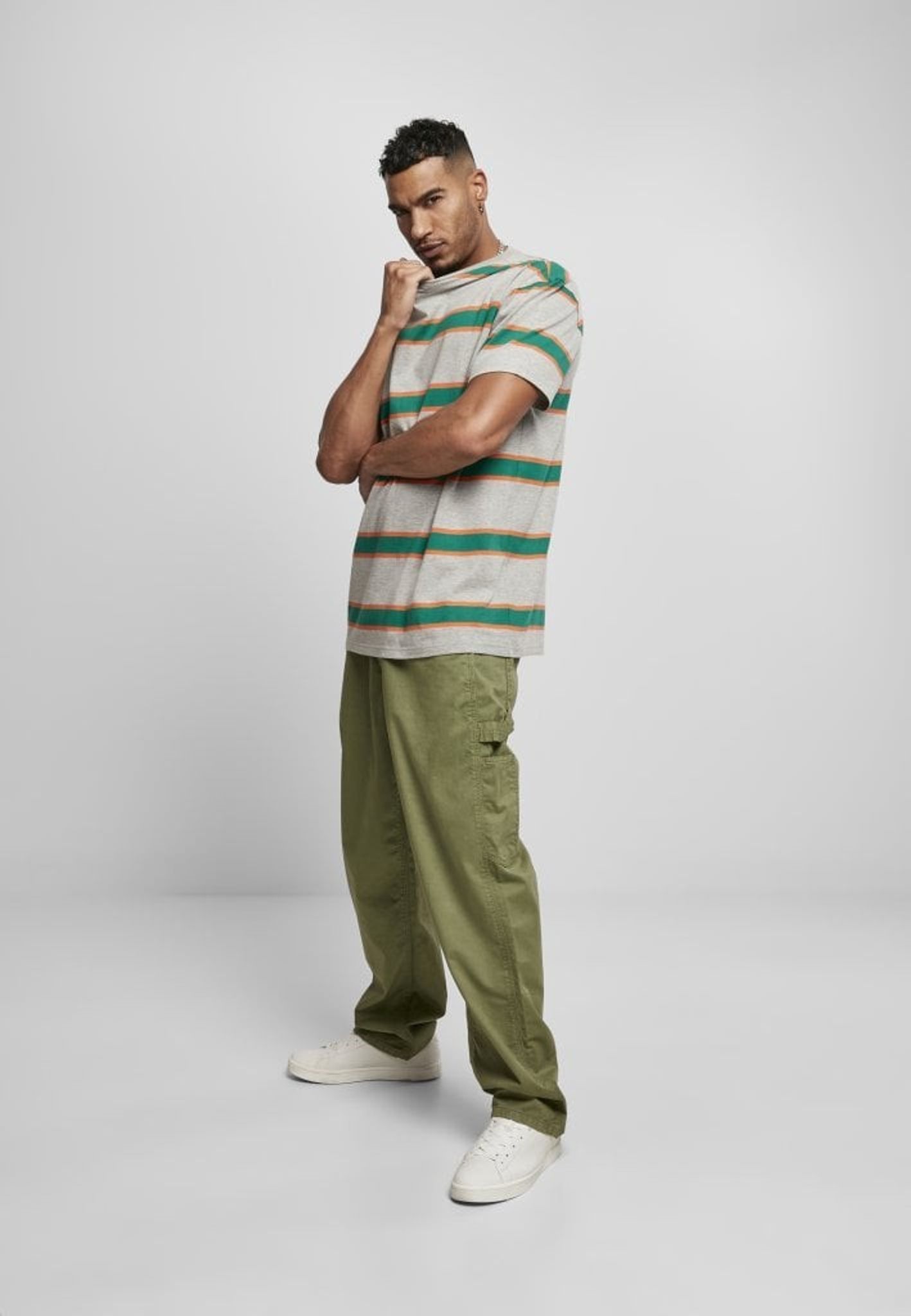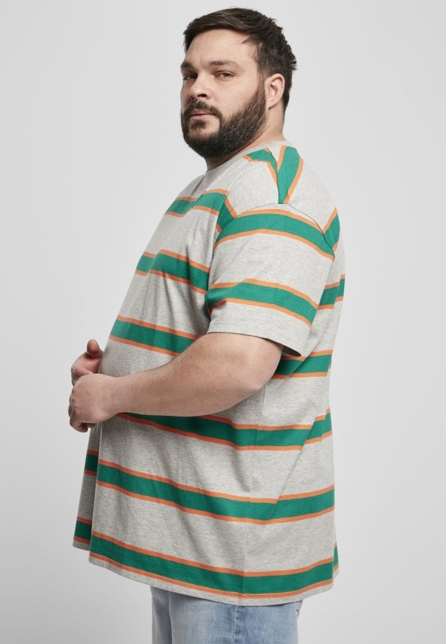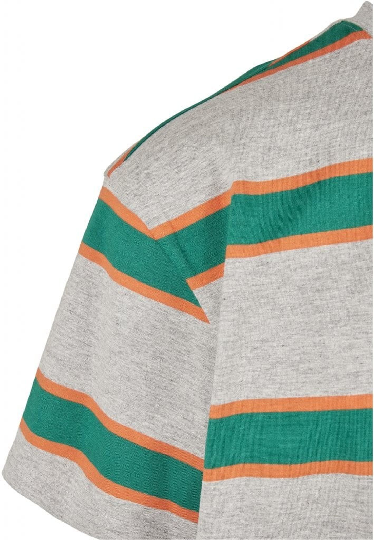 En T-shirt med stora ränder i tre färger. Ränderna ger kontrast mot varandra på T-shirten.