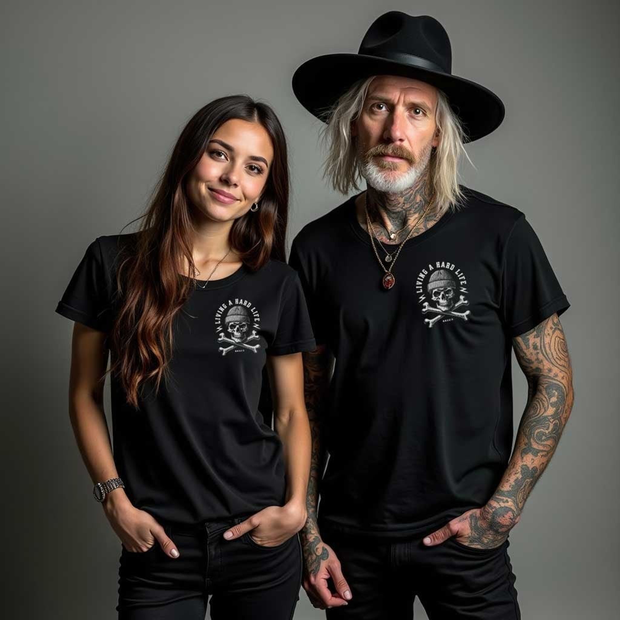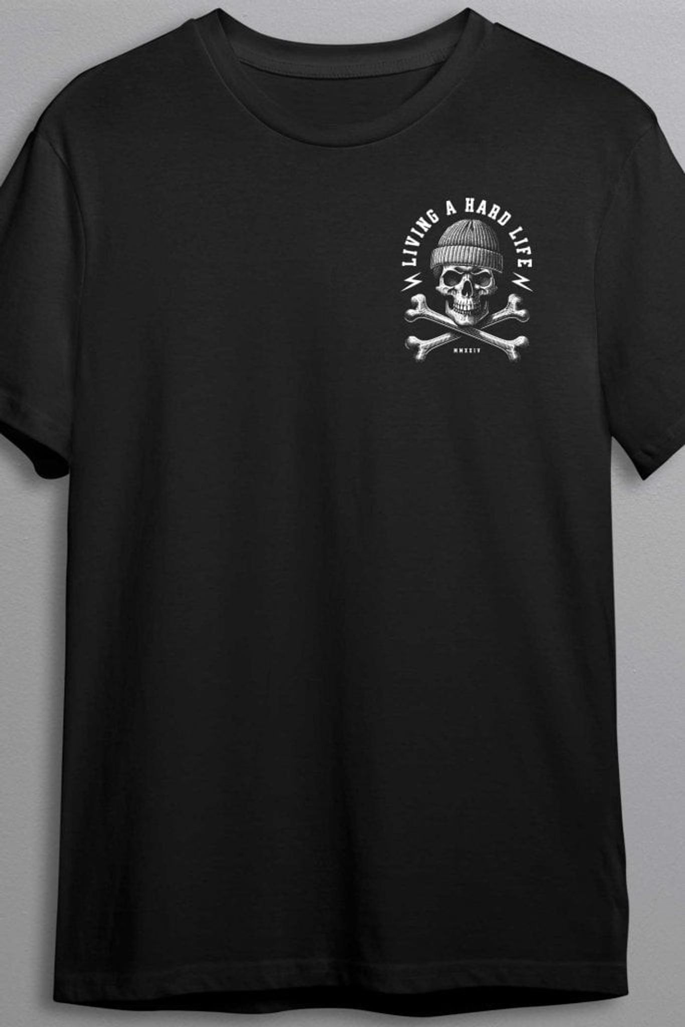 Den här t-shirten bär ett budskap om styrka, uthållighet och att aldrig vika sig för livets utmaningar. "Living a Hard Life" är mer än bara ord – det är en attityd, en livsstil för den som står rakryggad oavsett vad som kommer i vägen. Med en minimalistisk men kraftfull design, där dödskallen med mössa och korslagda ben symboliserar både hårdhet och erfarenhet, blir den här tröjan en statement-piece för den som lever livet på sina egna villkor.