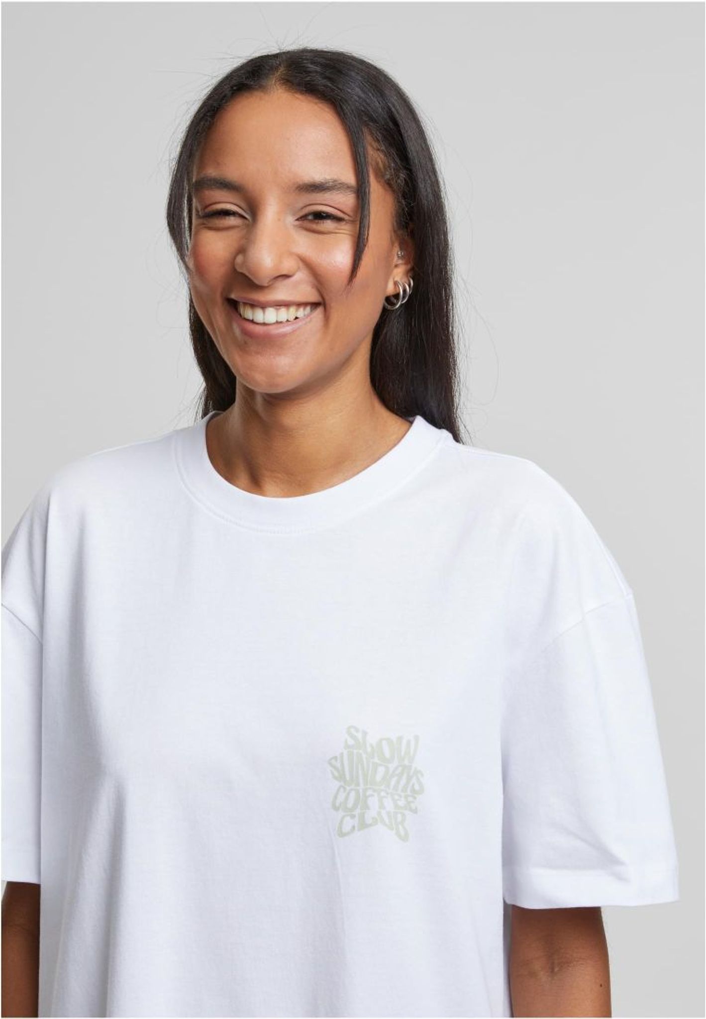Denna t-shirt för kvinnor erbjuder en avslappnad och modern stil som passar perfekt för vardagsbruk. Den lösa passformen och de sänkta axlarna ger en bekväm silhuett som enkelt kan kombineras med olika kläder.