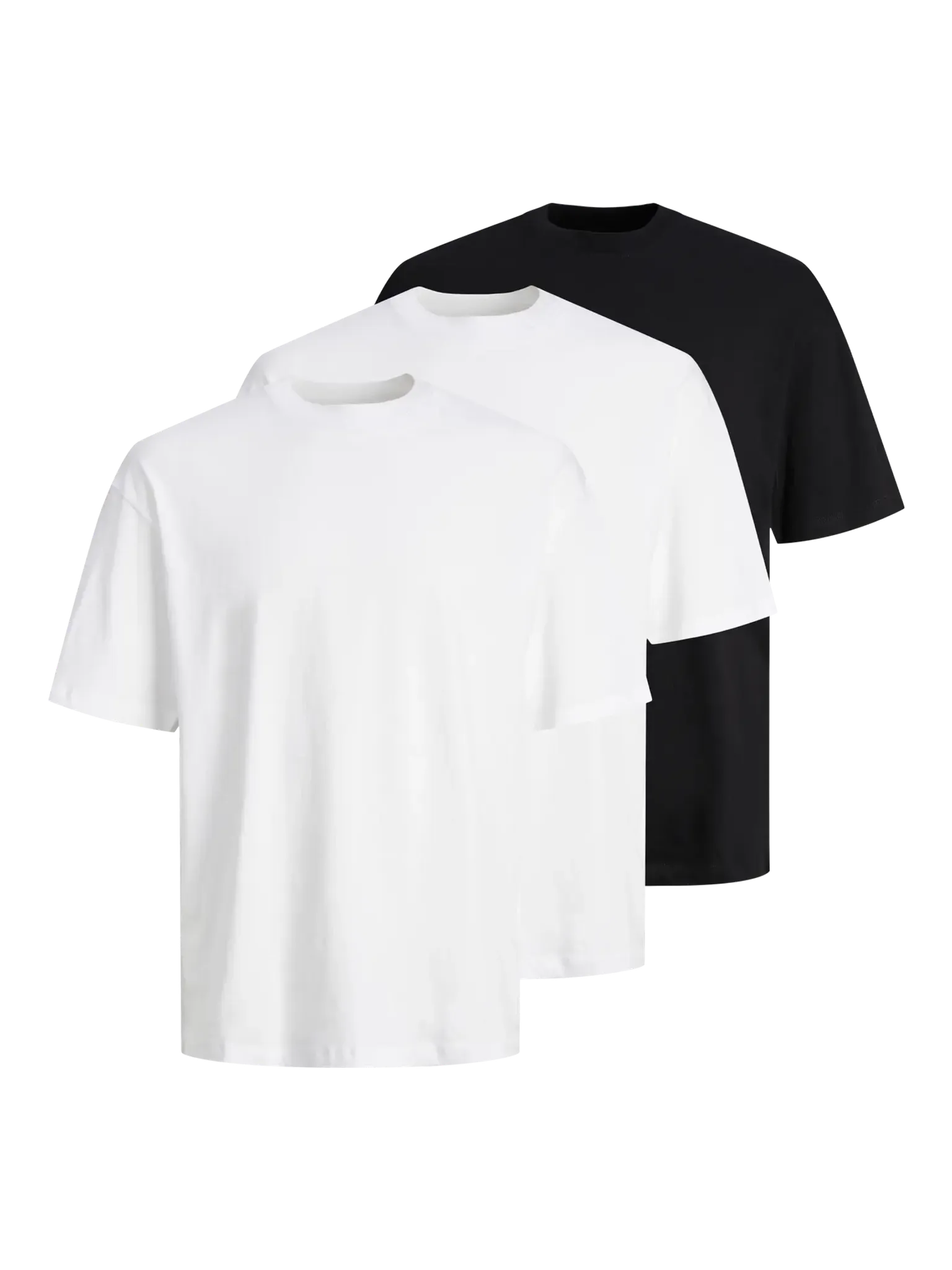 Förpackningen innehåller två vita T-shirts och en svart, vilket gör det enkelt att variera sin stil.