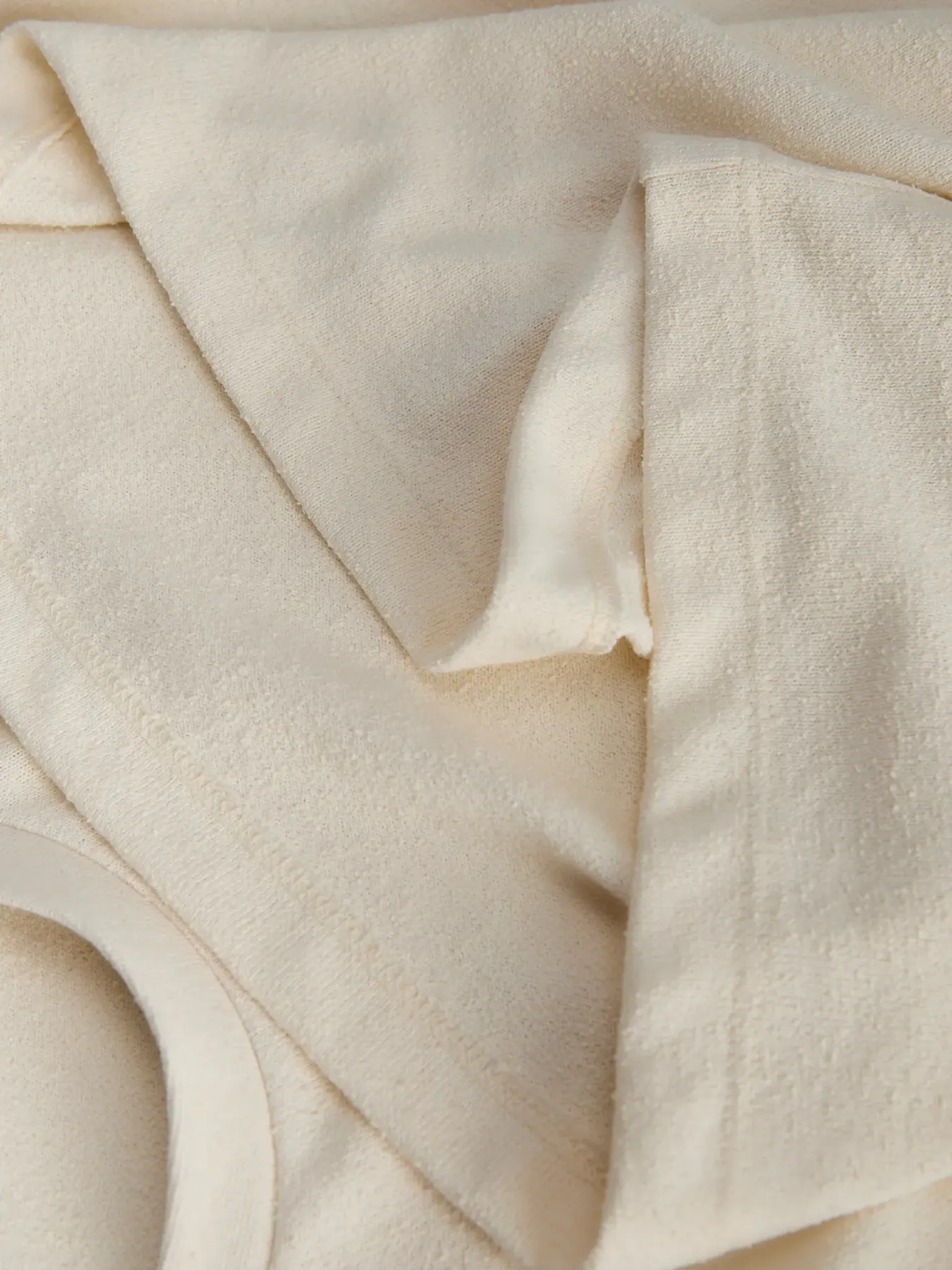 Materialet består av 56 % bomull och 44 % polyester, vilket gör plagget både slitstarkt och lättskött. Tyget känns lent mot huden, och tack vare den cirkulärstickade tillverkningen får du en sömlös upplevelse på sidorna – perfekt för dig som värdesätter komfort i varje detalj.