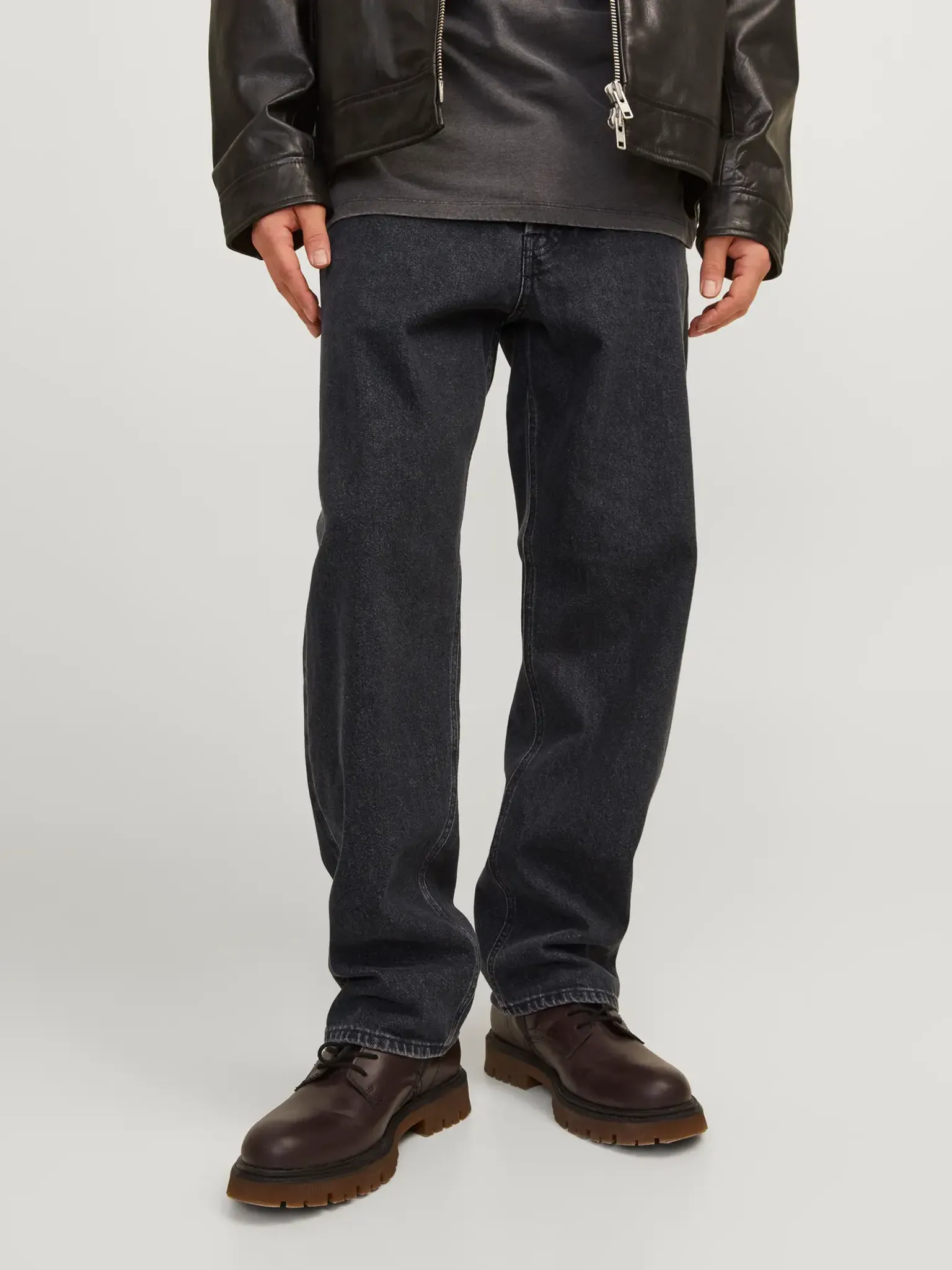 Den höga midjan ger en bekväm passform, medan det lösa snittet i knän och benöppningar skapar en avslappnad, rak silhuett. Den stonewashade finishen ger ett slitet och inarbetat utseende som är både modernt och tidlöst.