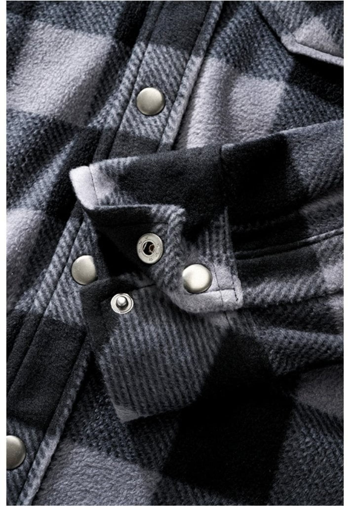 Tyget är rutmönstrat i grått och svart, likt rutmönstret från den klassiska flanellskjortan.