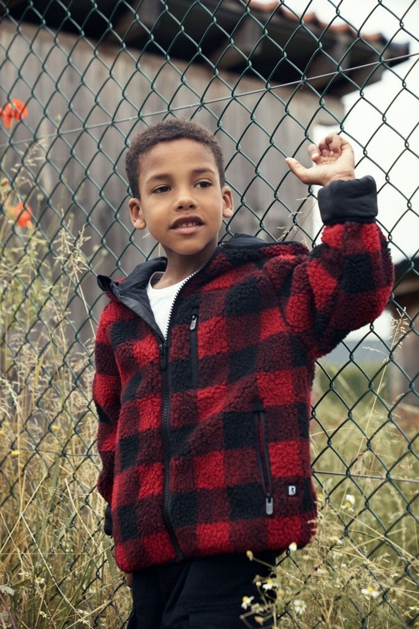 En riktigt mysig och skön jacka med utsida i varm teddyfleece. Teddyfleecen är mönstrad i röda och svarta rutor. Detta mysiga tidslösa plagg är försedd med elastiska muddar i ärmslut och midja, för att hindra vind från att leta sig in under jackan.