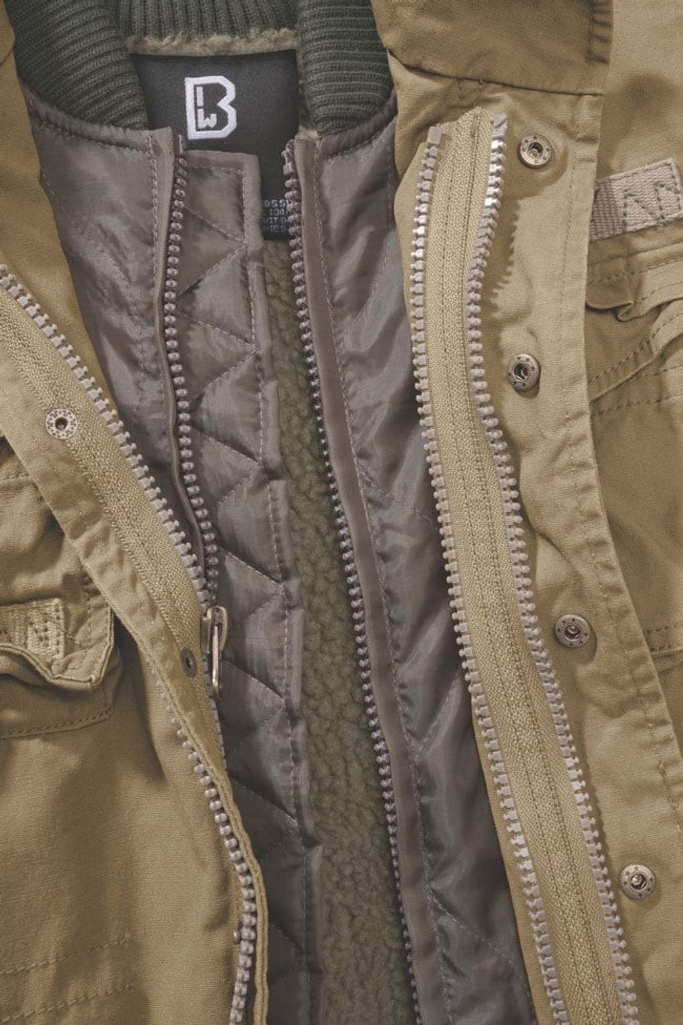 Ytterjackan är tillverkad i ett robust och slitstarkt bomullstyg. Innerjackan är på insidan försedd med ett vamt och riktigt skönt teddyfoder. Dessa två jackor går att koppla loss från varandra med dragkedja och fodret kan då plockas ur. Detta gör dels att jackans säsong förlängs avsevärt men också att man kan tvätta dessa två jackor separat.