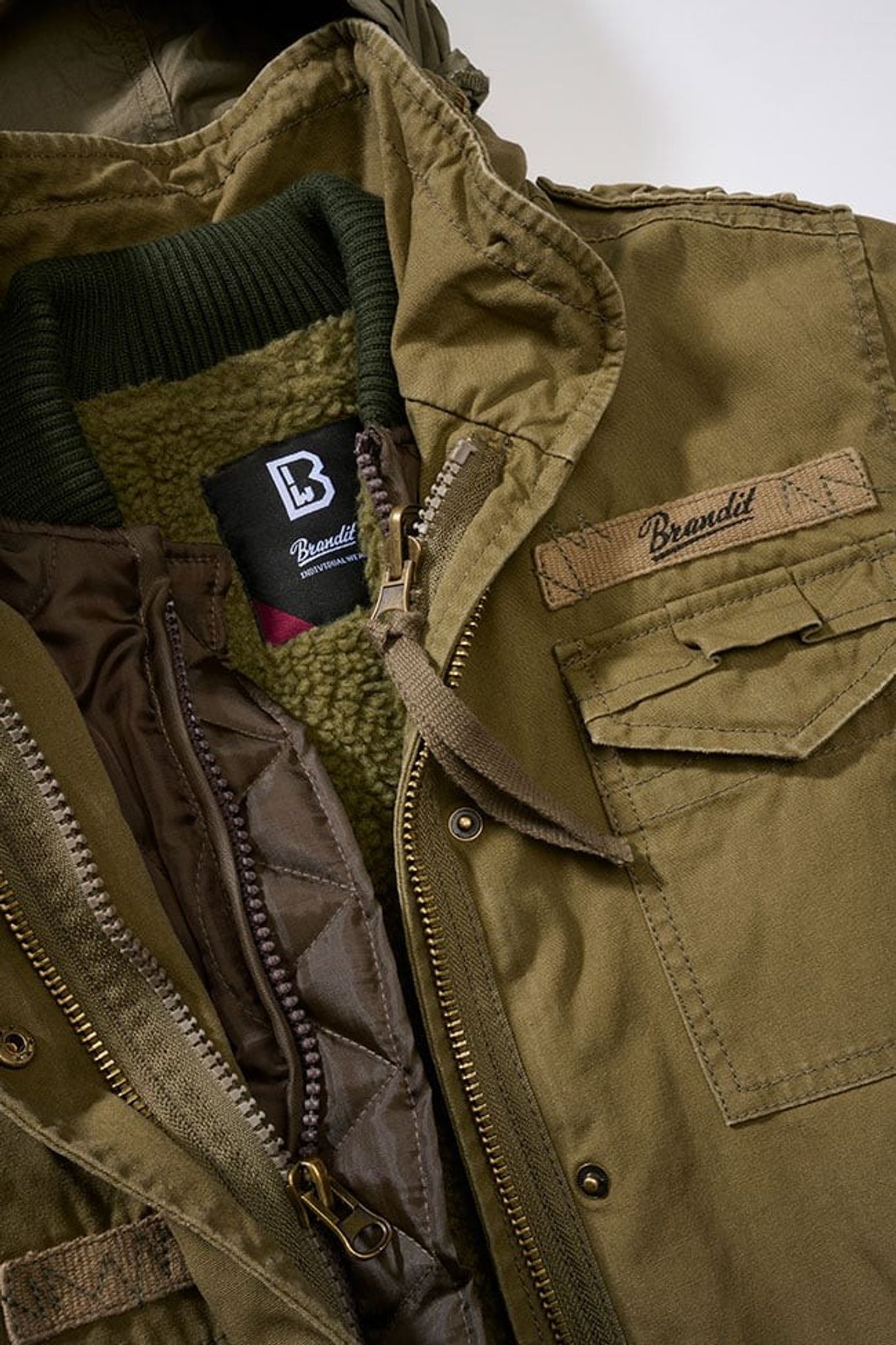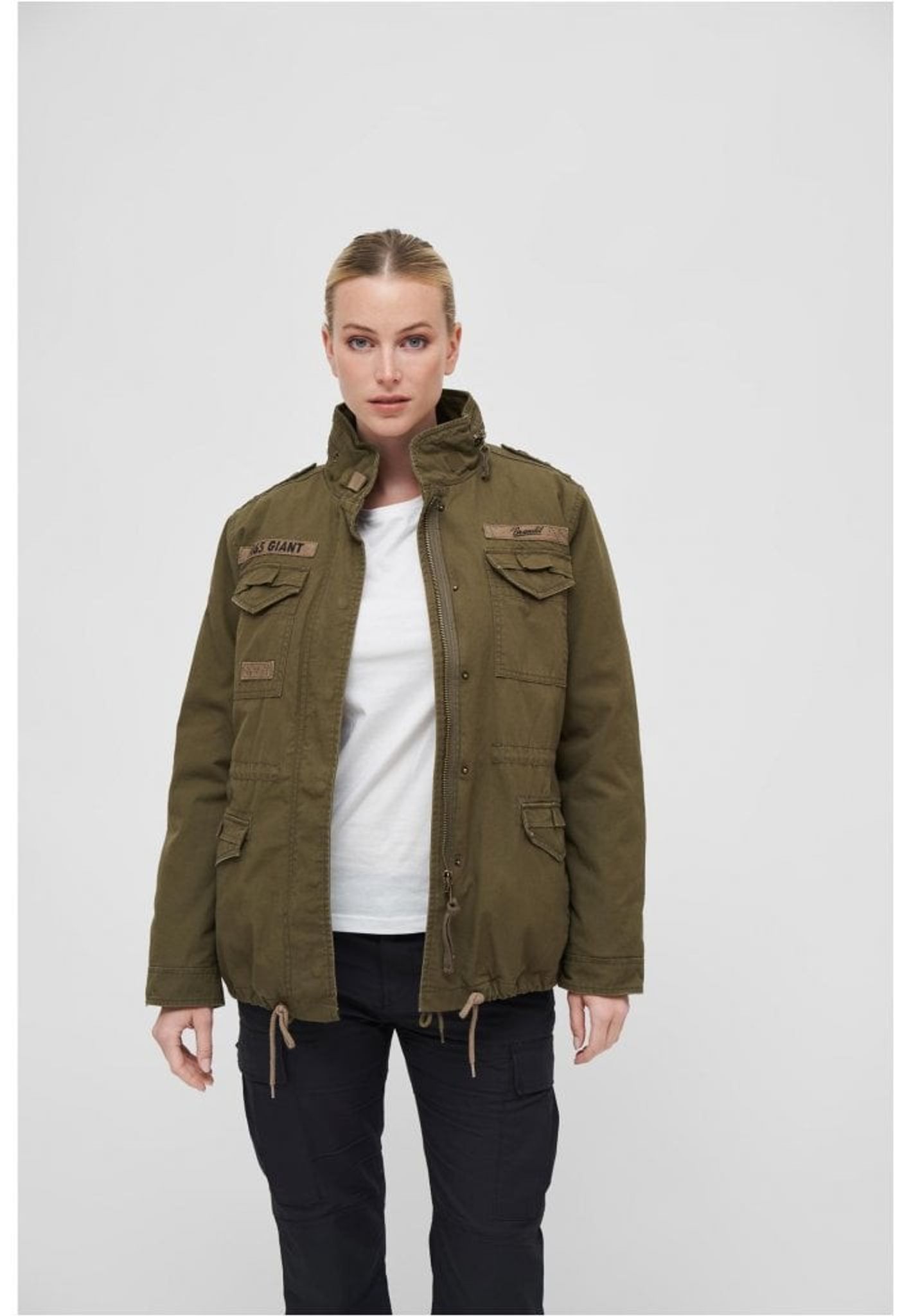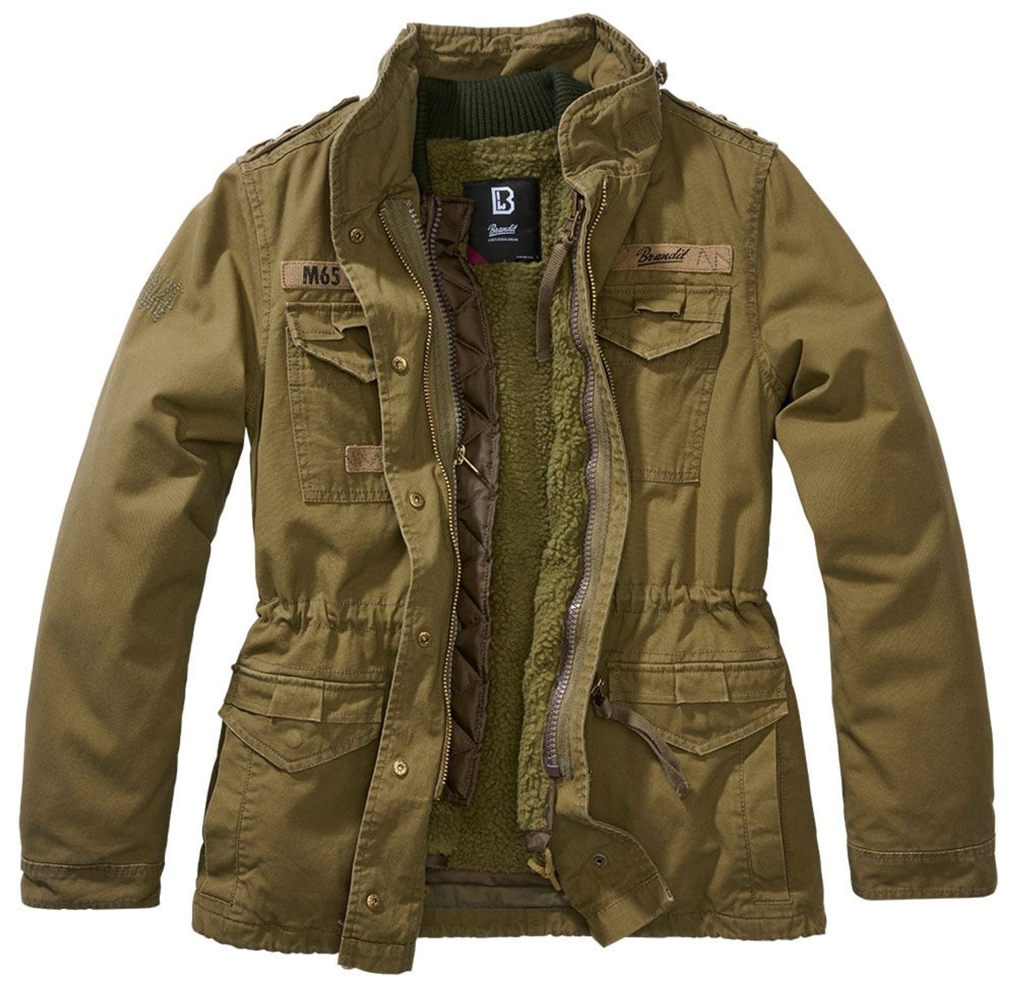 En olivgrön version av den klassiska M65-jackan. Brandits Giant jacka är verkligen en version av den amerikanska M65-jackan med extra allt. Skalet är tillvekrat i ett robust och slitstarkt bomullstyg med vintage look. På brösten finns fastsydda tygpatchar med M65-Giant och Brandits logotyp.