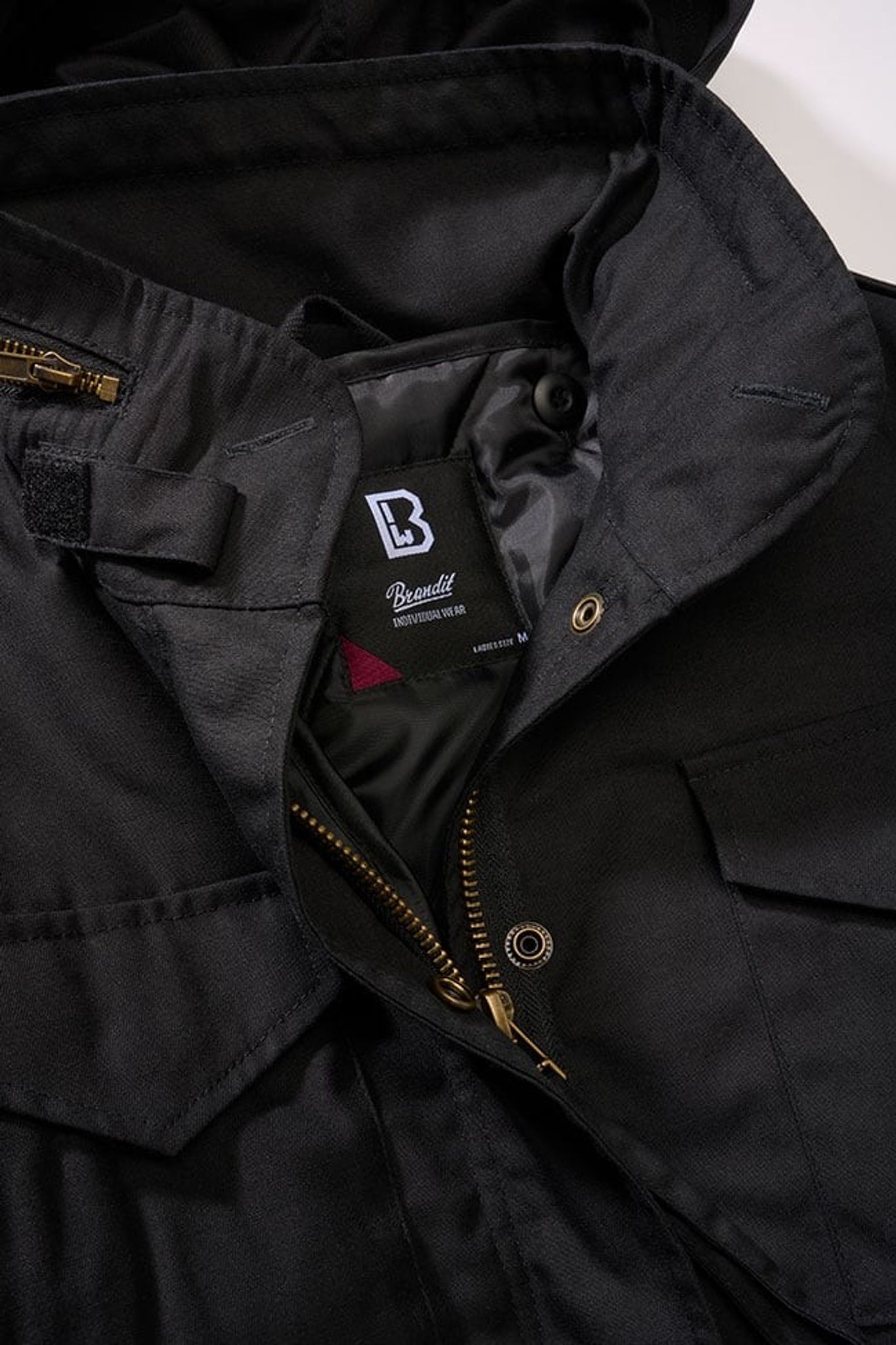 Jackan har ett vind- och vattenresistent skal. Fodret är ett quiltfoder med varm stoppning som dessutom går att plocka ur skalet. På jackan finns två stora bröstfickor samt två stora sidofickor. M65 jackan har en hög krage med dold huva.