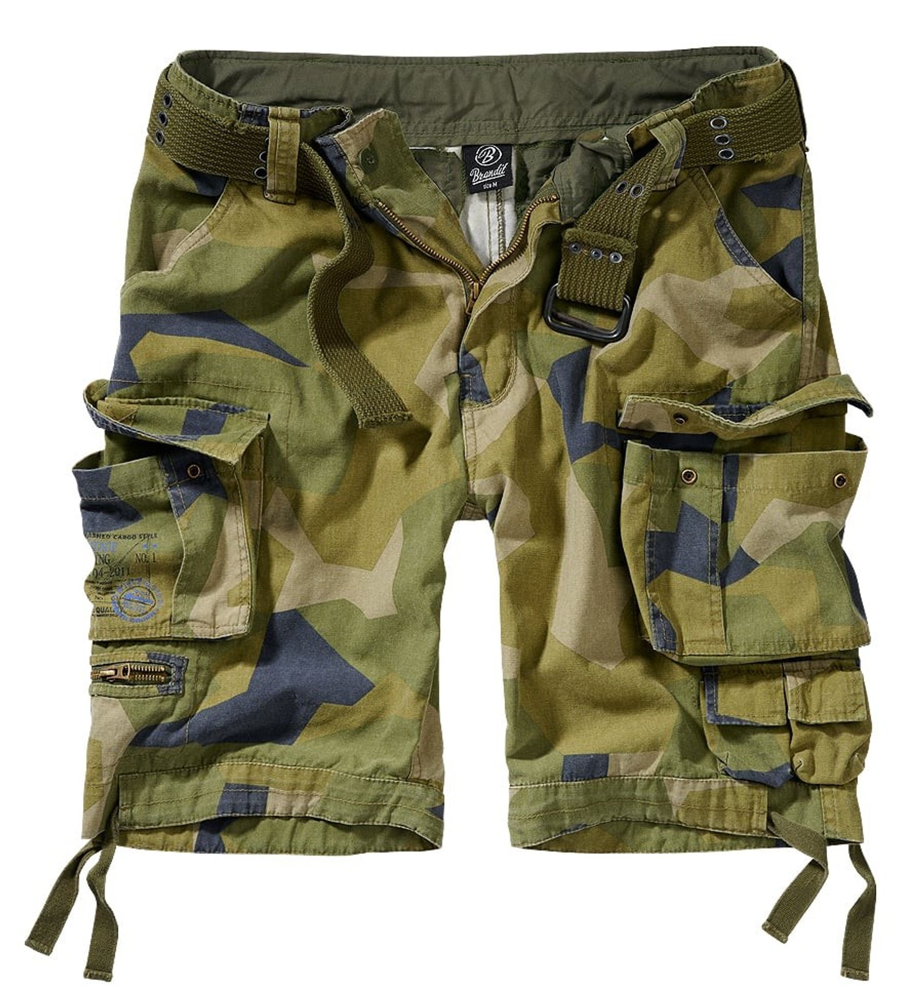 Ett par fräcka shorts i modern stil på utformningen men med det svenska M90 kamouflagen i mönstret på tyget.