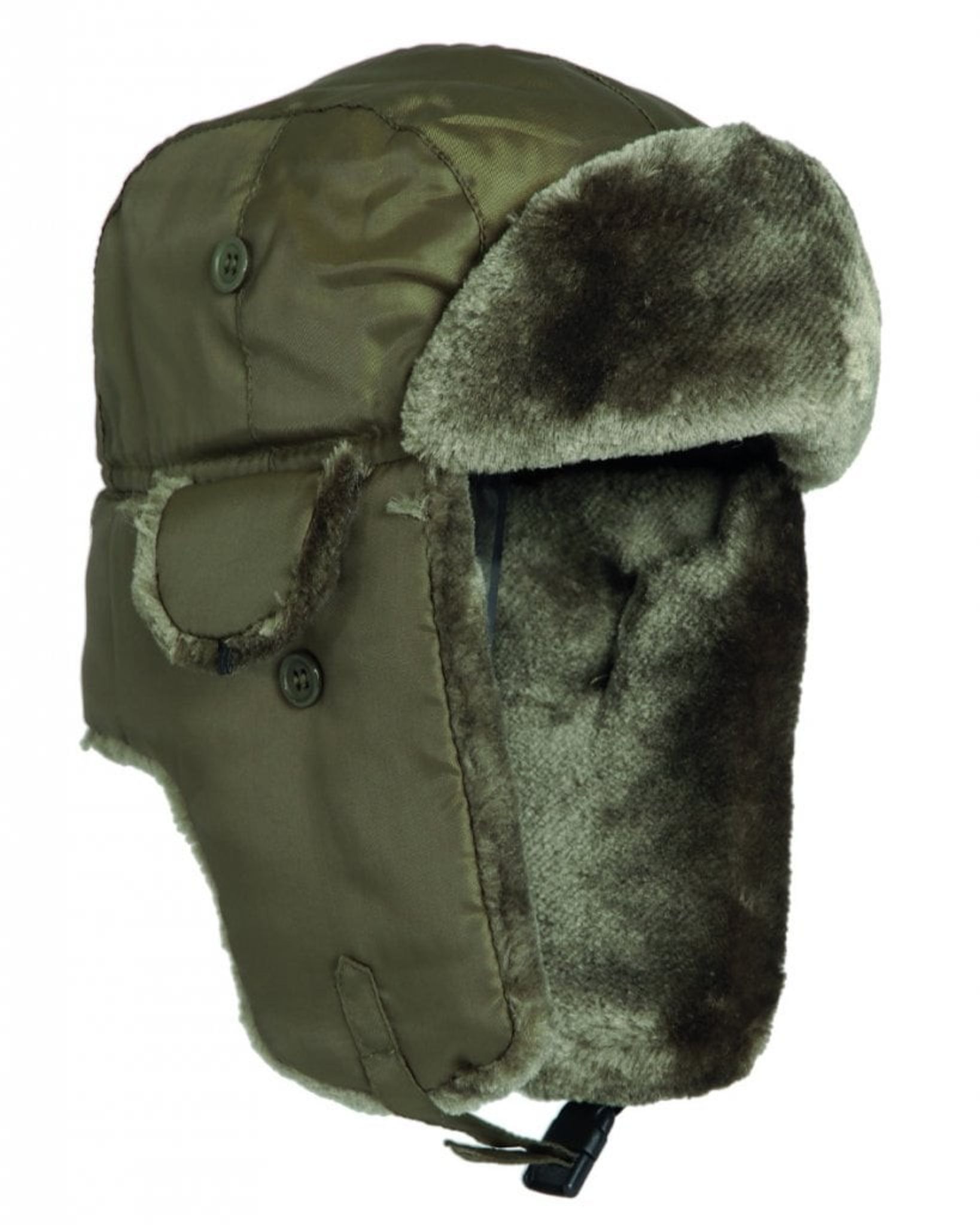 Håll dig varm och stilig med MA1 Pälsmössa i olivfärg.