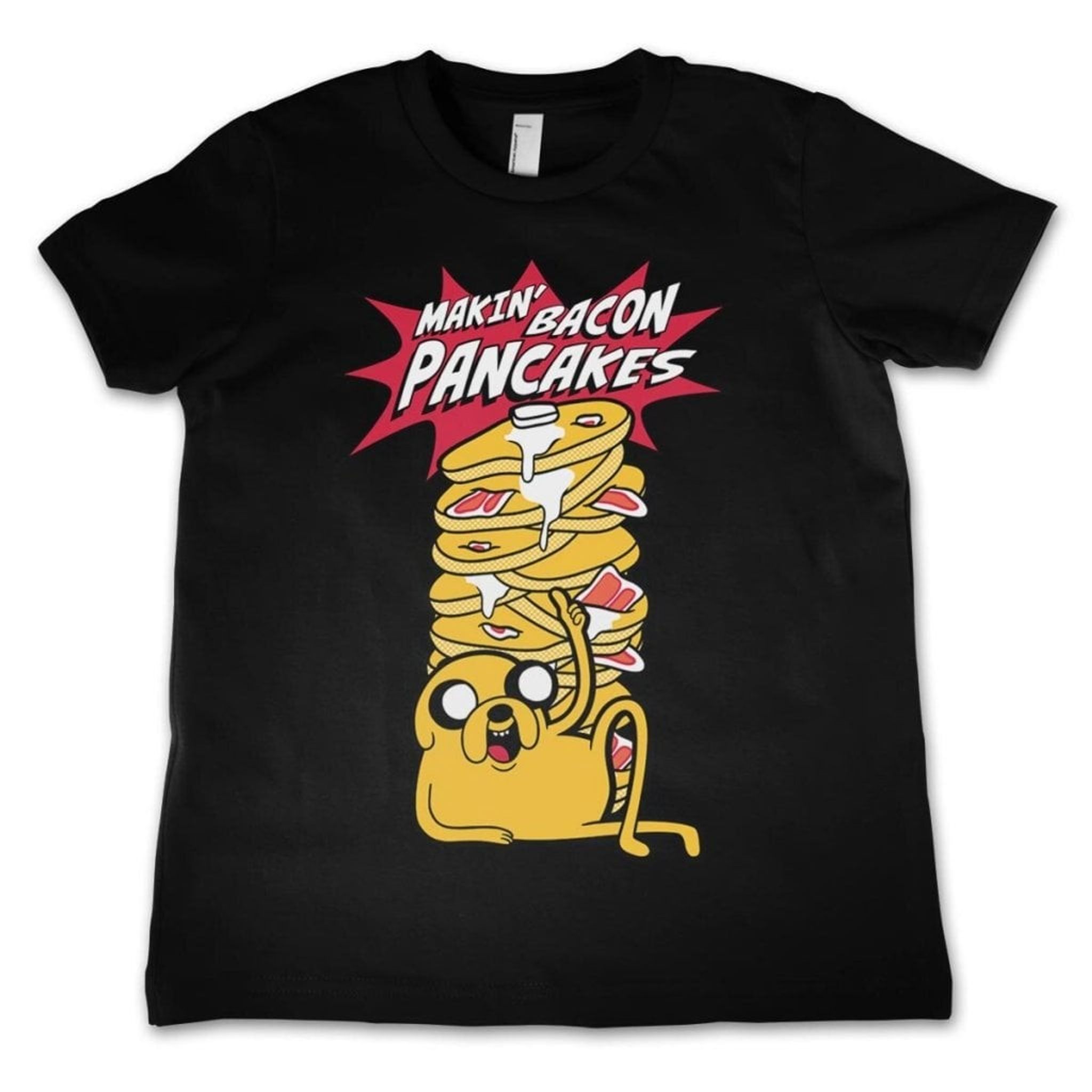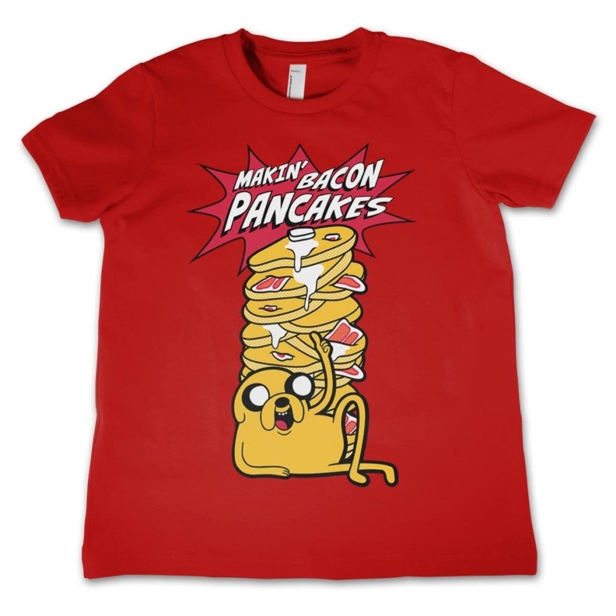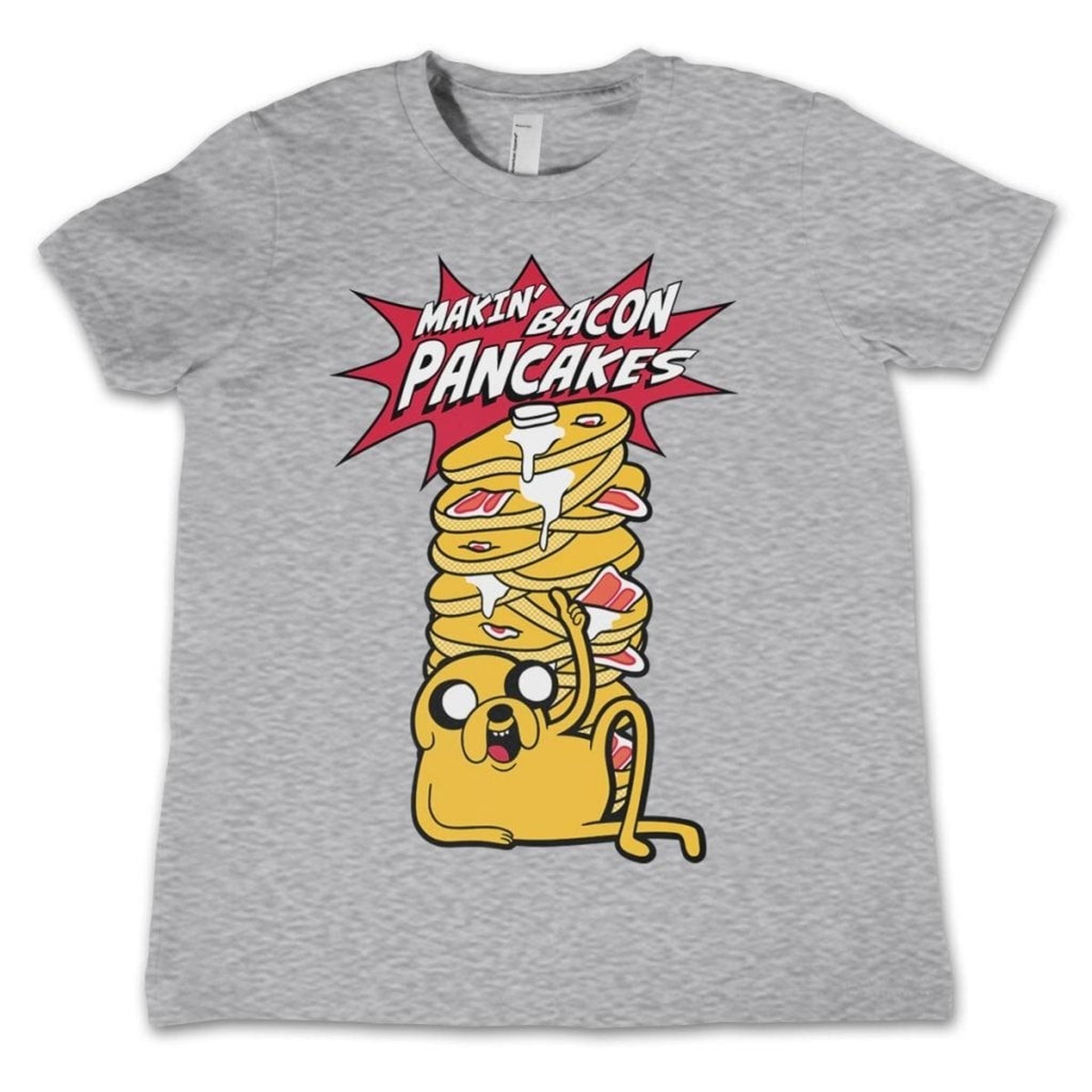 Makin' Bacon Pancakes Kids T-Shirt med Jake the Dog från Adventure Time. Denna produktsida erbjuder ett urval av olika färger inklusive melerad ljusgrå, mörkgrå, brun, grön, svart, orange, röd och gul.