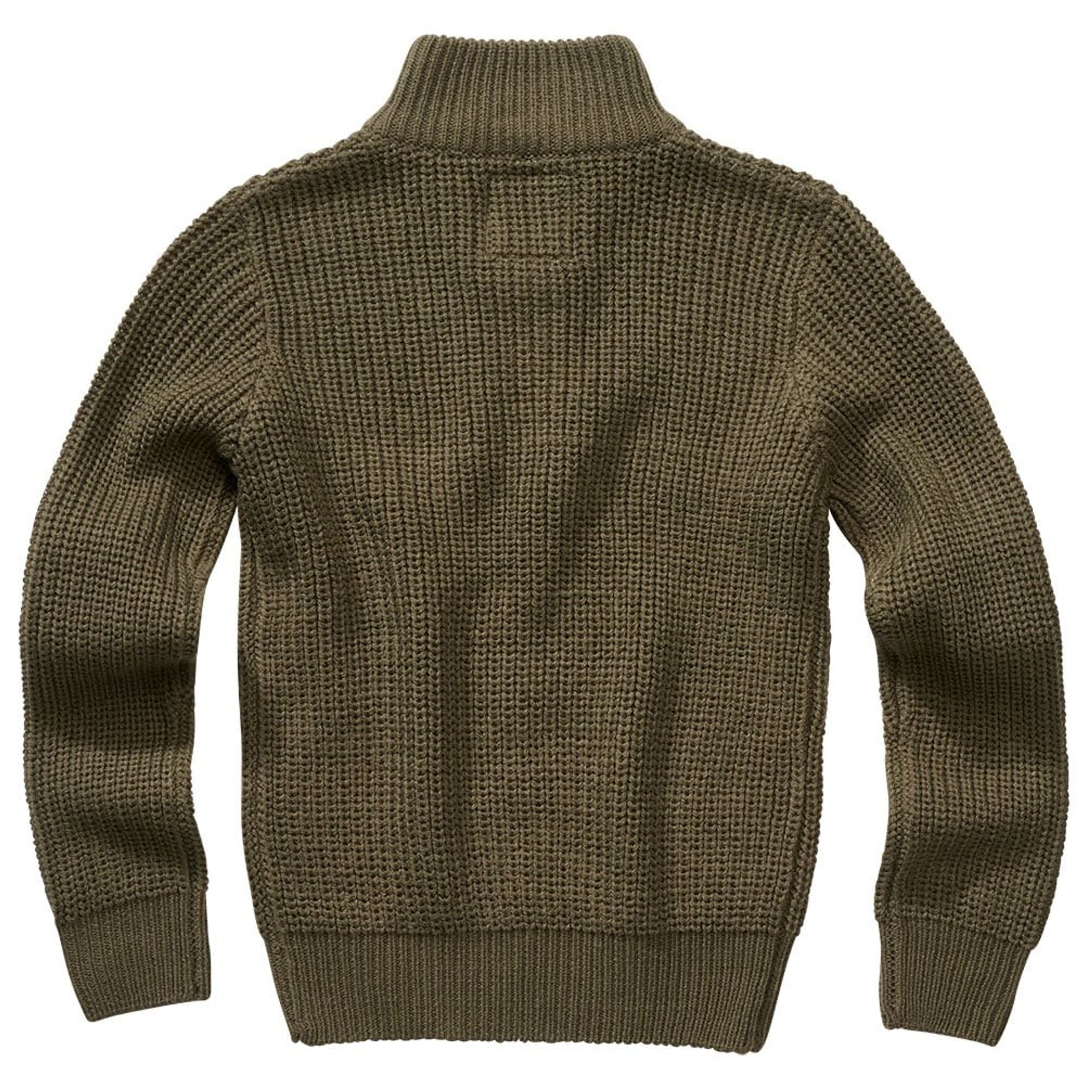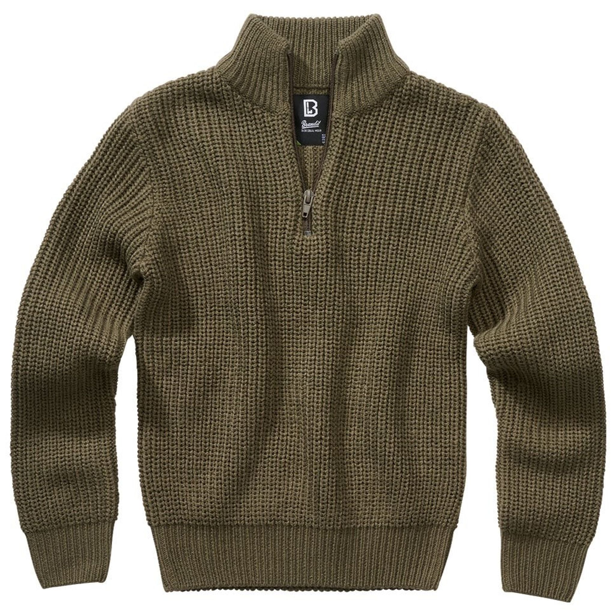En härligt stickad tröja i oliv som garanterat håller barnet varmt. Perfekt under en vindskyddande jacka då tröjan i sig inte skyddar så bra mot vind. Men den håller en behaglig värme.