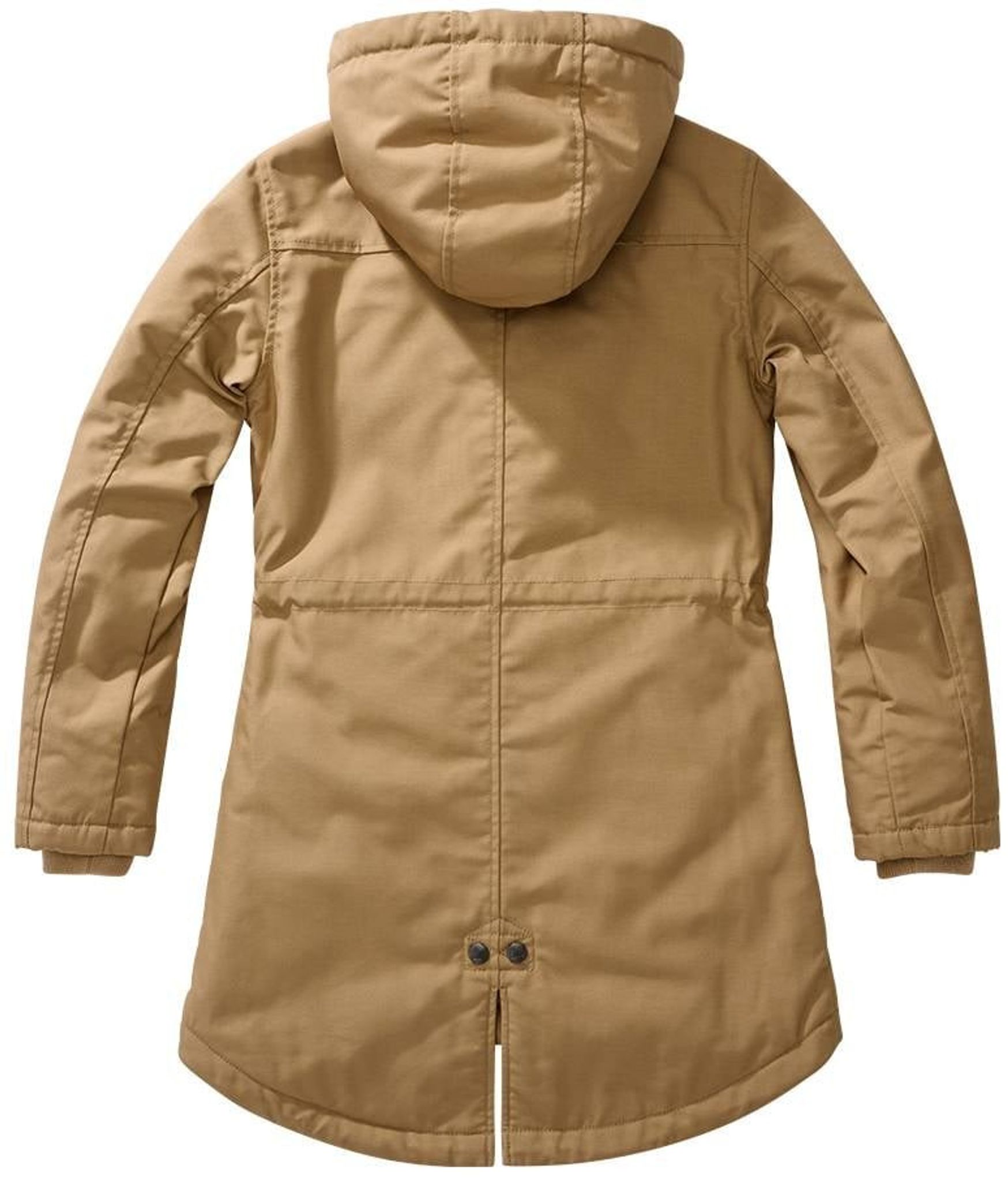Jackan har dragsko i midja, nederkant och huva.