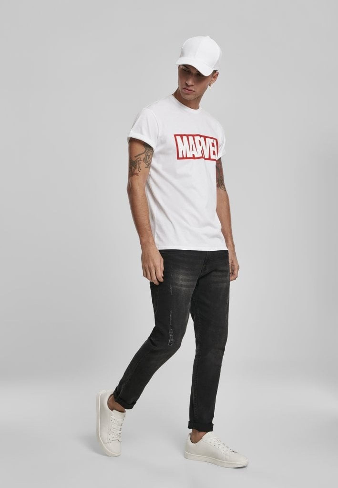 Är du ett stort fan av Marvel Universe och dess superhjältar? Då måste du ju ha en skön T-shirt med Marvels logotyp på bröstet.