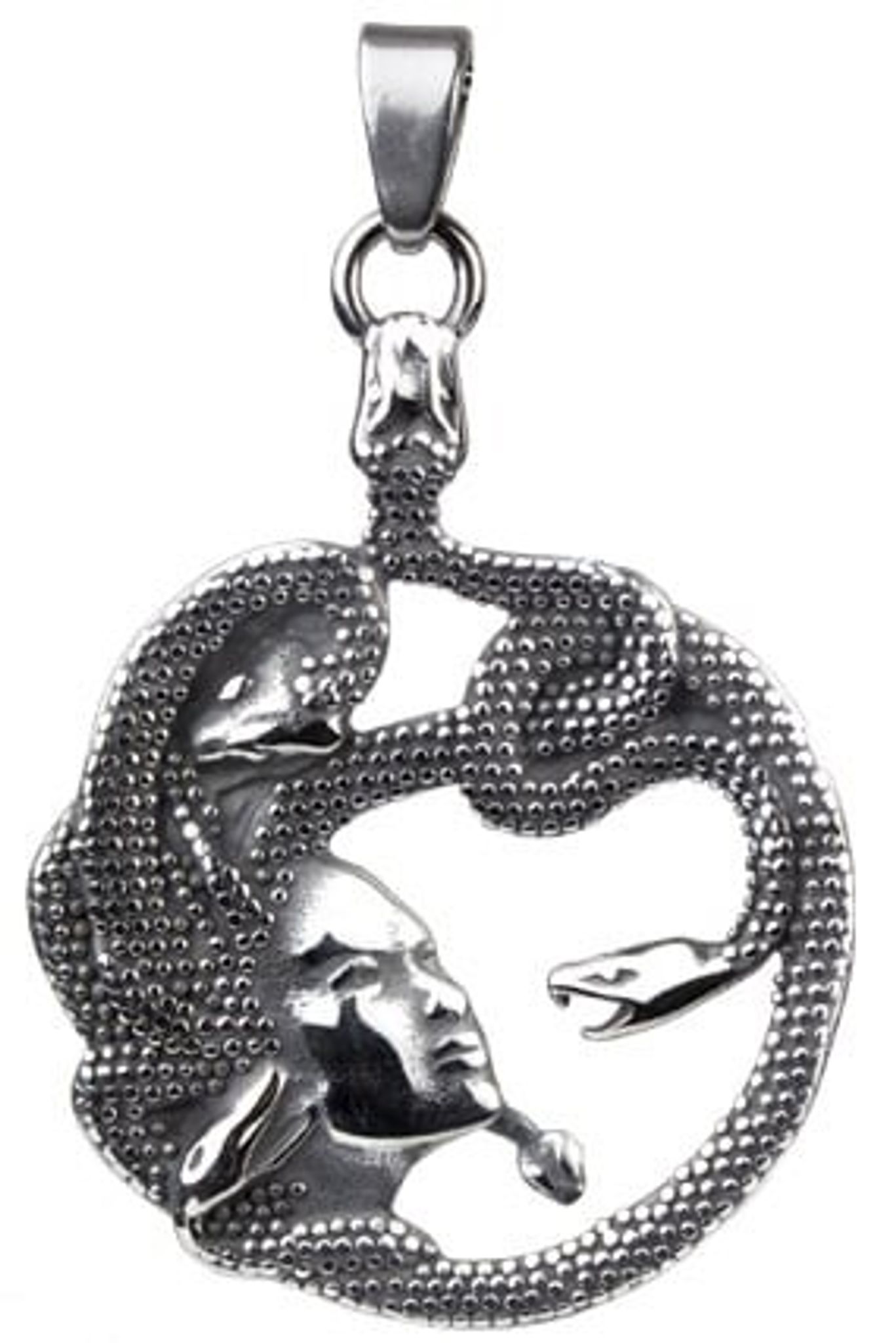 Denna pendant är en unik och stilren smyckesdetalj från kollektionen etNox urban style. Smycket föreställer ett medusahuvud, prytt med slingrande ormar, vilket ger en dramatisk och fascinerande karaktär.