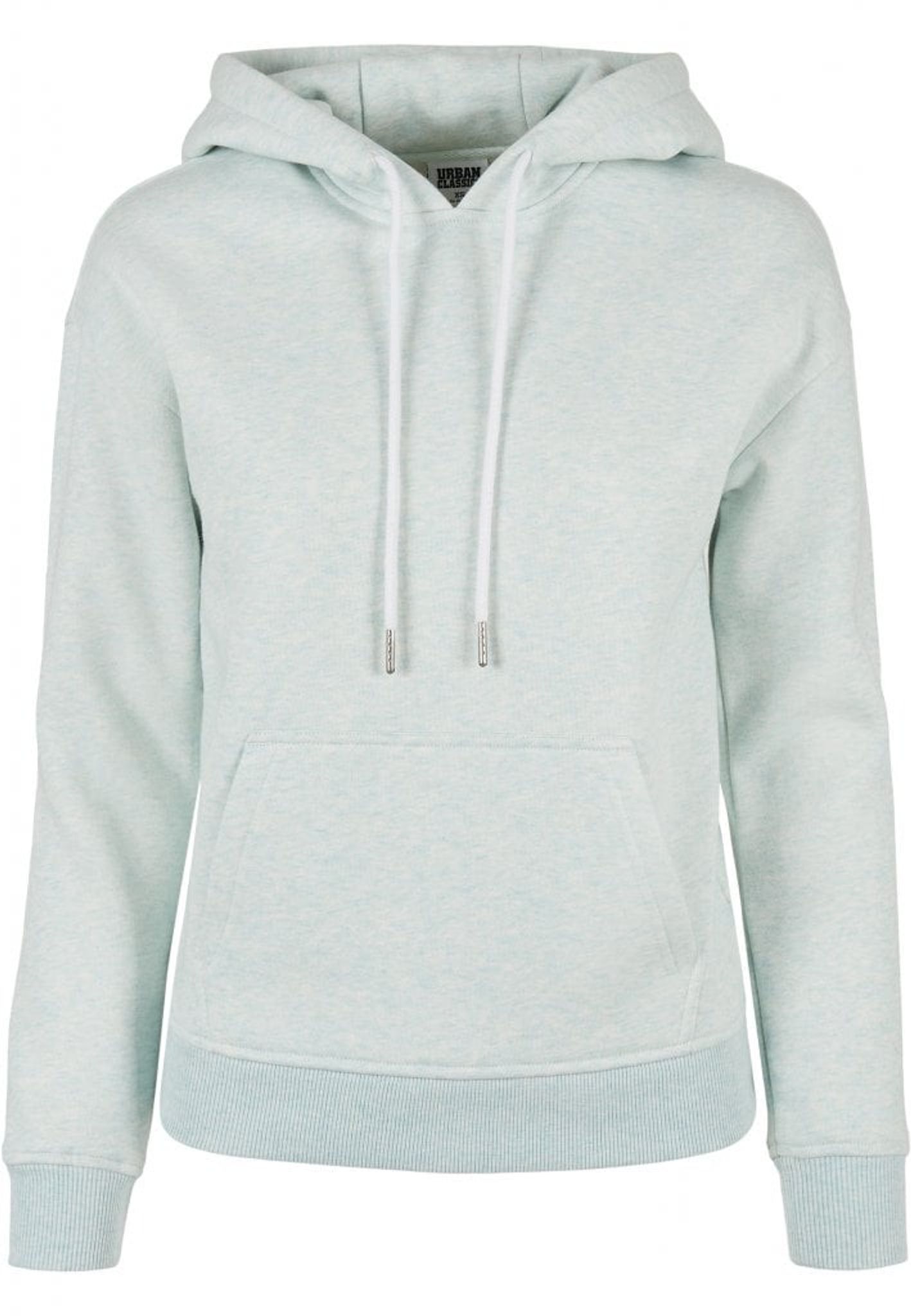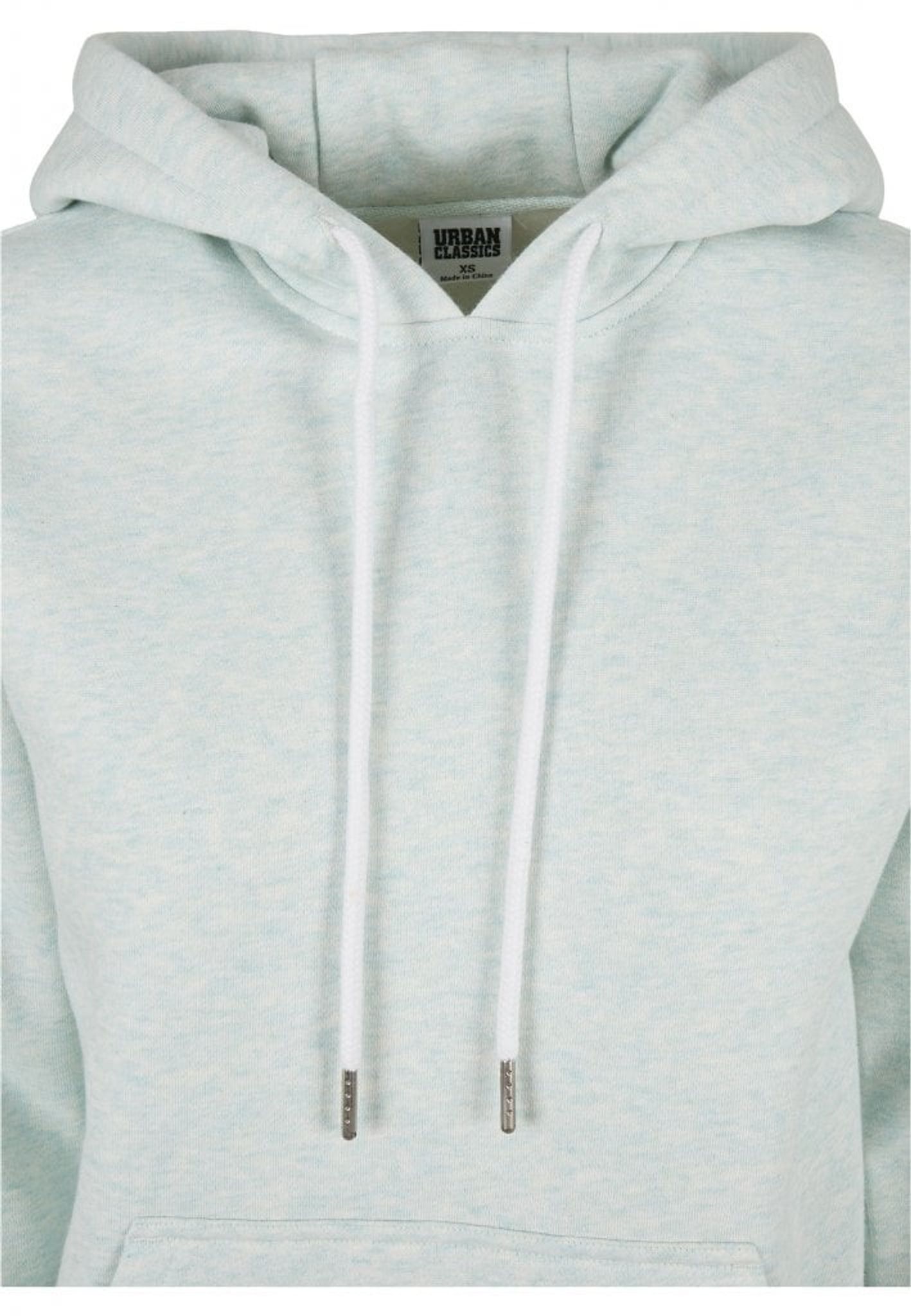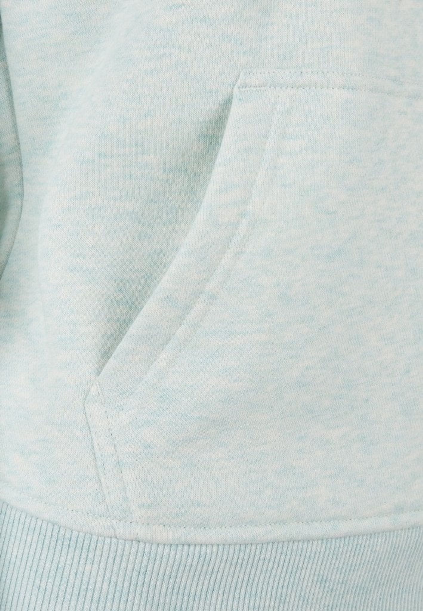 En ljus luvtröja med en känguruficka på magen som blir unik genom den melerande färgen.