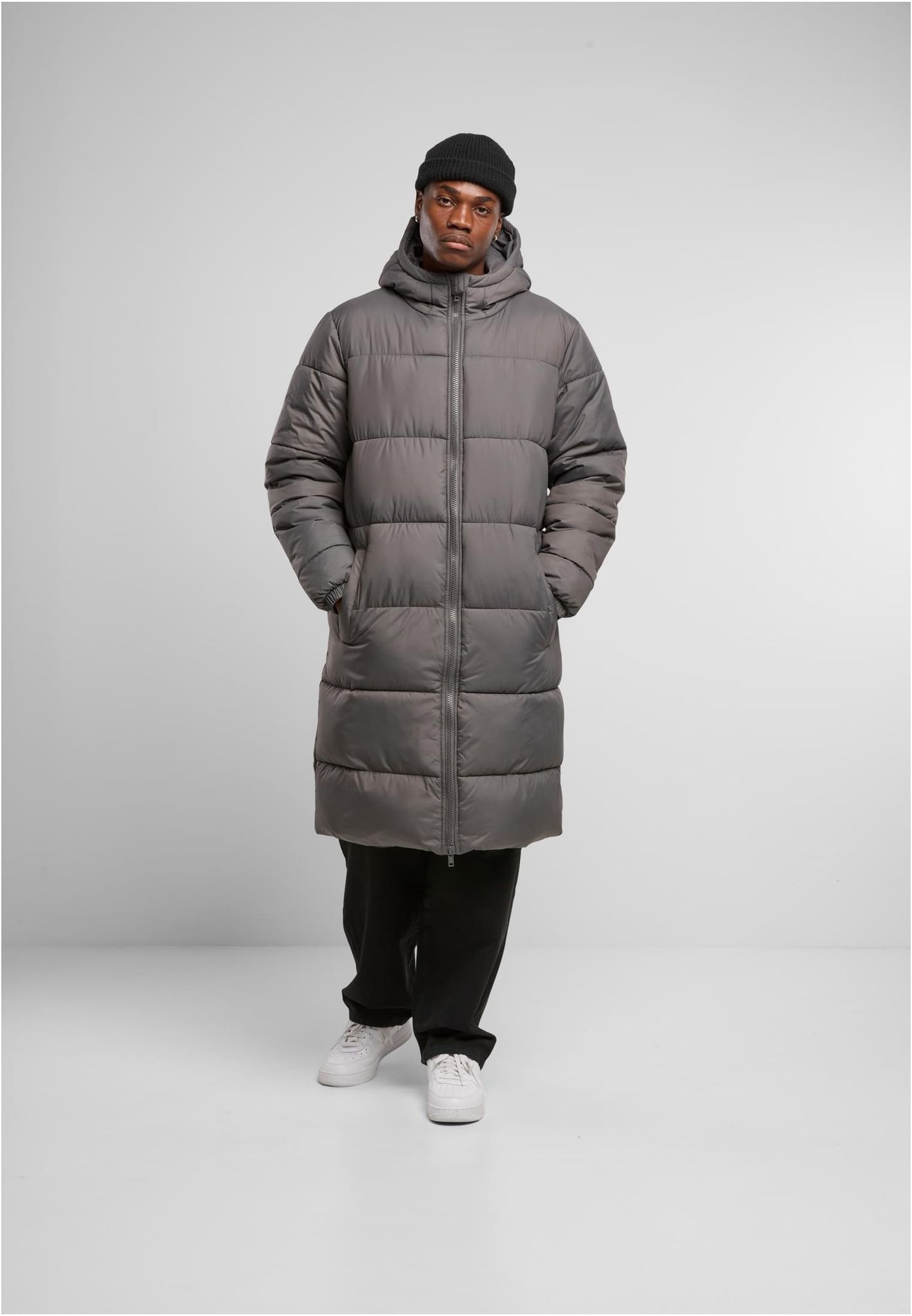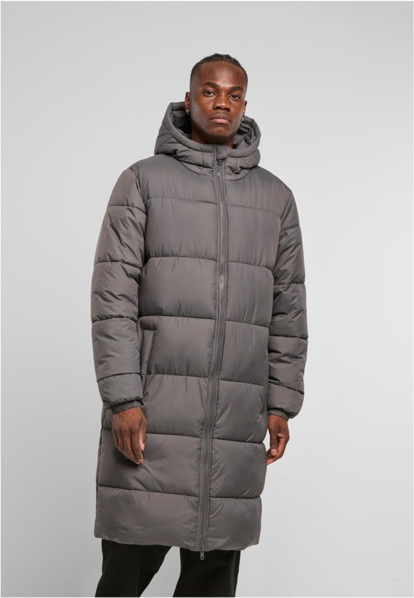 Stilren och varm lång pufferjacka i magnetgrå. Perfekt för kalla dagar med maximal komfort och skydd.