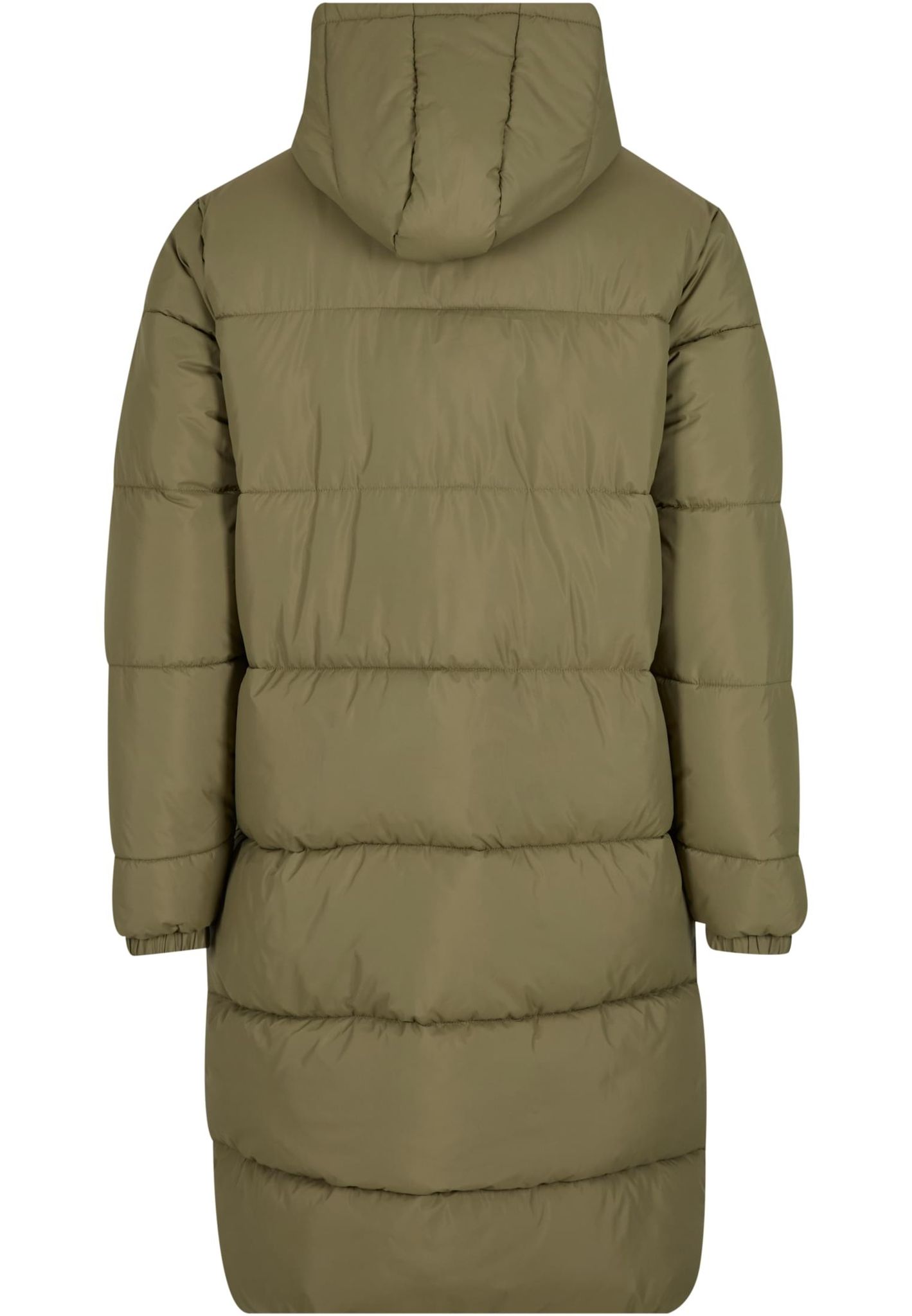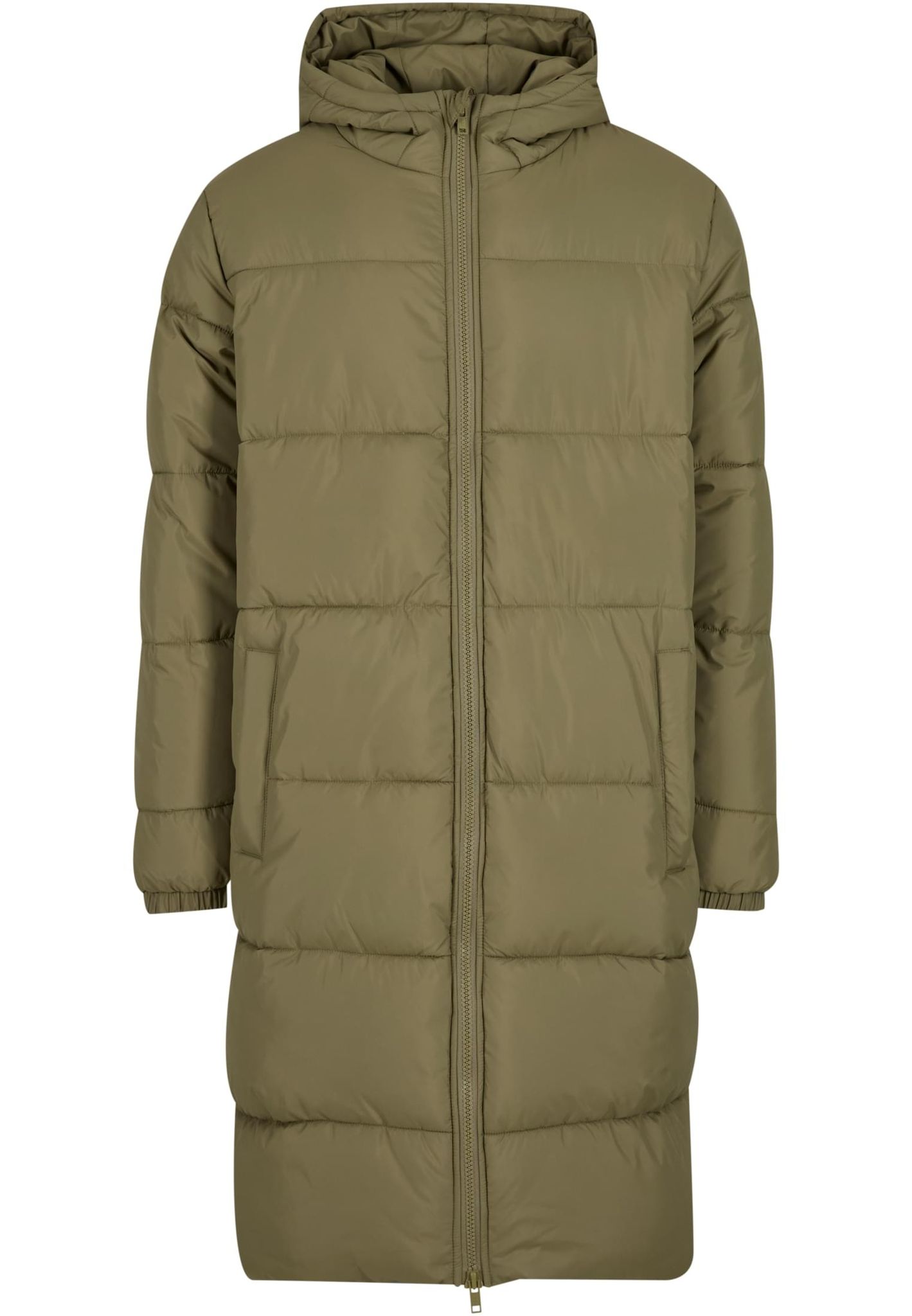 Stilren lång pufferjacka i färgen Tiniolive, perfekt för kalla dagar med sitt lätta och isolerande material.