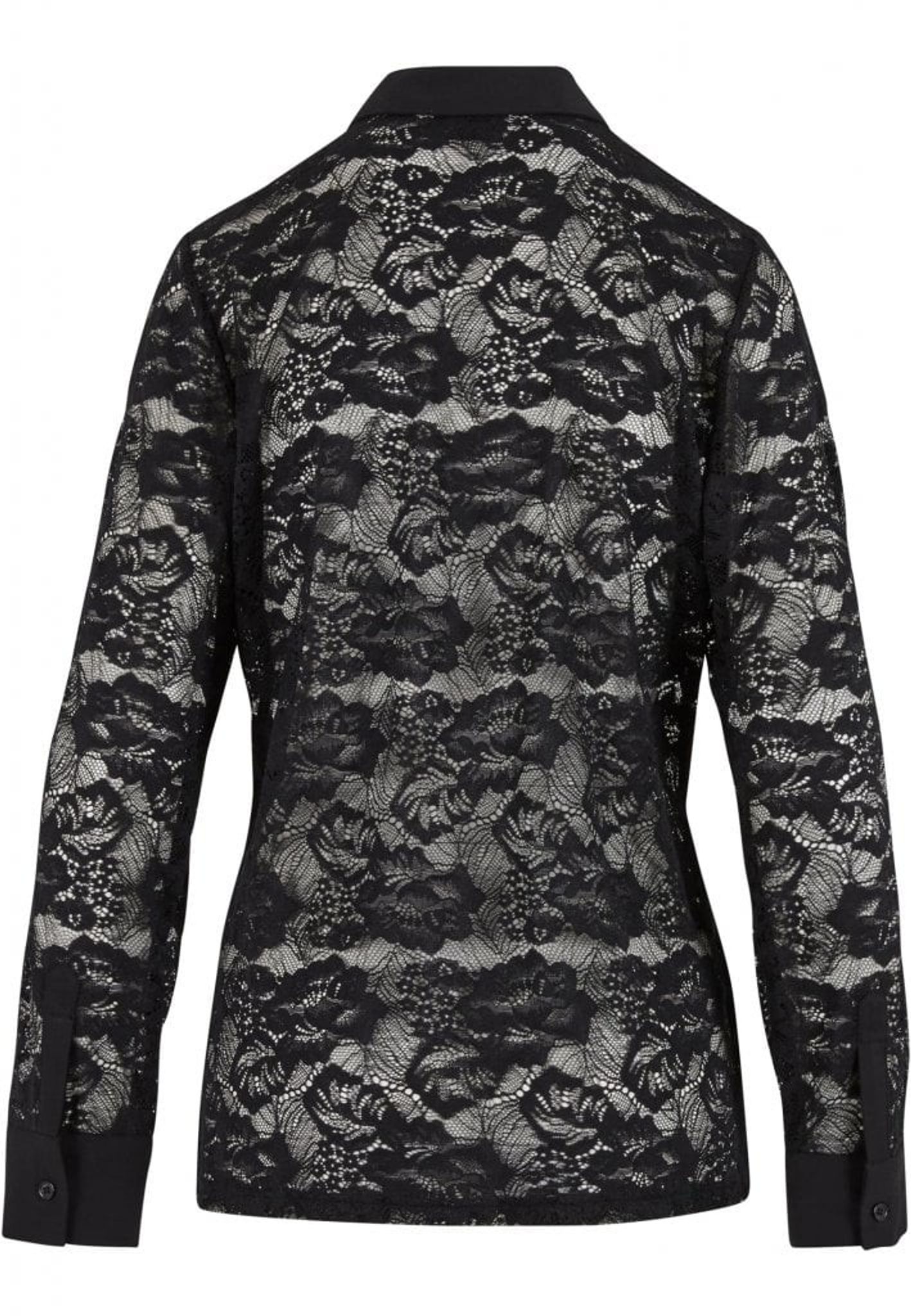 Ge din outfit en lyxig och sofistikerad touch med denna svarta meshblus. Med en genomarbetad spetsdesign och långärmad modell kombinerar denna blus elegans och komfort. Den genomskinliga meshstrukturen ger en chic och modern känsla som är perfekt för både vardagsbruk och festligare tillfällen. Den klassiska kragen och knäppningen framtill gör det enkelt att styla denna blus på olika sätt.