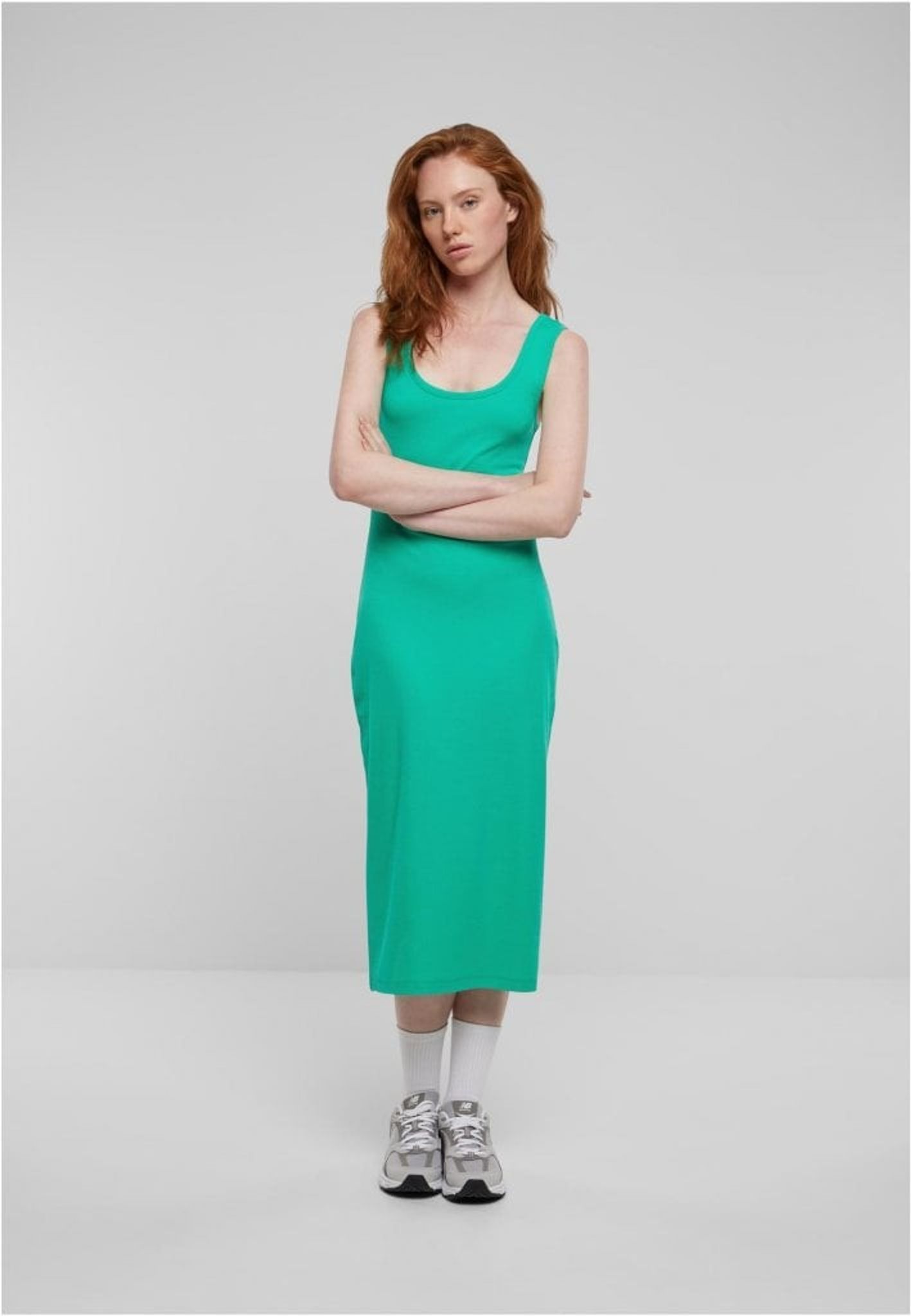 En elegant och enkel klänning från Urban Classics. Perfekt för en mängd olika tillfällen, är denna klänning ärmlös och har smala axelband. Den ribbade texturen ger en diskret sofistikerad känsla.