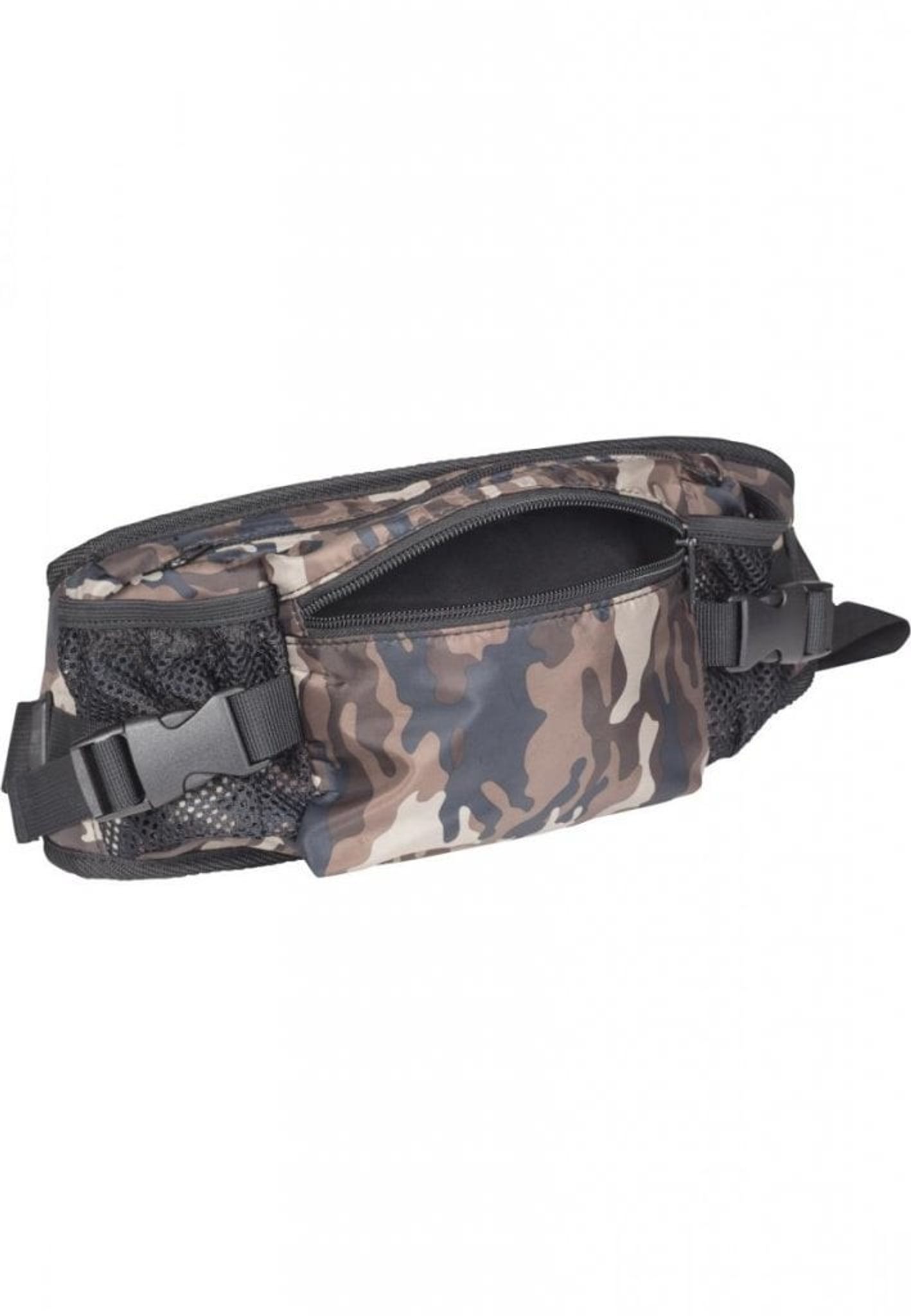 En sportig midjeväska med två fickor som stängs med dragkedja och två nätfickor som stängs med spännrem.