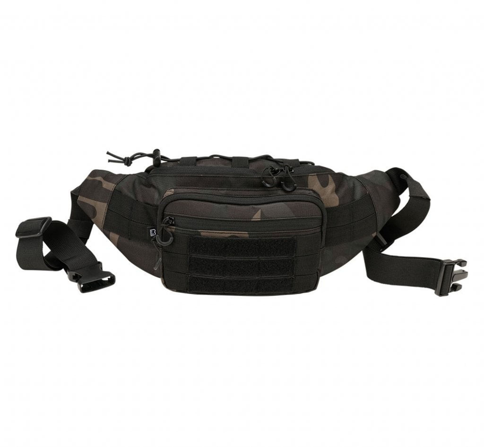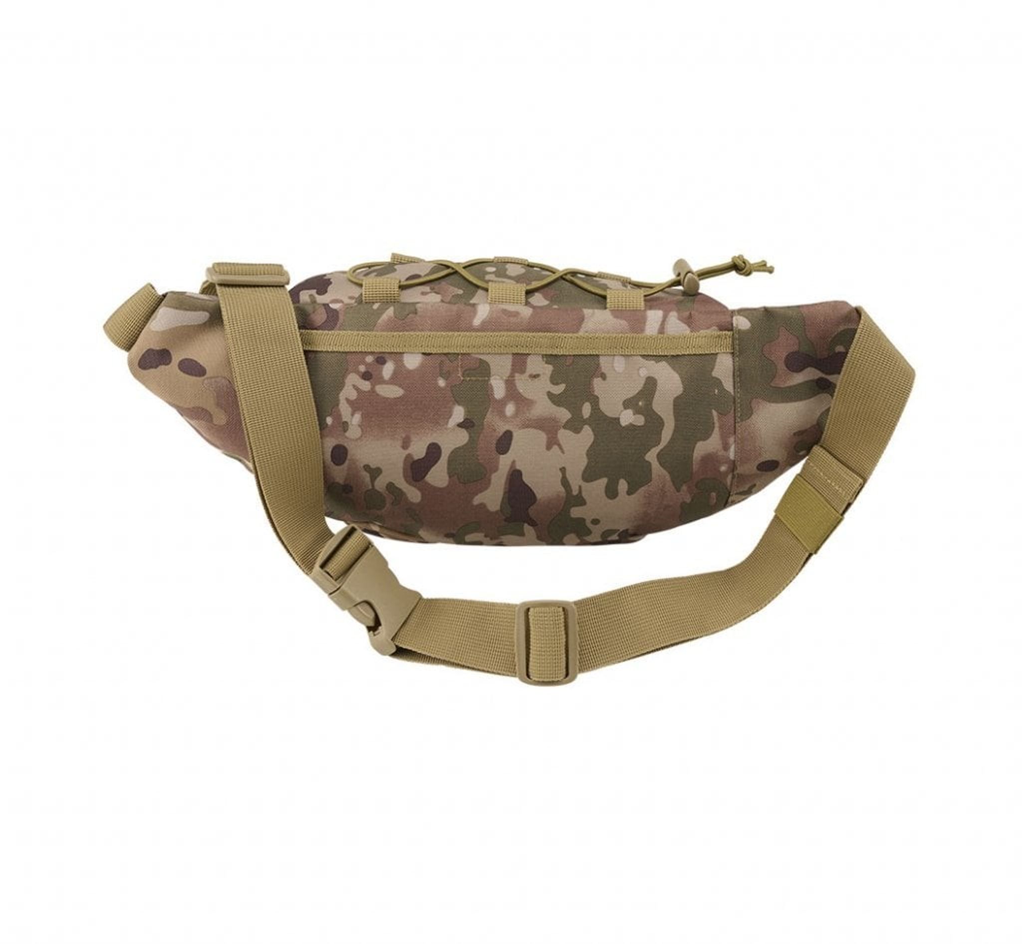 MOLLE-öglor på midjeväskan möjliggör anpassning av utrustningen genom att fästa ytterligare tillbehör eller moduler. Det finns också MOLLE-öglor med kardborreyta som du kan använda för att fästa patches eller ID-markörer. Dragkedjorna på midjeväskan är utrustade med C-ringar för enkel öppning och stängning.