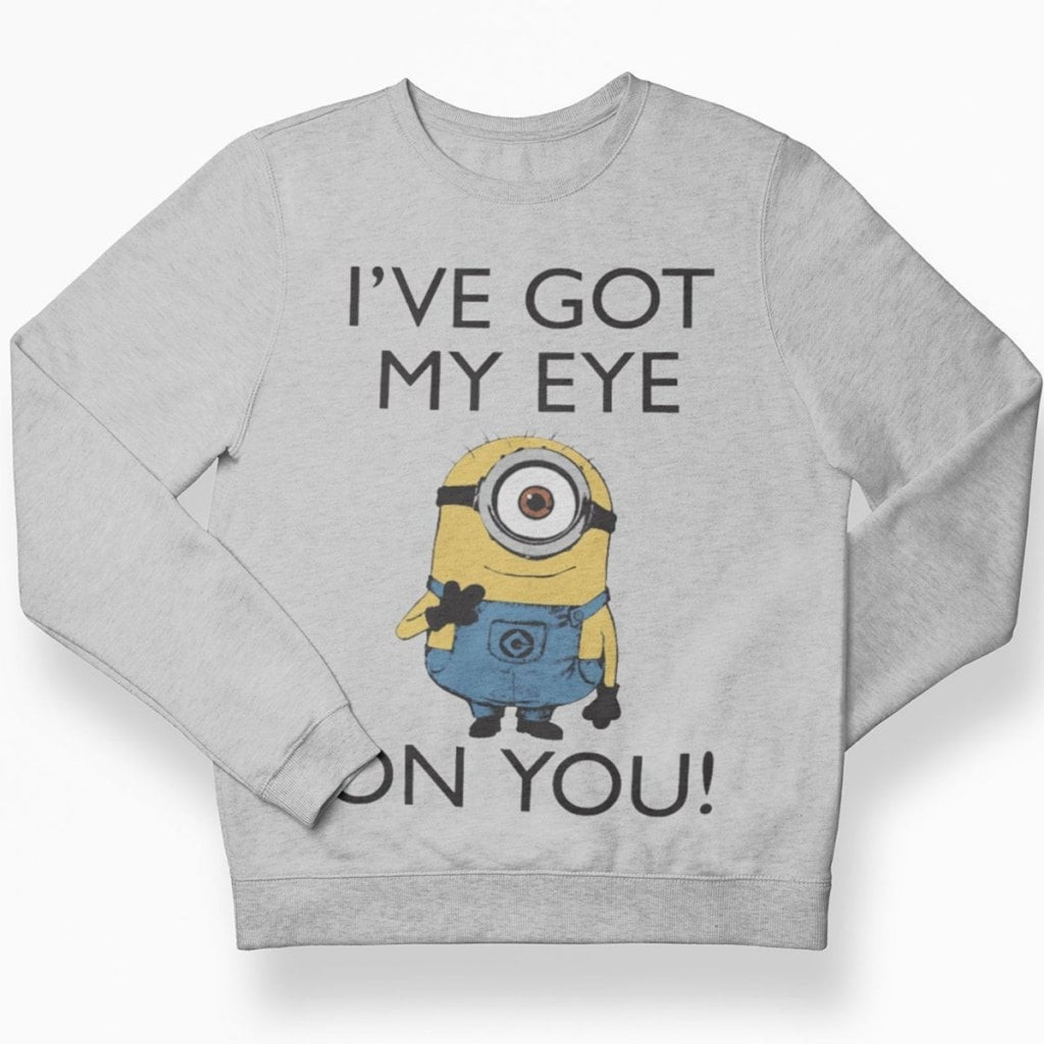 Minions - I've Got My Eye On You Barn Sweatshirt är den perfekta tröjan för alla små Minions-fans där ute. Med en enögd minion och den klassiska frasen "I've got my eye on you!" kan du vara säker på att ditt barn kommer att utstråla stilkänsla och humor.